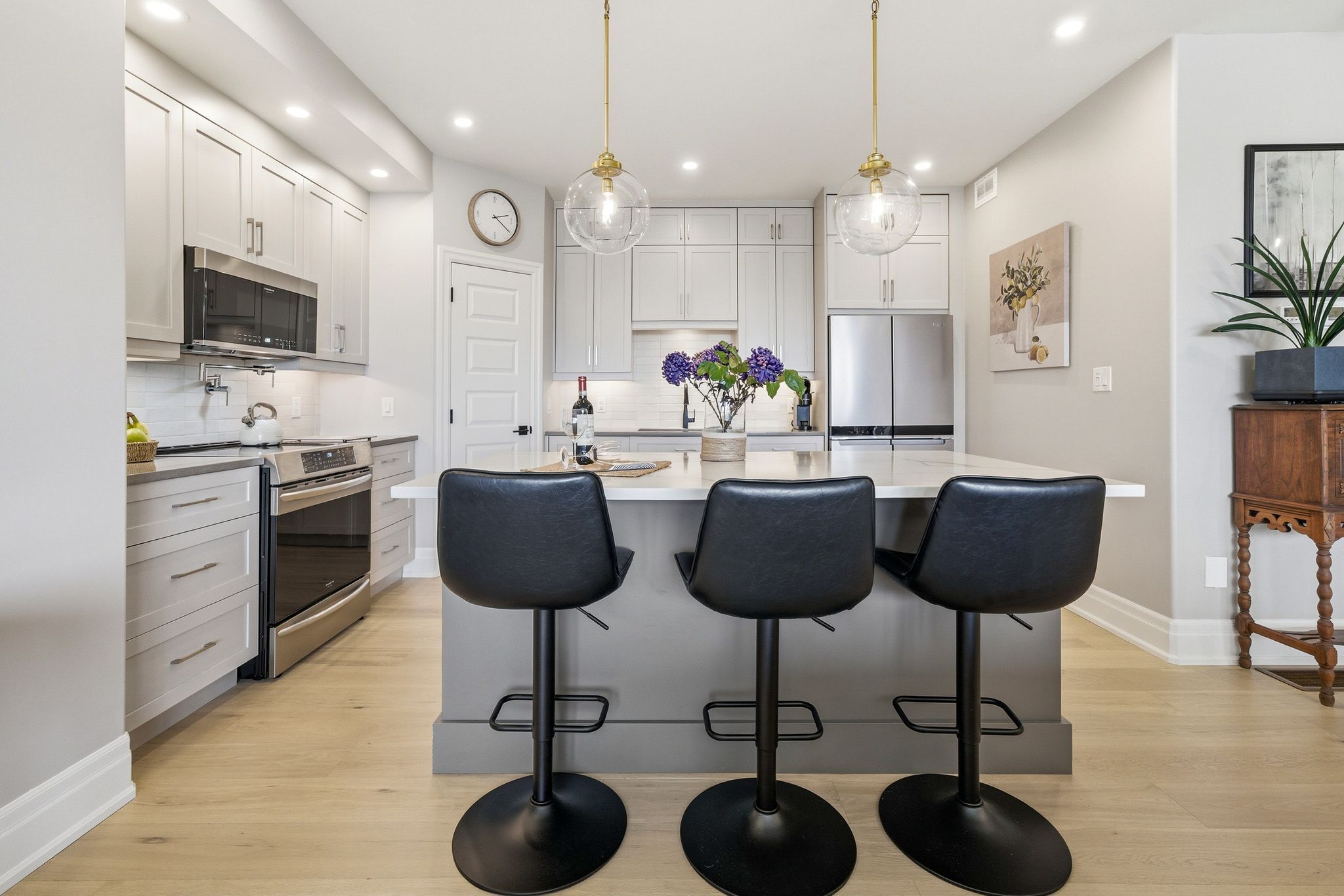 • Functional kitchen with an expansive island and walk-in pantry for convenience.