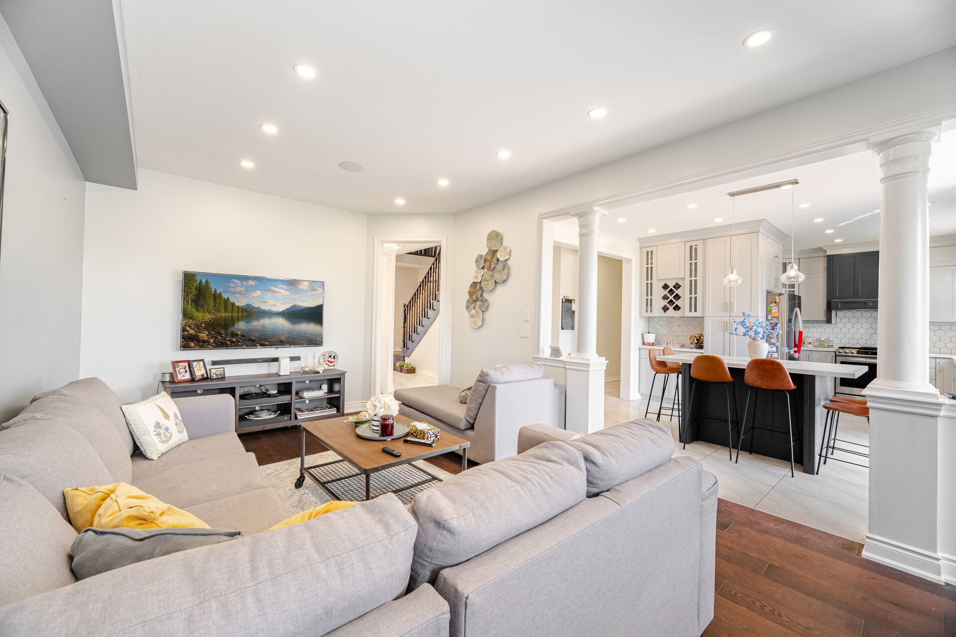 • Bright open-concept main level with quartz countertops and stainless steel appliances.