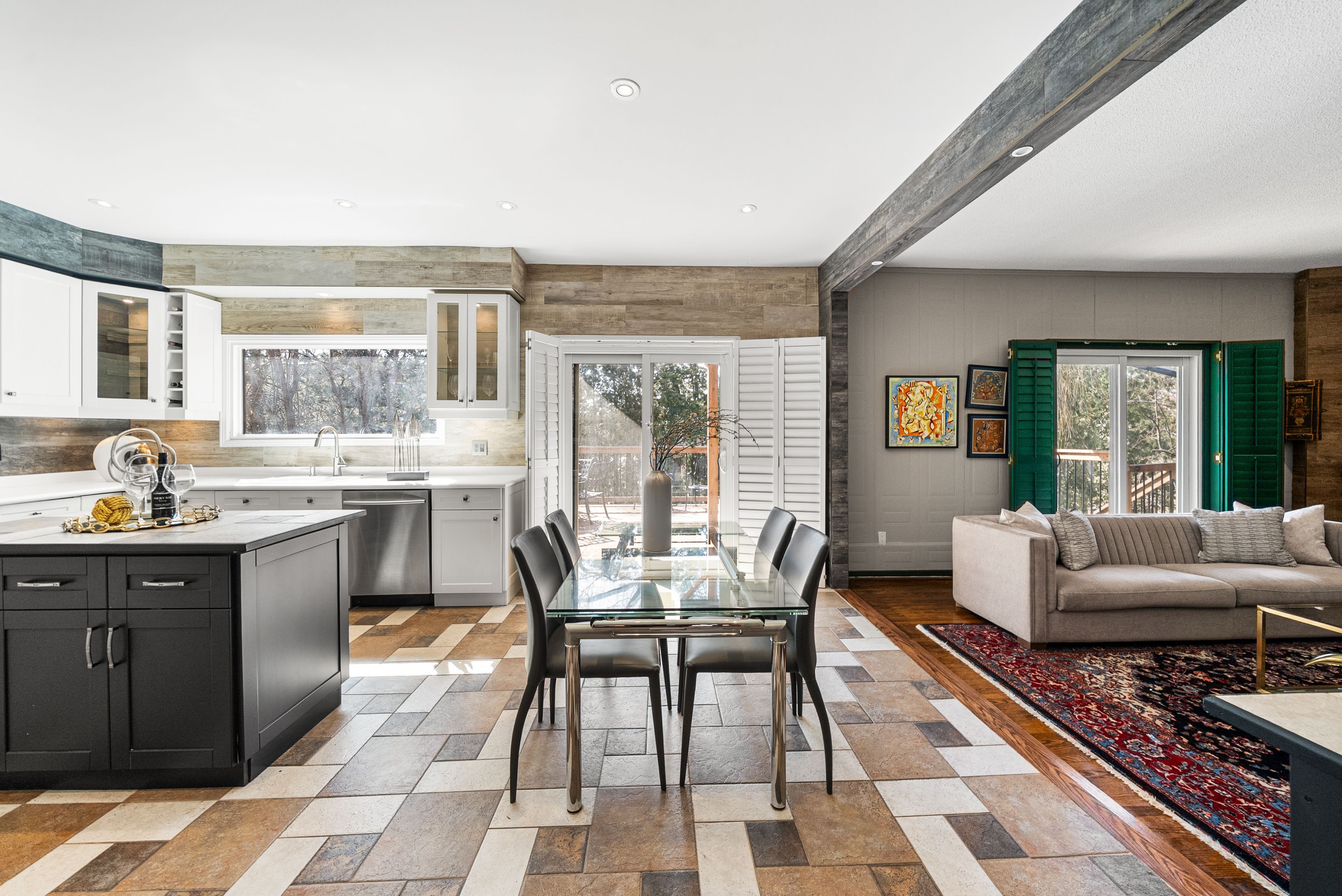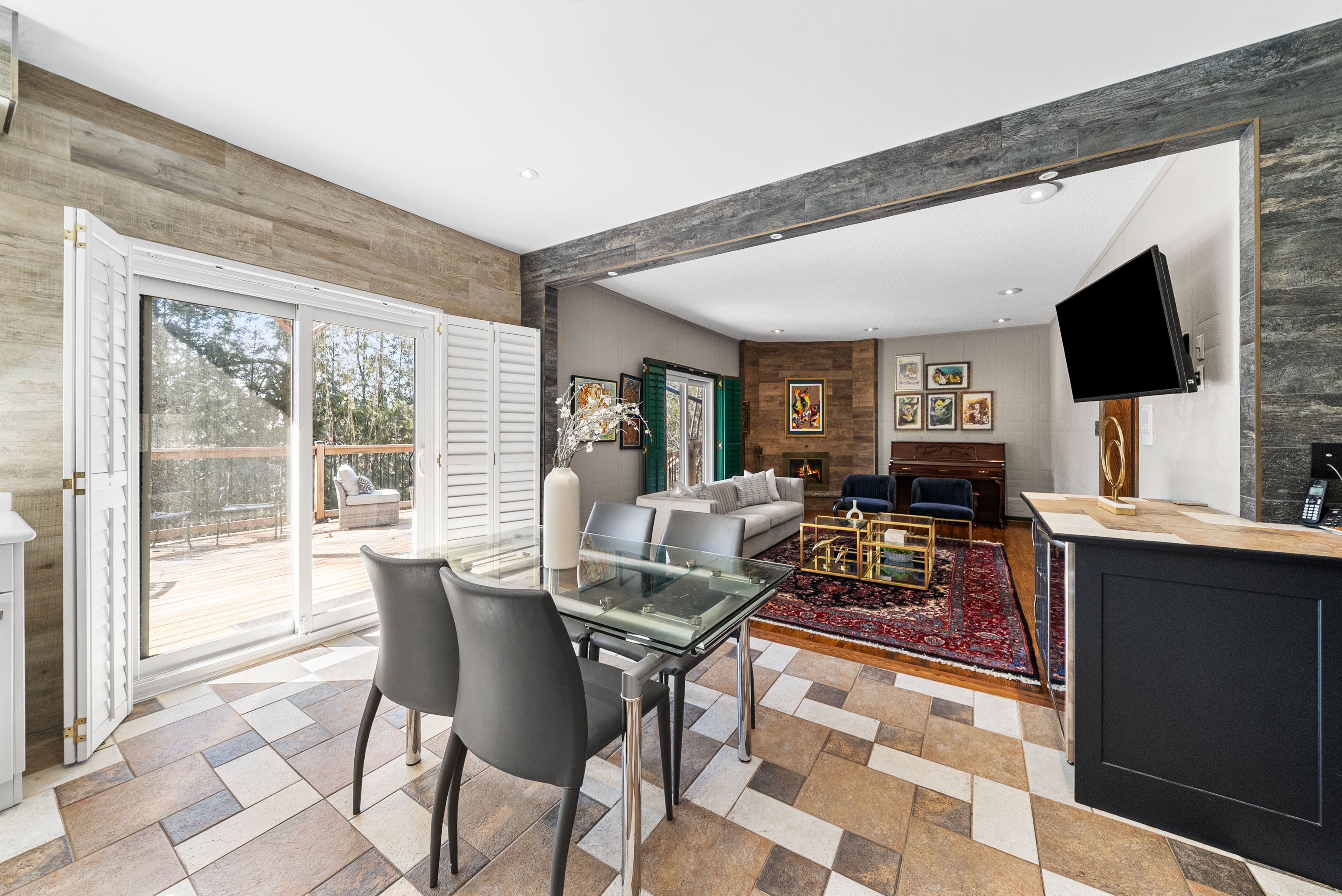 • Renovated kitchen with stainless steel appliances and a large outdoor deck.