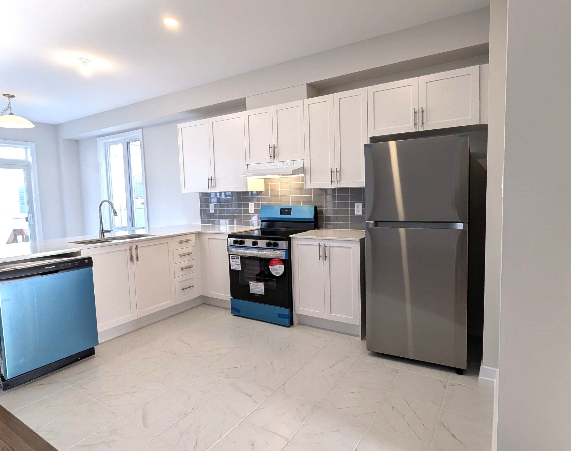 • Bright and spacious open-concept living, dining, and kitchen areas.