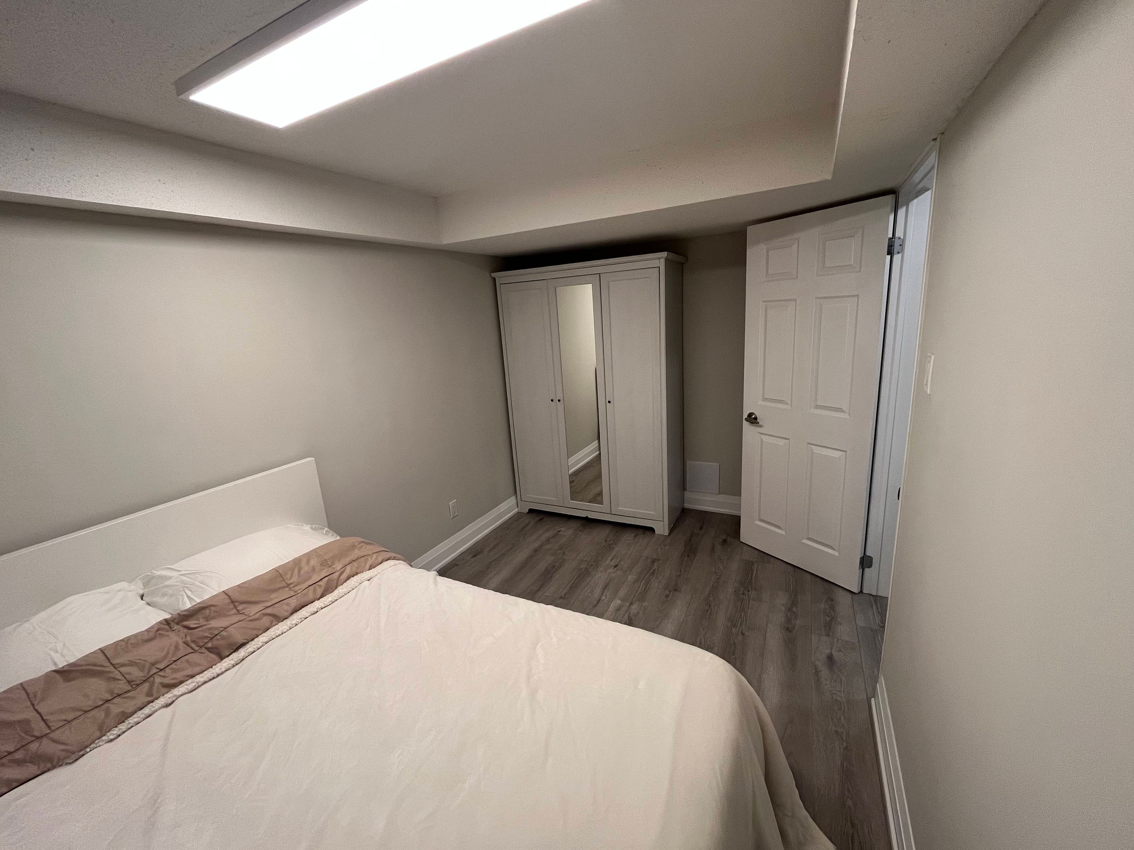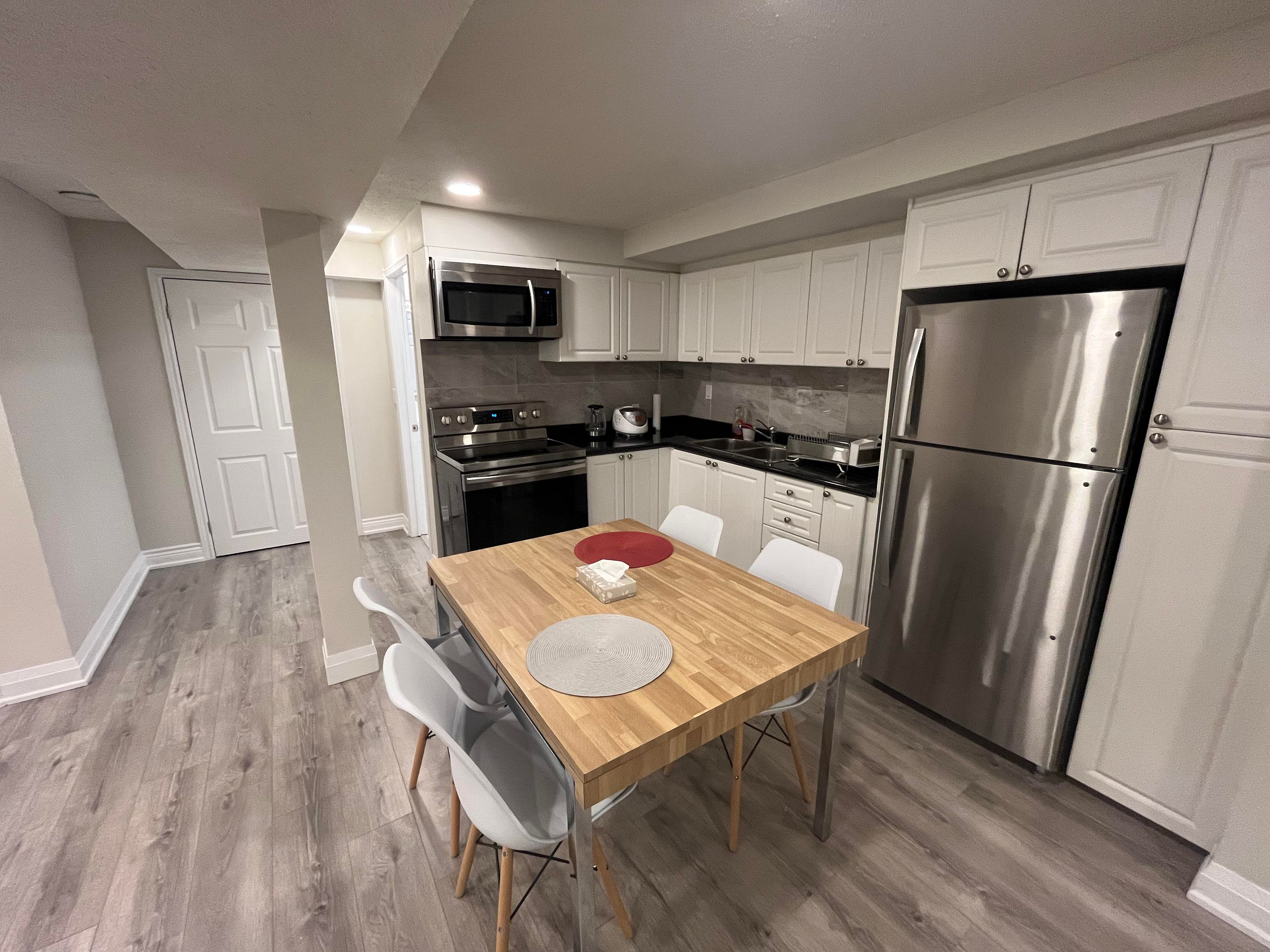 Bright and very clean walk out apartment in prestigious flamingo area. New floor, new paint, new bathroom, new toilet, new fridge, new stove, new cabinets and counter top. Separate laundry. Full of lights and ground level. Walking distance to highway 7 bus stop. Close to walmart, no frills, winners, promenade mall. Family-friendly neighborhood. Tenant to pay 1/3 utilities, parking included.