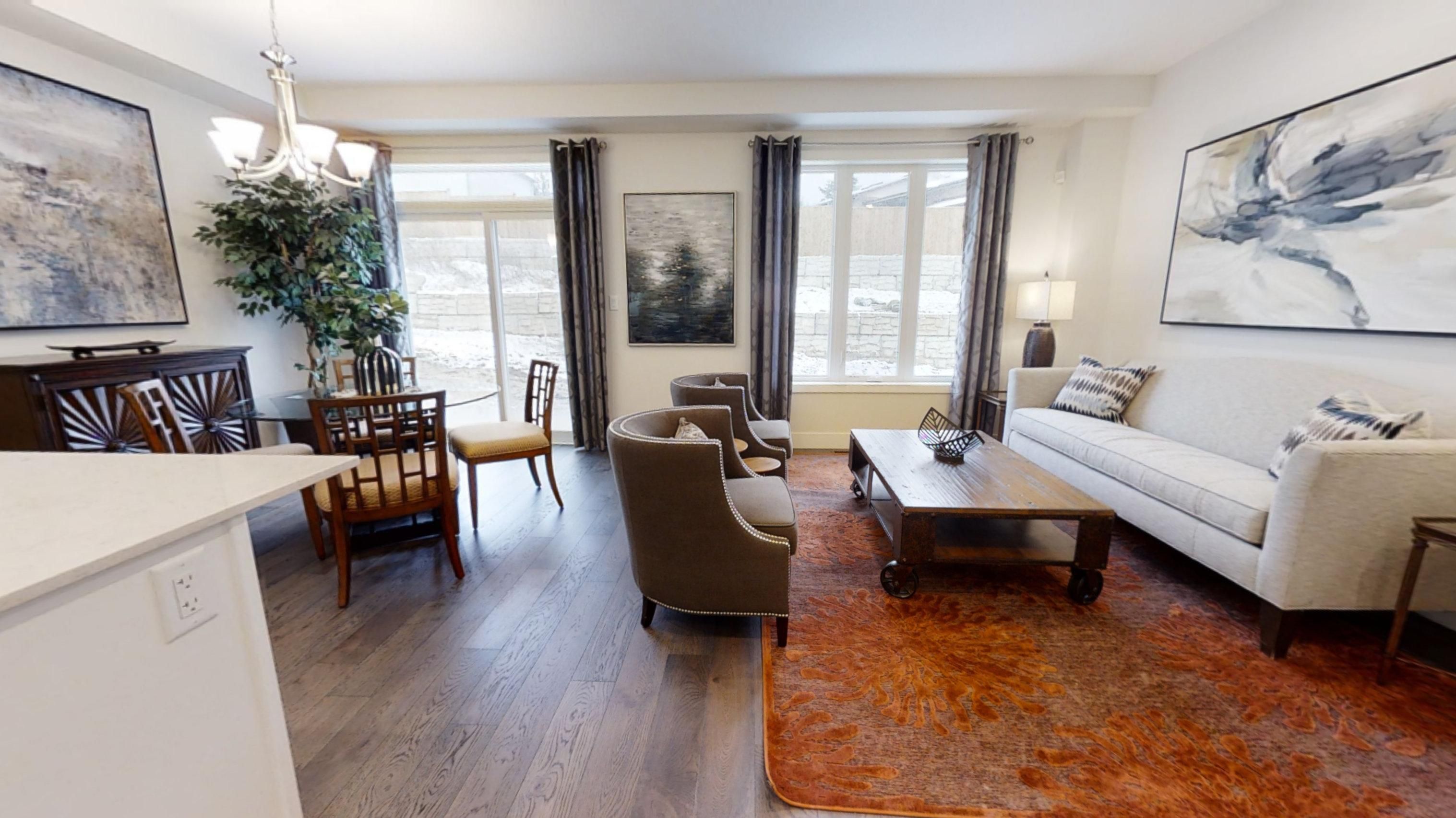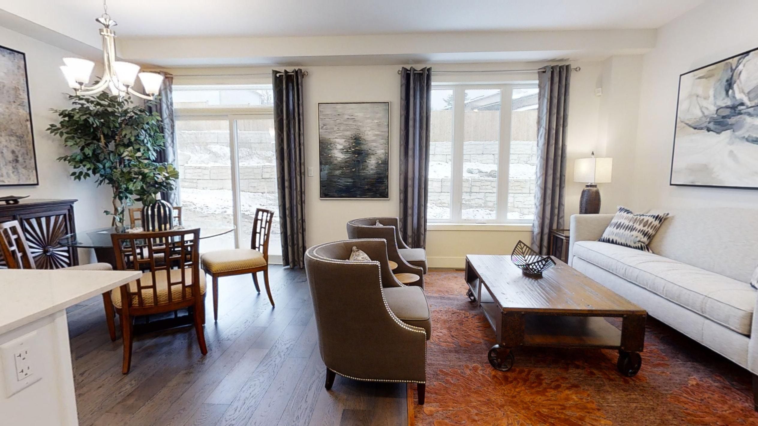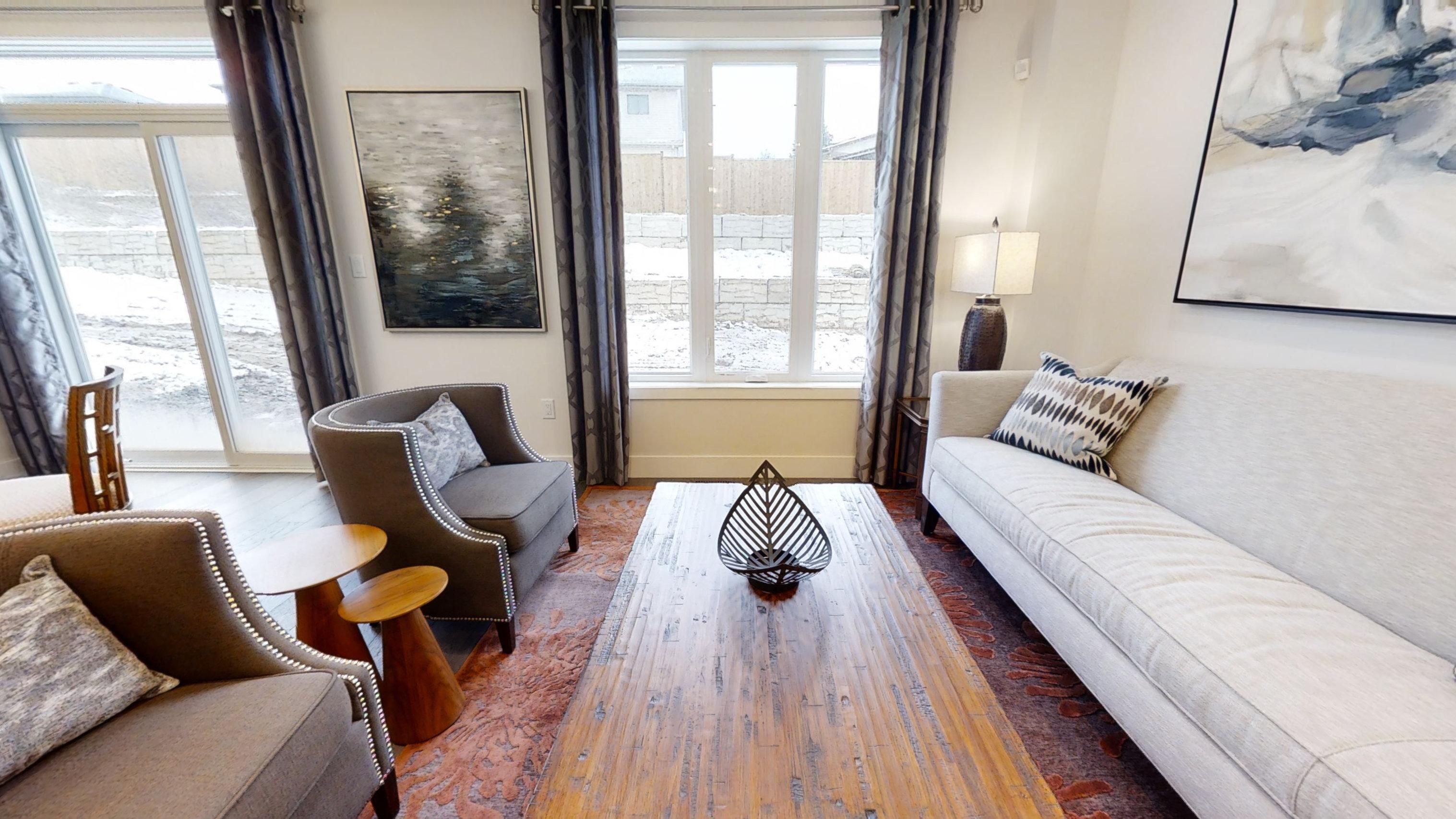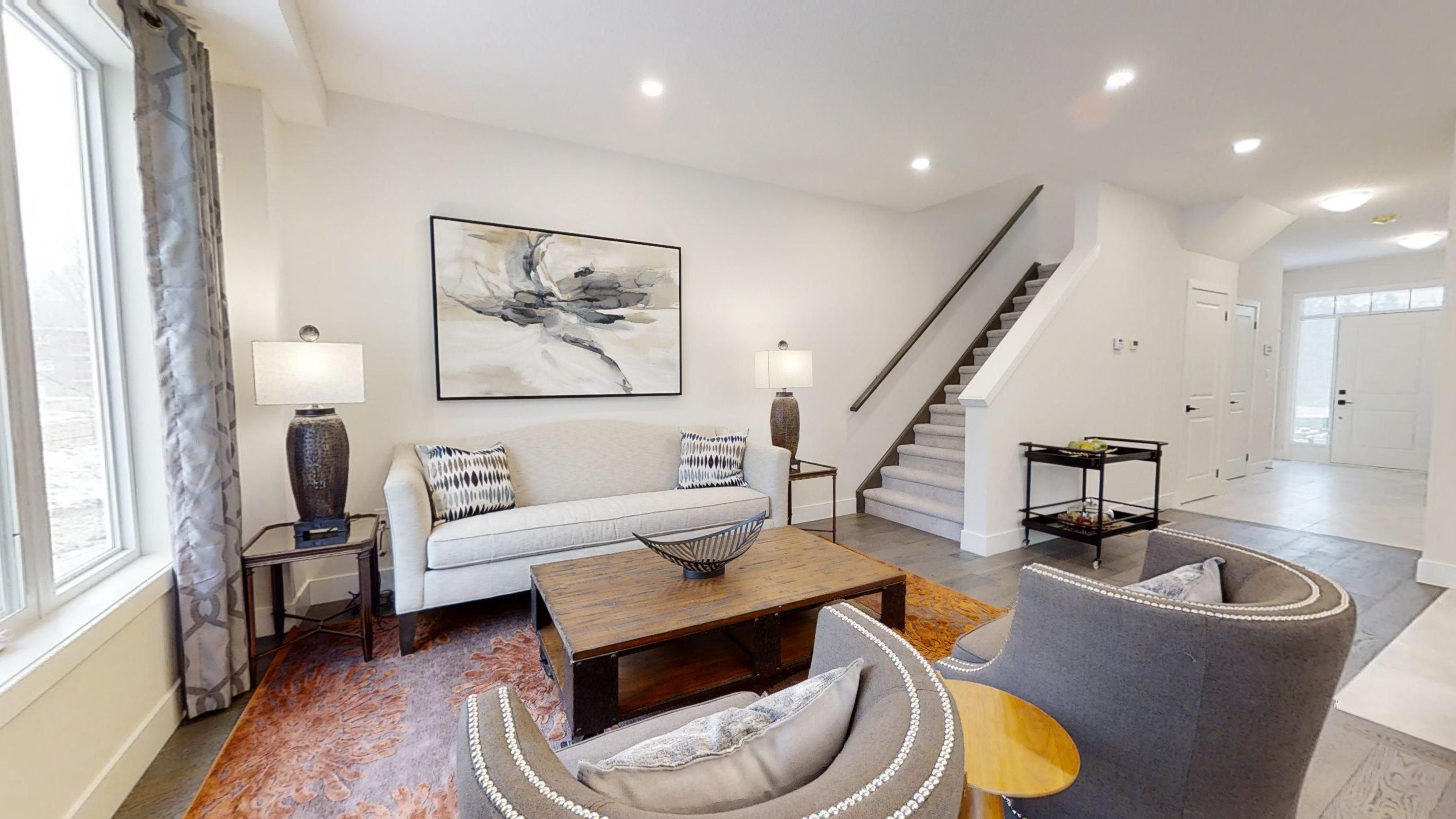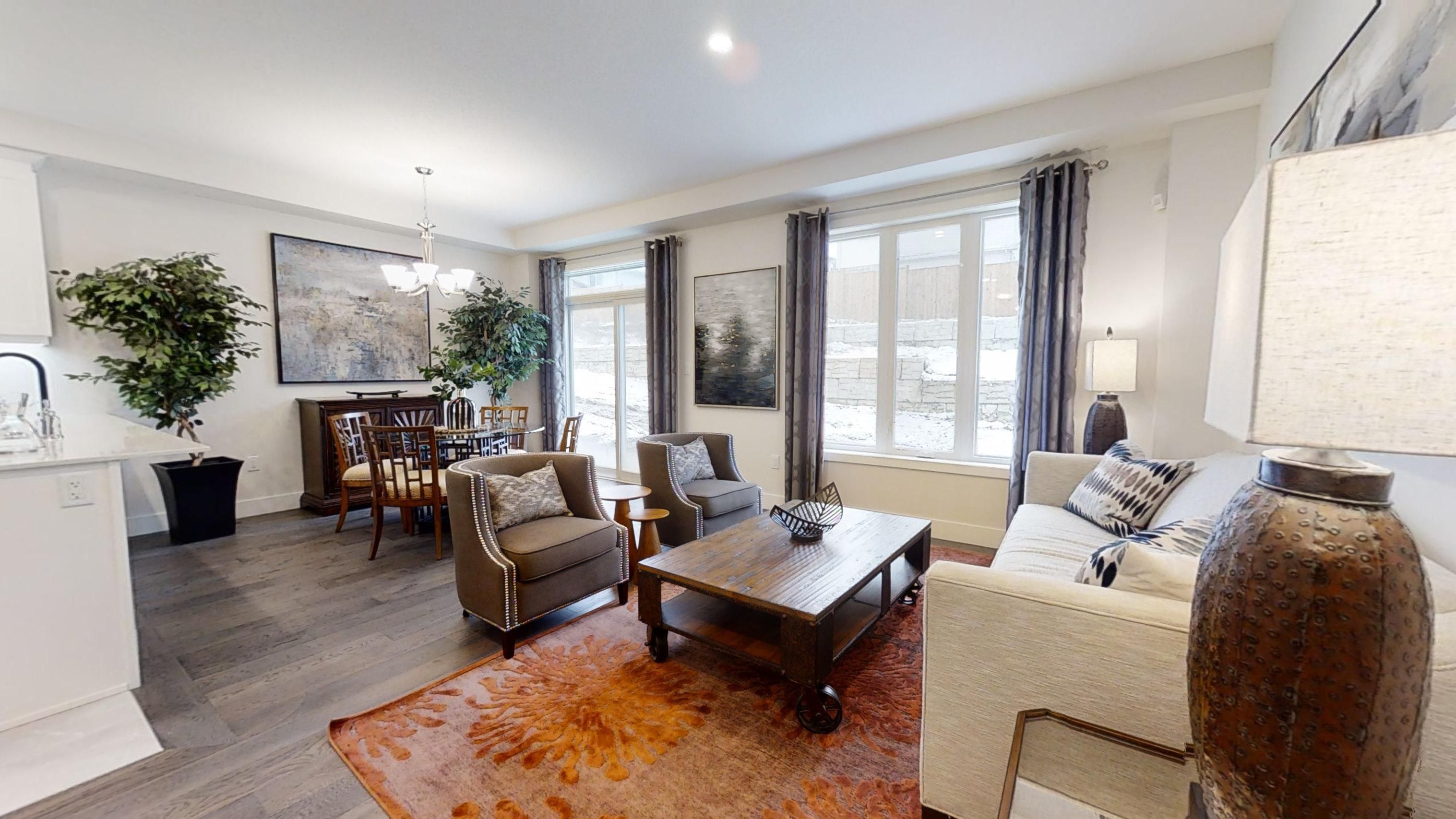Ready to move in - new construction ! The chatsworth functional design offering 1641 sq ft of living space. This impressive home features 3 bedrooms, 2. 5 baths, and the potential for a future basement development (walk out) backing onto green space with a 1. 5 car garage. Ironstone's ironclad pricing guarantee ensures you get: 9 main floor ceilings ceramic tile in foyer, kitchen, finished laundry & baths engineered hardwood floors throughout the great room carpet in main floor bedroom, stairs to upper floors, upper areas, upper hallway(s), & bedrooms hard surface kitchen countertops laminate countertops in powder & bathrooms with tiled shower or 3/4 acrylic shower in each ensuite stone paved driveway visit our sales office/model homes at 999 deveron crescent for viewings saturdays and sundays from 12 pm to 4 pm. Pictures shown are of the model home. This house is ready to move in!