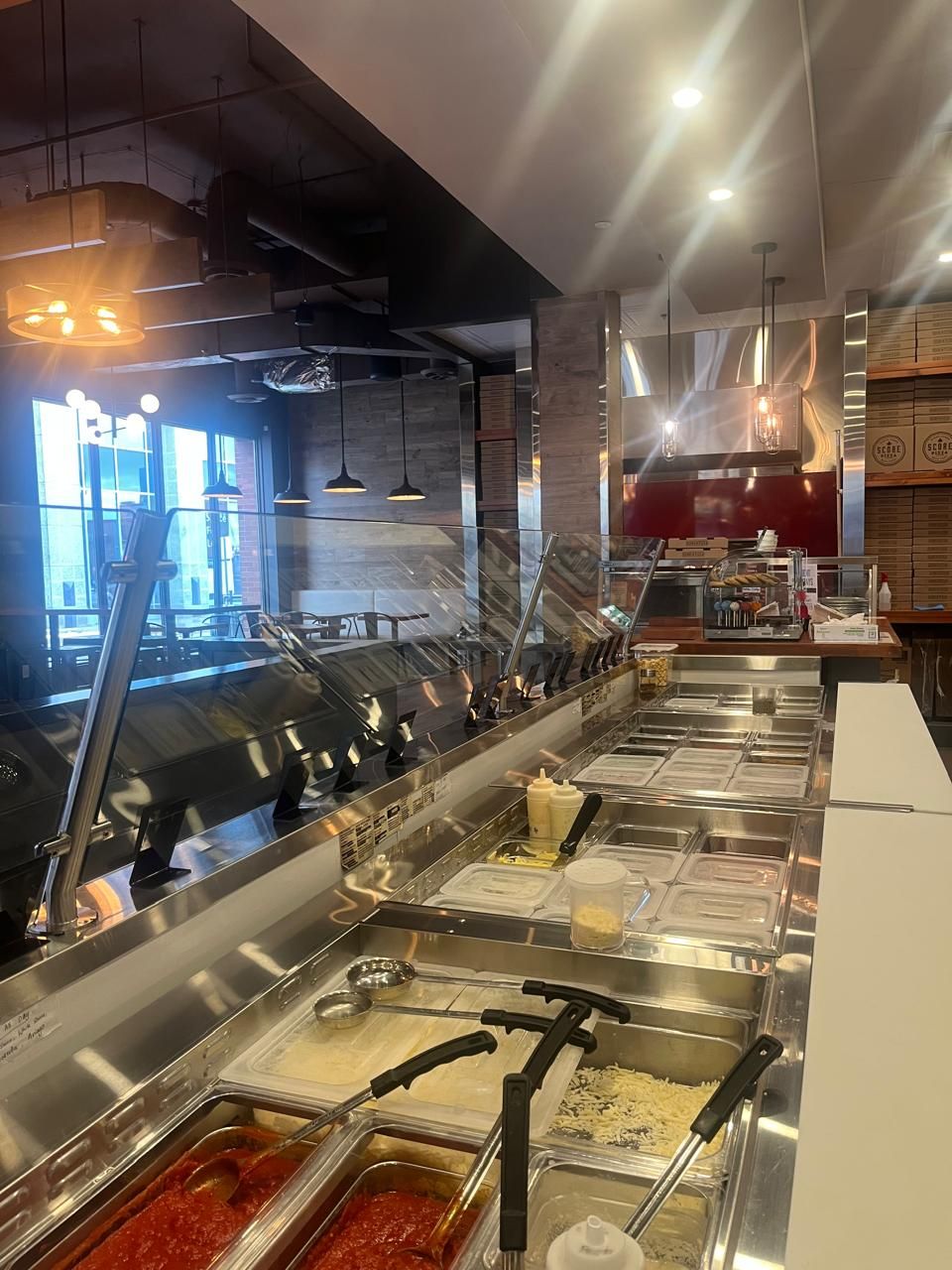 • Fast-casual pizza experience with unlimited toppings ready in under ten minutes.