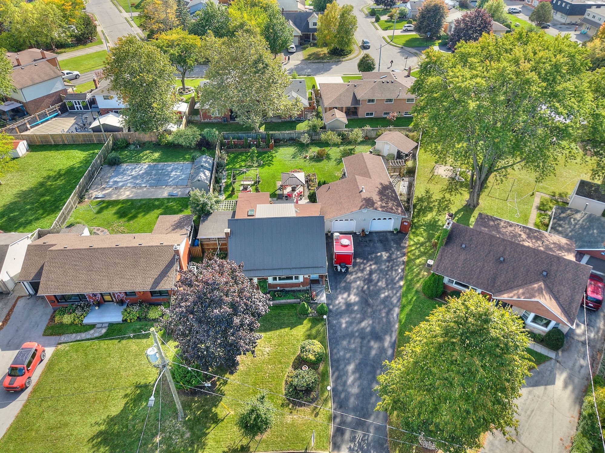 Welcome to this beautifully maintained 3+1 bedroom, 3-bath character home, offering charm, craftsmanship, and modern convenience throughout. Set on a massive private lot in a prime location, this property is perfect for families who value space, comfort, and functionality. Inside, you'll find a warm and inviting atmosphere filled with character details, including a family room with a gas fireplace, brazilian cheer flooring, knotty pine ceilings, a skylight, and clear cedar walls. Each level features a full bathroom and a bedroom, offering flexibility and convenience for families or guests. The primary suite includes a walk-in closet for added comfort. The sunroom features two sets of sliding doors one leading to the outdoor covered porch and the other to the backyard creating a seamless flow between indoor and outdoor living. The home boasts a steel roof, centennial windows with a lifetime warranty, leaf guard eavestroughs, and upgraded insulation in both the attic and upper level for efficiency and peace of mind. Plumbing upgrades include wider copper pipes, an xl capacity hot water tank, and a water pressure pump. The dream 3-car garage is a true standout fully equipped with front and rear overhead doors, garage door openers, and one bay that's insulated, heated with its own gas furnace, and plumbed with a sink and urinal. Outdoors, enjoy a double asphalt driveway, hot and cold water taps, a trailer electrical hookup, a new covered gazebo, aggregate concrete patio, and beautifully landscaped perennial gardens and fruit trees. With thoughtful updates, quality materials, and exceptional attention to detail, this home is ready for your family to move in and enjoy! Conveniently located just 5 minutes from all amenities, including centennial high school, niagara college, seaway mall, grocery stores, and quick access to highway 406.