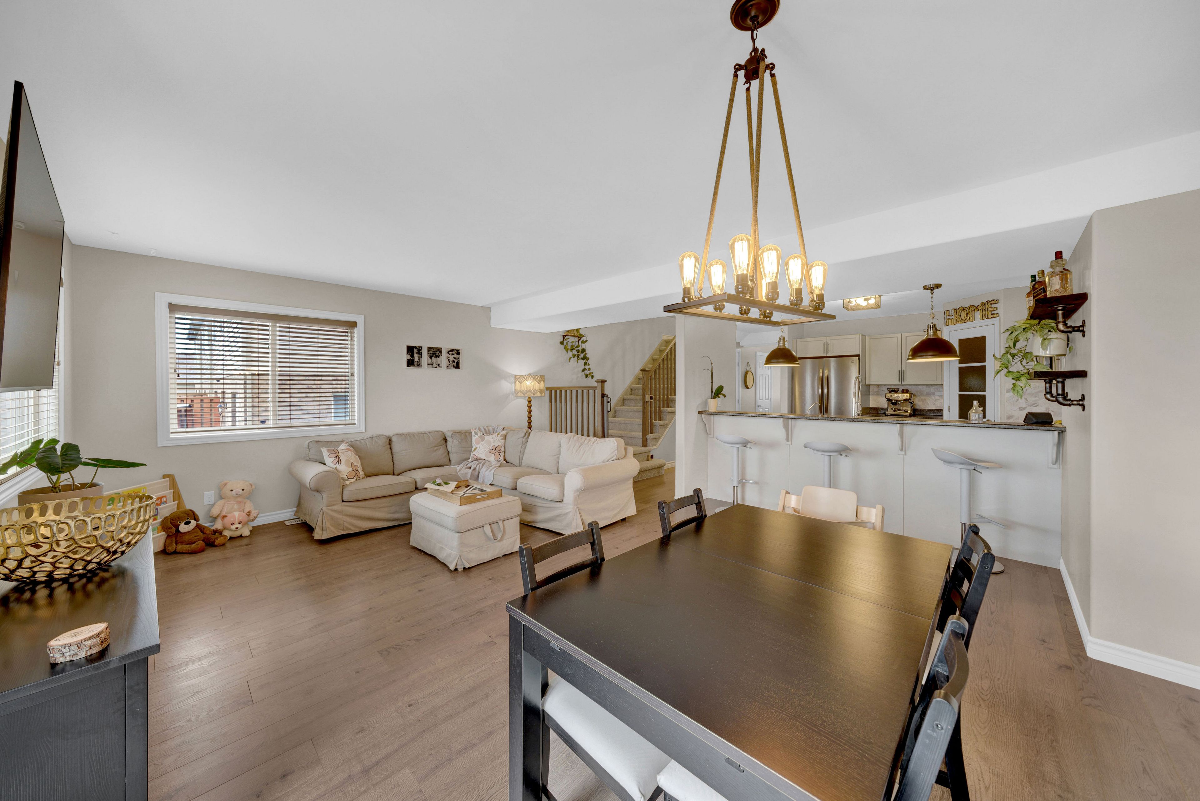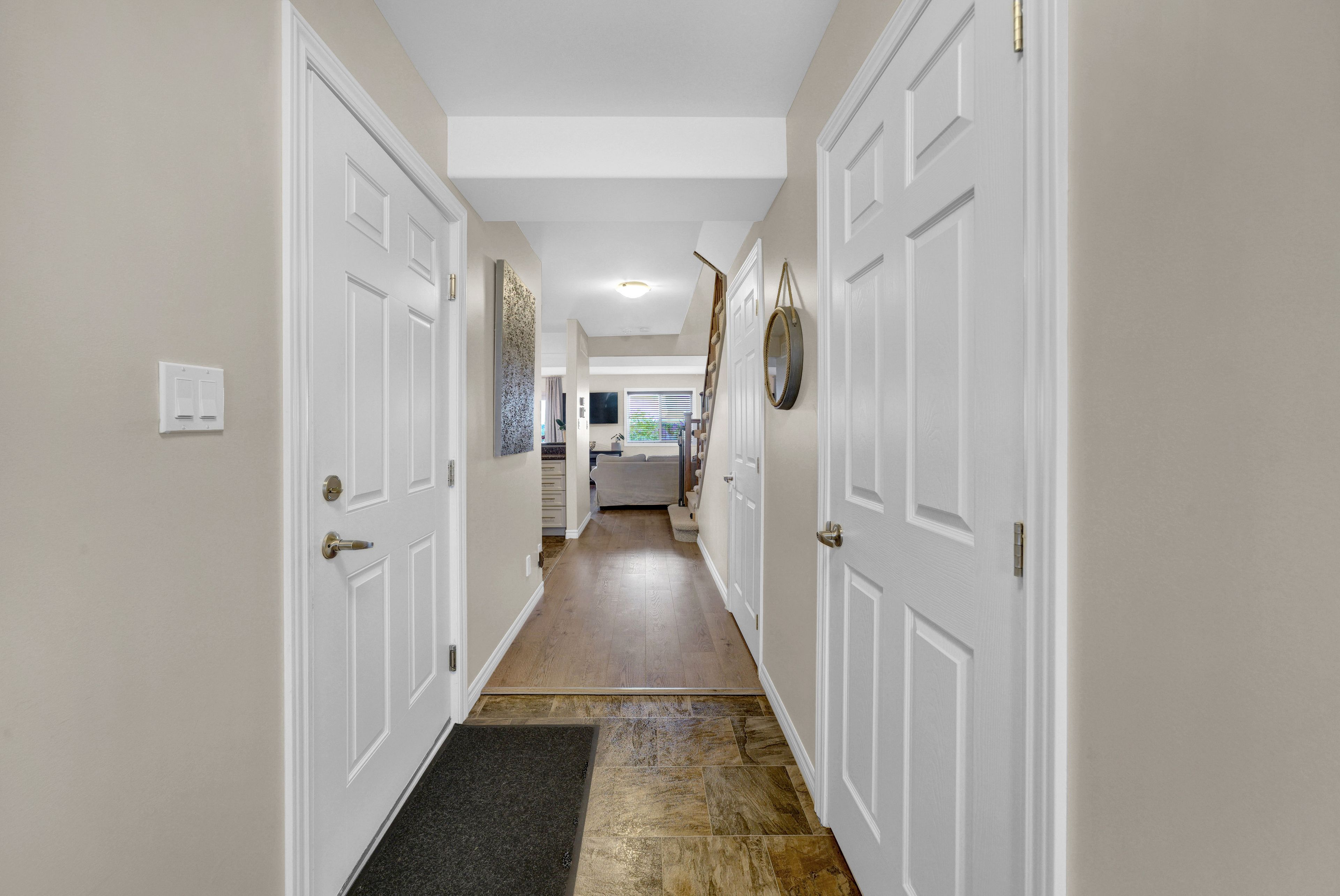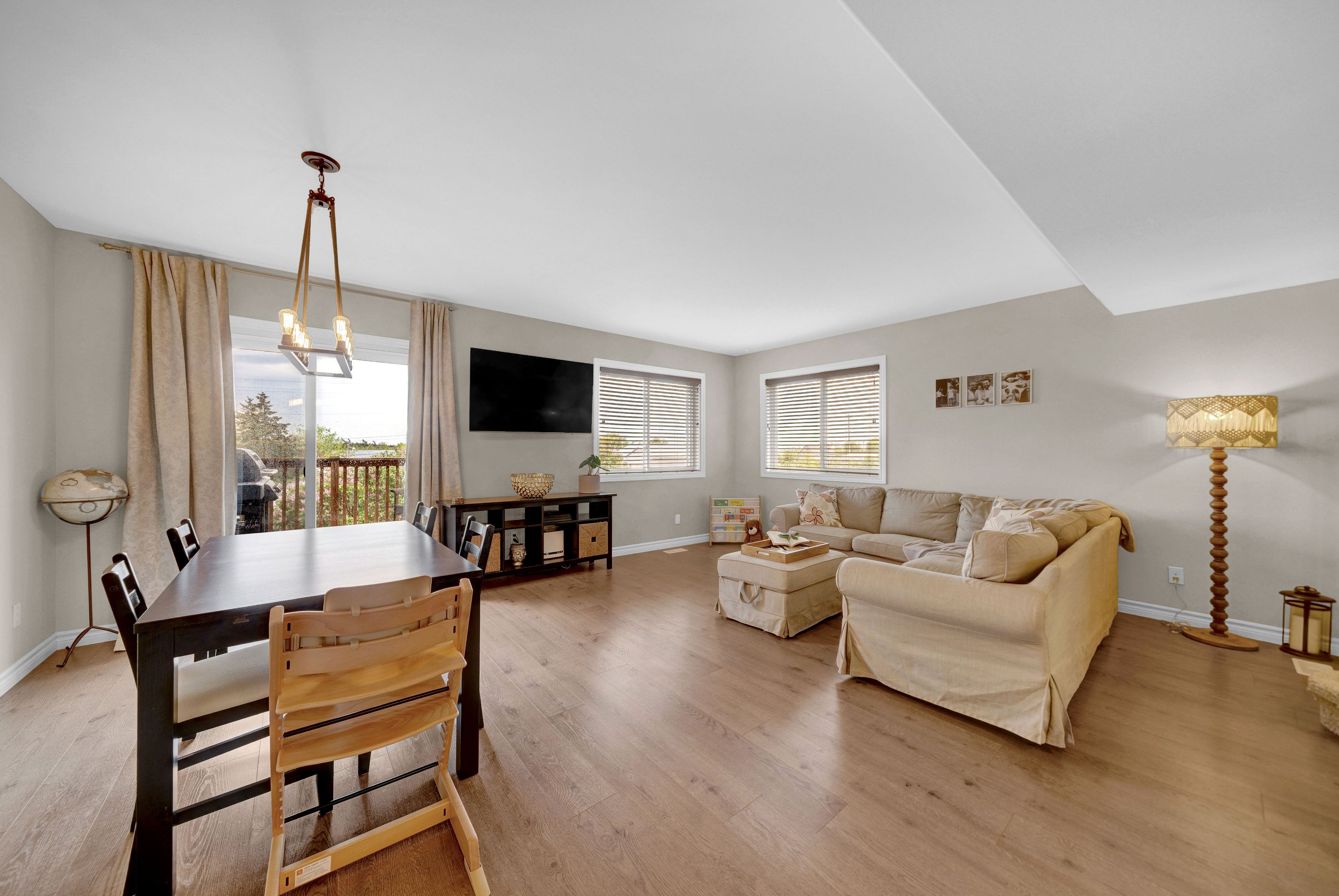 Welcome to 73 mountain ash drive in heritage park! 3 bed, 2. 5 bath 1700 + sq ft end unit with beautiful manicured front gardens and interlock walkways. Impressive large open floor plan with wide entry hallway leads to a sun filled living space. The foyer offers garage access, closet, and a 2pc bathroom. Kitchen offers an abundance of cabinetry, large pantry and the convenience of a breakfast bar with open views to the eating area and living room. Upstairs, this home provides a luxurious primary suite with vaulted ceilings, a walk in closet, and a bright 4 piece ensuite bathroom. Laundry is located on 2nd floor for convenience. Completing this level is the main 4pc bathroom, and two additional bedrooms. Downstairs, the walk out basement awaits your finishing touches - with large above-grade windows, a sliding door to the yard, and rough-in for a full bathroom. This space is brimming with potential! The multi level deck provides space for a bbq, or venture down to the lower yard with patio and covered trellis. This neighbourhood is beloved for its convenient walking access to trails, thurlow dog park, several green spaces and parks as well as the beautiful moira river. Located minutes to shopping, restaurants, school, and offering convenient hwy 401 access, this location is ideal for every stage of life! Explore this comfortable, turn-key home, fall in love, and write your story in beautiful belleville ontario!