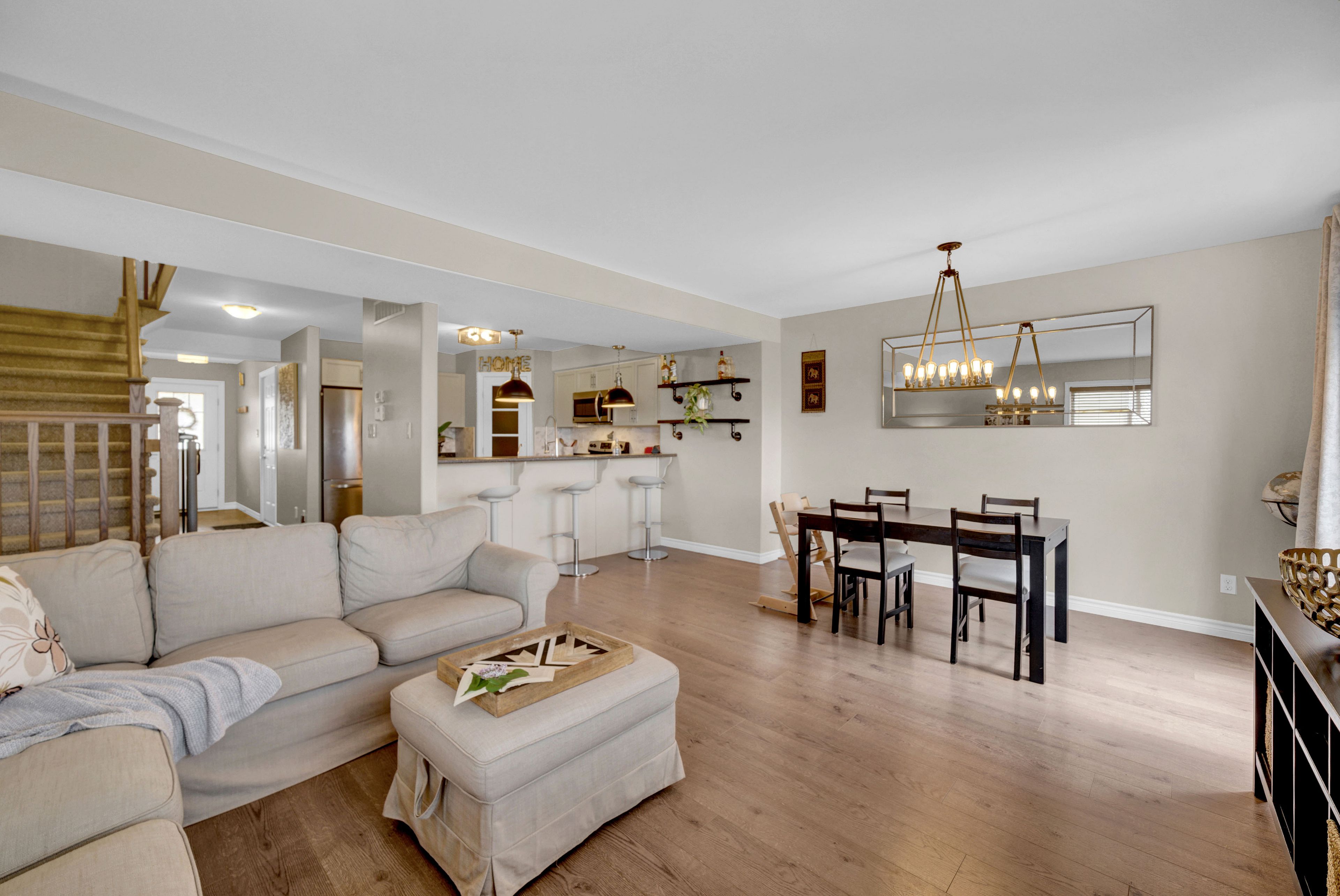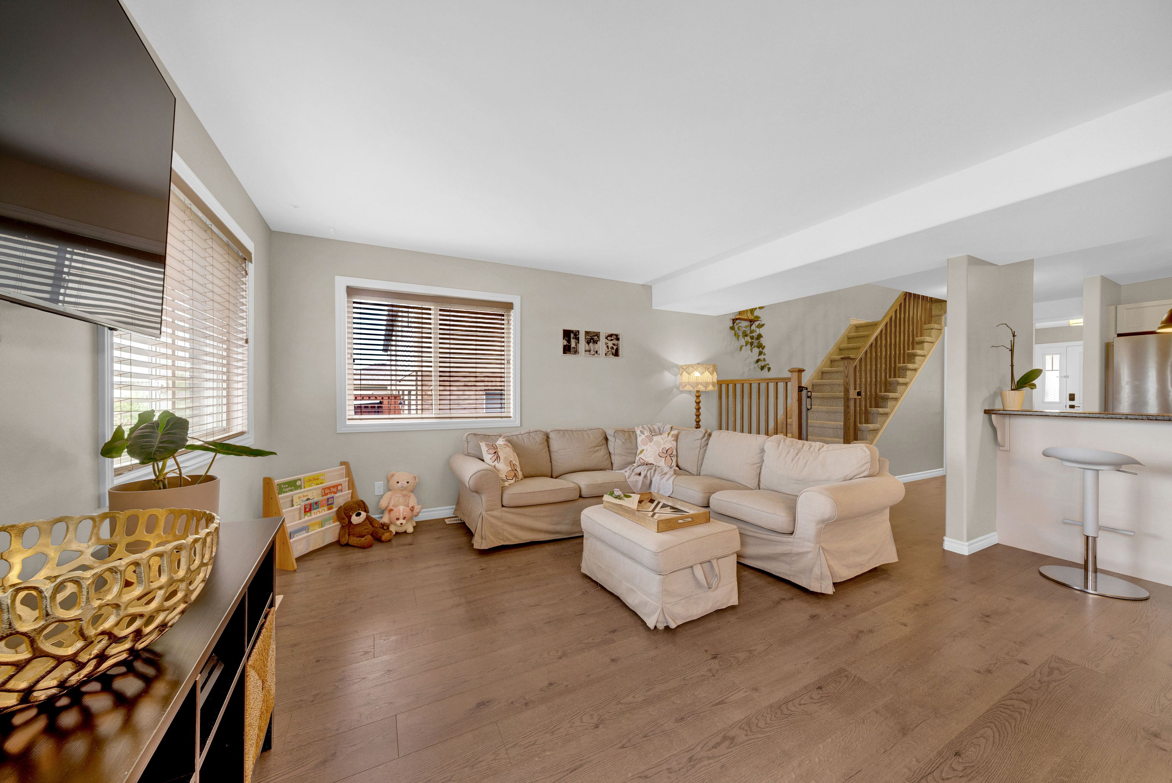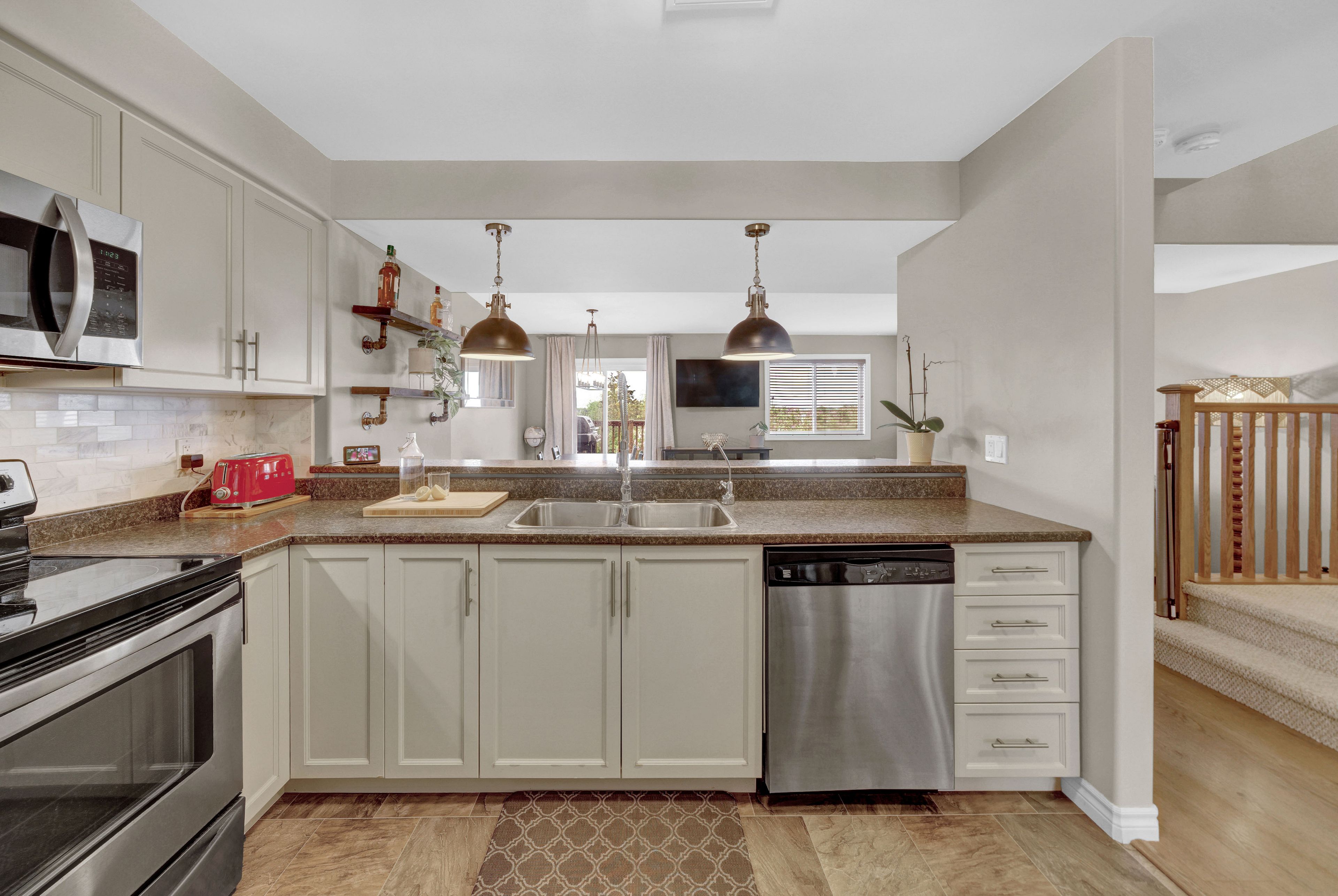 Welcome to 73 mountain ash drive in heritage park! 3 bed, 2. 5 bath 1700 + sq ft end unit with beautiful manicured front gardens and interlock walkways. Impressive large open floor plan with wide entry hallway leads to a sun filled living space. The foyer offers garage access, closet, and a 2pc bathroom. Kitchen offers an abundance of cabinetry, large pantry and the convenience of a breakfast bar with open views to the eating area and living room. Upstairs, this home provides a luxurious primary suite with vaulted ceilings, a walk in closet, and a bright 4 piece ensuite bathroom. Laundry is located on 2nd floor for convenience. Completing this level is the main 4pc bathroom, and two additional bedrooms. Downstairs, the walk out basement awaits your finishing touches - with large above-grade windows, a sliding door to the yard, and rough-in for a full bathroom. This space is brimming with potential! The multi level deck provides space for a bbq, or venture down to the lower yard with patio and covered trellis. This neighbourhood is beloved for its convenient walking access to trails, thurlow dog park, several green spaces and parks as well as the beautiful moira river. Located minutes to shopping, restaurants, school, and offering convenient hwy 401 access, this location is ideal for every stage of life! Explore this comfortable, turn-key home, fall in love, and write your story in beautiful belleville ontario!