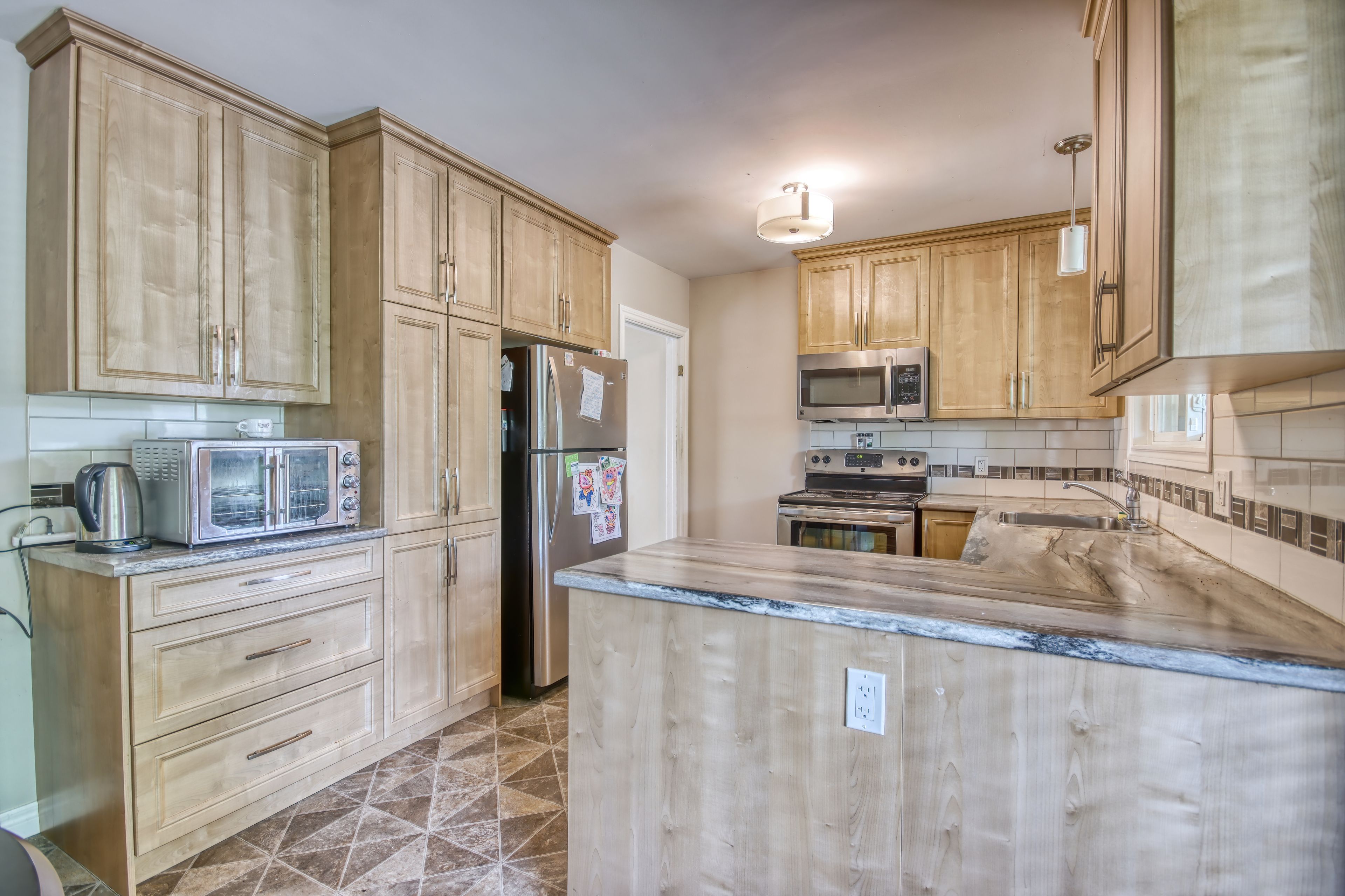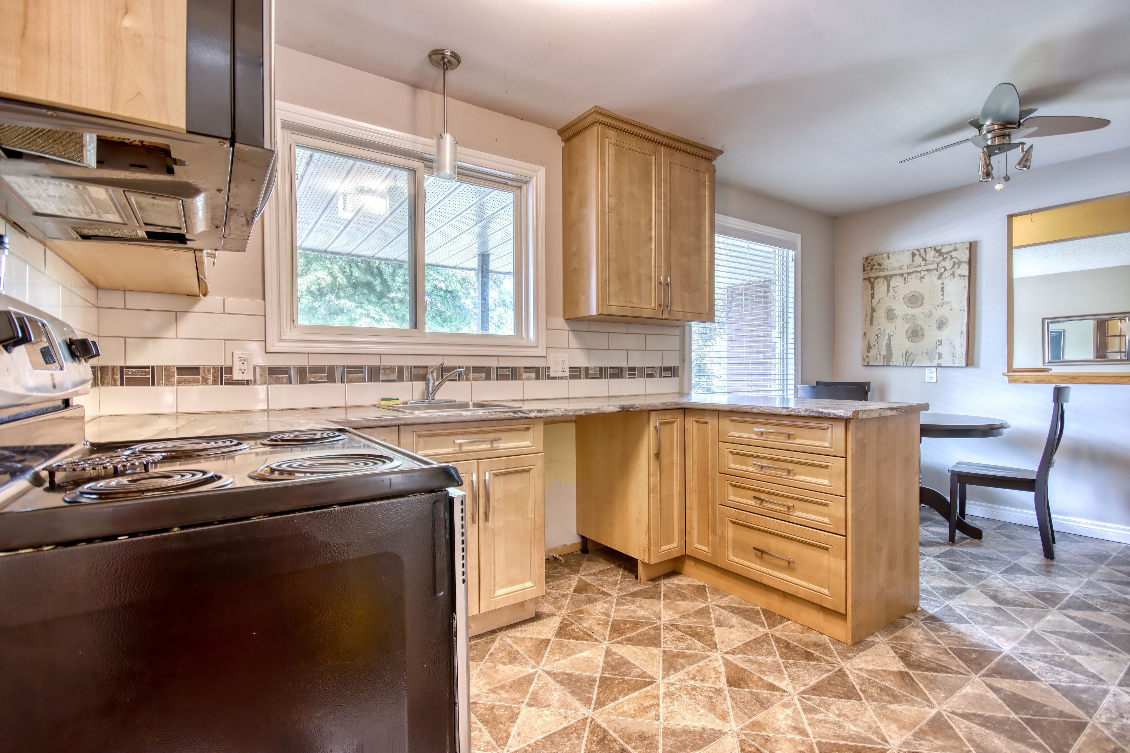 • Bright, updated open-concept kitchen with ample storage and counter space.