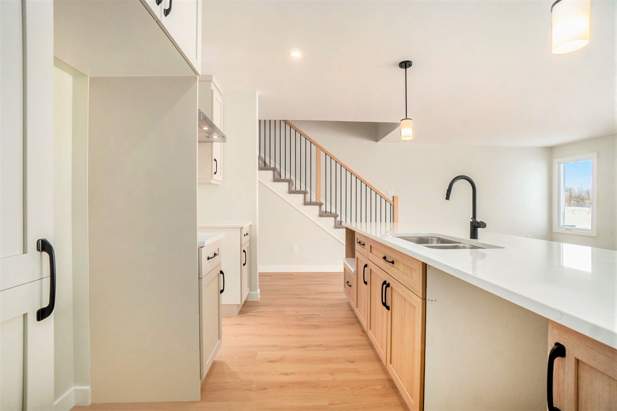 Beautiful modern property built by trusted local builder. Gorgeous semi detached 2 storey with approximately 1761sq/ft of living space, 3 beds & 3 baths and a massive double car garage to provide plenty of room for your vehicles and country toys. The main floor has an open concept layout with quartz counters in your spacious kitchen, a large 9ft island with breakfast bar, ample cabinets & a large kitchen walk-in pantry. Luxury vinyl floors throughout the entry way, living room, dining room, kitchen, bathroom & hallway. Plush carpeting leads you upstairs into the bedrooms. Primary bedroom offers a spacious walk-in closet & a 3pc ensuite bath. 2nd/3rdbedrooms are also spacious with ample closet space in each. Full bathroom & laundry room on second floor. No appliances or ac included. Site plan, floorplan, feat. & specs/upgrades attached!