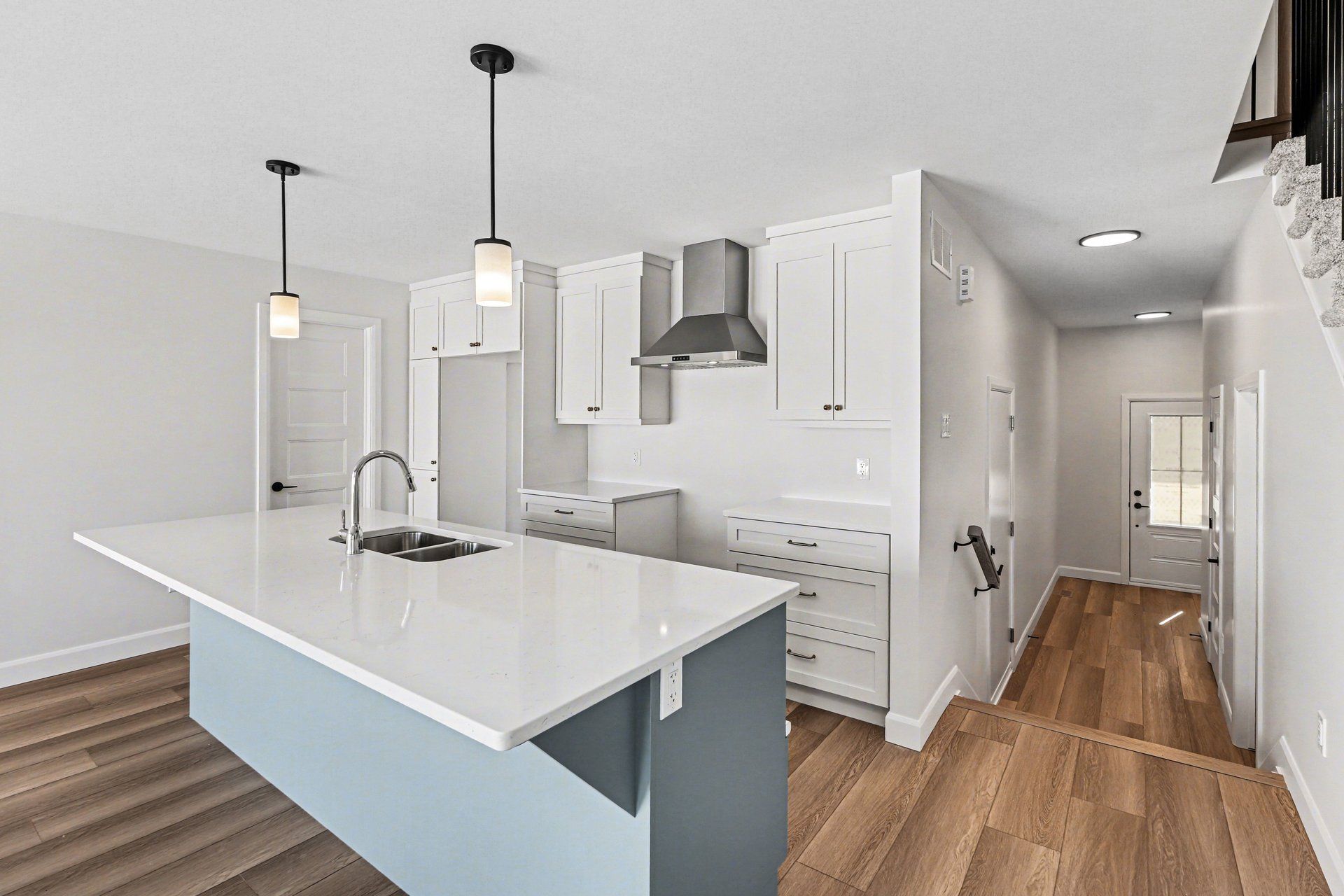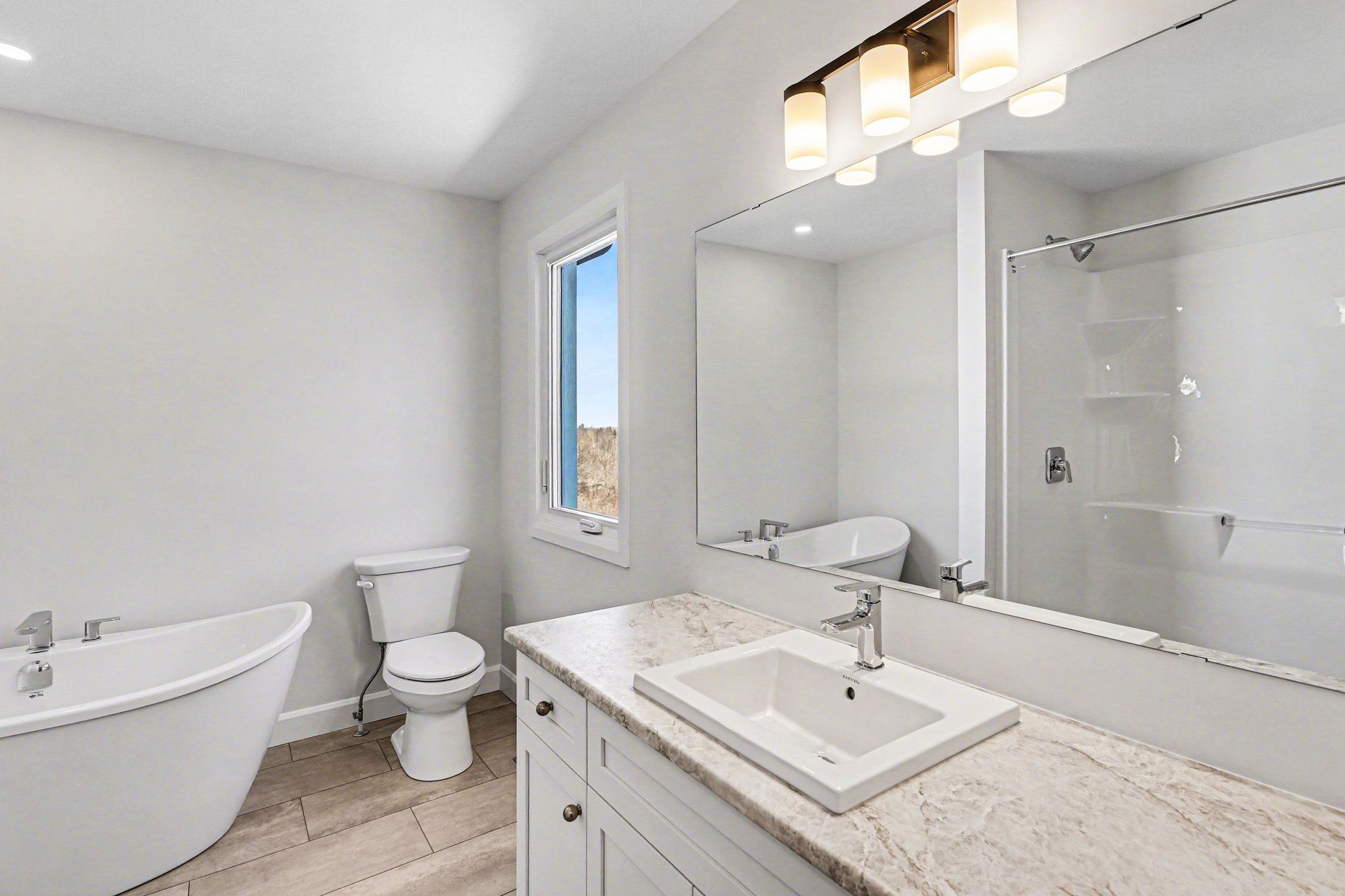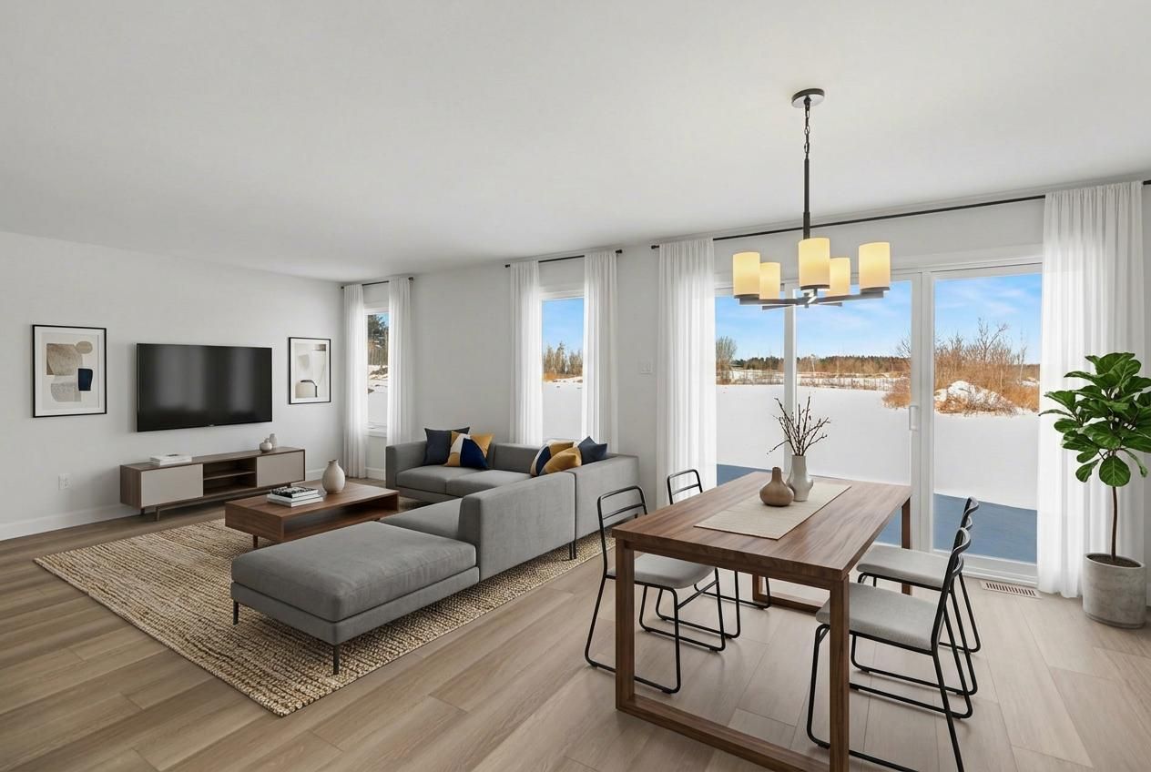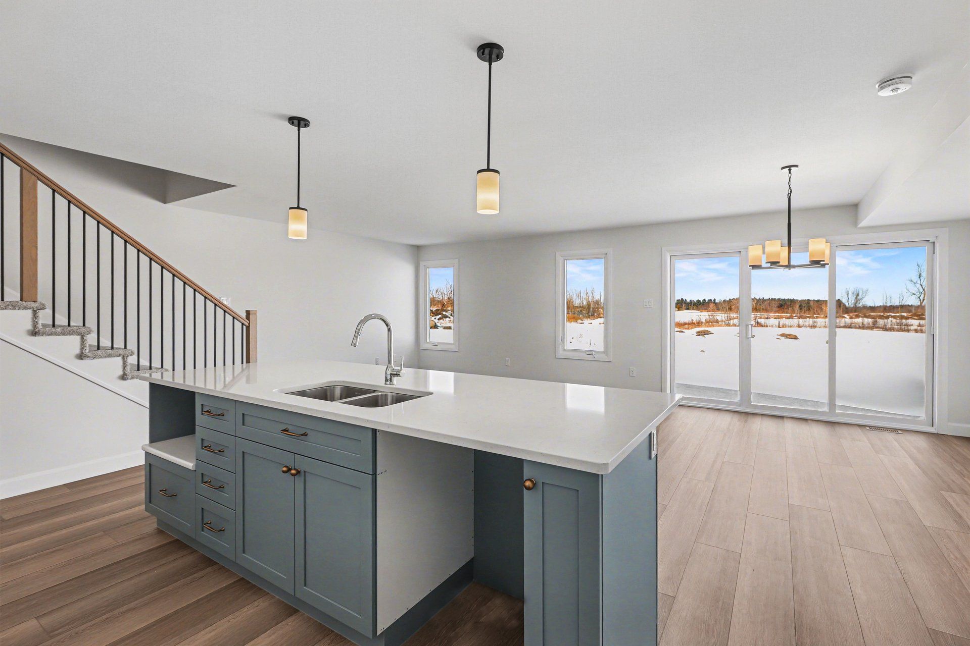 Beautiful modern property built by trusted local builder. Gorgeous semi detached 2 storey with approximately 1761sq/ft of living space, 3 beds & 3 baths and a massive double car garage to provide plenty of room for your vehicles and country toys. The main floor has an open concept layout with quartz counters in your spacious kitchen, a large 9ft island with breakfast bar, ample cabinets & a large kitchen walk-in pantry. Luxury vinyl floors throughout the entry way, living room, dining room, kitchen, bathroom & hallway. Plush carpeting leads you upstairs into the bedrooms. Primary bedroom offers a spacious walk-in closet & a 3pc ensuite bath. 2nd/3rdbedrooms are also spacious with ample closet space in each. Full bathroom & laundry room on second floor. No appliances or ac included. Site plan, floorplan, feat. & specs/upgrades attached!