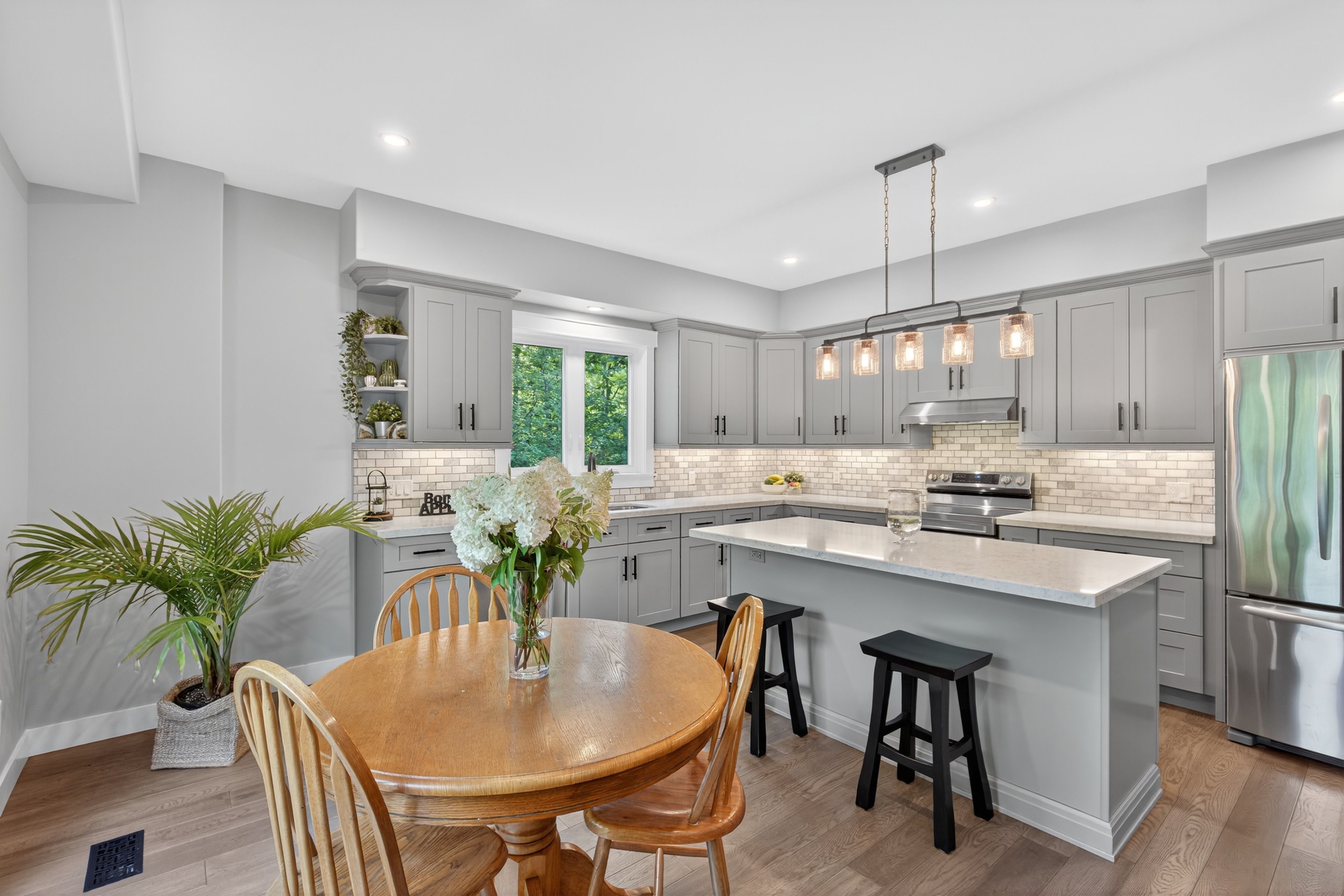 Welcome to this stunning custom-built craftsman-style home, located on a quiet, private tree-lined lot with no rear neighbours and deeded access to the pristine shores of georgian bay just steps away. This thoughtfully designed family home offers 2,429 sf of total living space , a fully finished basement, combining comfort, quality, and style throughout. Inside, you'll find 3 spacious bedrooms, 2. 5 bathrooms, and a bright, open-concept main floor with hardwood flooring, pot lights, and 9-ft ceilings throughout. The custom chef's kitchen features quartz countertops, a large centre island with plenty of storage, stainless steel appliances, soft-close cabinetry, and tiled backsplash. Walk out to a 400 sq. Ft. Deck overlooking a mature treed yard, fire pit, and custom shed, offering privacy and seasonal water views. Upstairs includes a versatile loft/reading nook, second-floor laundry room with custom wood counter and storage. Serene primary suite with walk-in closet and a spa-like ensuite featuring waterfall shower and wood-accented ceiling. The additional bedrooms are connected by a jack & jill bathroom with a large quartz vanity and dual sinks. Finished basement offers a cozy rec space with shiplap electric fireplace, egress windows, and an efficient utility room complete with a workbench, storage shelving, hrv system, water softener, and separate panels for the home and utilities. Garage features extra-tall ceilings and a dedicated workshop area, perfect for storage, tools, or hobbies. Just minutes from downtown penetanguishene, marinas, shops, parks, and georgian bay beaches, this home is a rare offering that blends modern living with natural beauty.