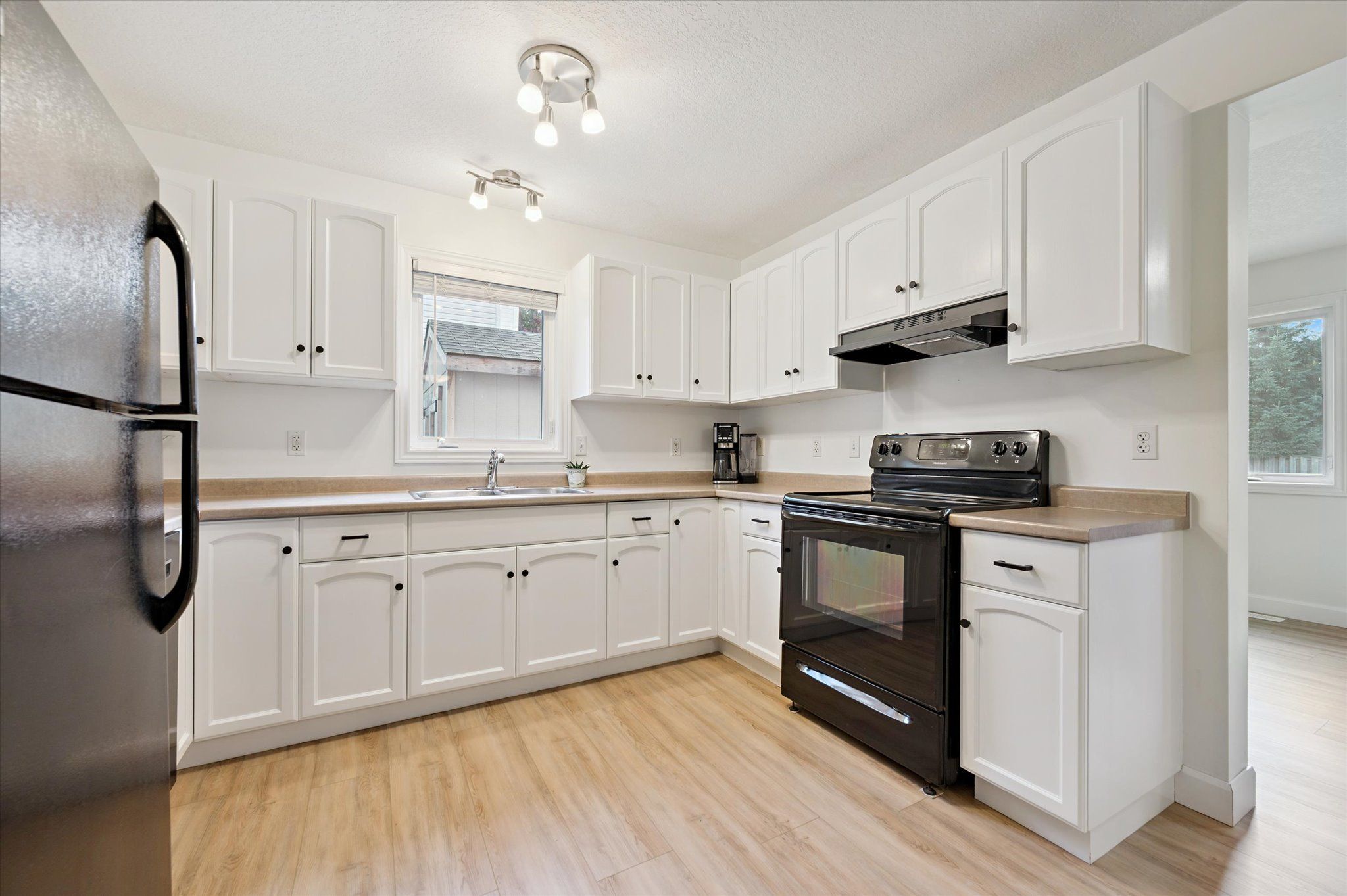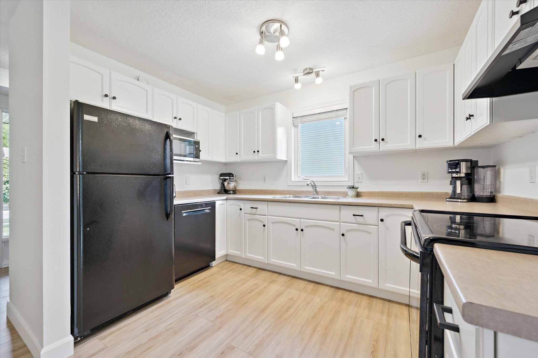 • Open concept main floor features new luxury vinyl plank flooring and bright kitchen.