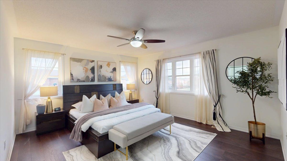 Discover this stunning, meticulously maintained and upgraded detached home boasting 2,500 sq ft of bright, open living space with all brick exterior next to lush greenspace walkway with double car garage! This well maintained 3 bed and 4 bath home is filled with natural light, conveniently located near 2 popular elementary schools and surrounded by multiple parks (modern playground with splash pad, pickle ball courts, sports fields and walking running tracks). The main floor features 9-ft ceiling, hardwood flooring designed with both functionality and style allowing for an airy feel throughout. The cozy natural gas fireplace in the family room adds warmth and charm, while the showpiece kitchen is a chef delight equipped with stainless-steel appliances, a huge center island and quartz countertops and backsplash with a direct access to backyard from the large eat-in area. Upstairs engineered hardwood flooring carry through to the bedrooms with a convenient second-floor laundry with washer and dryer makes daily routines effortless. Recent upgrades include modern kitchen (2025), second floor wooden flooring (2025), sleek washroom finishes (2025), new roof (2025), fresh painting throughout (2024), furnace and heat pump (2023), stainless steel kitchen appliances (2023), washer and dryer (2022). The fully finished basement adds exceptional value, offering a large recreation area, additional storage, and space for a home office, gym, media room or additional bedroom and is completed with a 2-pc bath. Due to premium lot size, outside fully fenced and professionally landscaped backyard features expansive interlock patio, ideal for summer bbqs along with a huge garden shed (electric connection ready for hot tub installation). This lovely home is also just minutes away from the milton sports centre, hospital, go-station, highway 401 and popular shopping plazas. Simply move in and enjoy your new home!