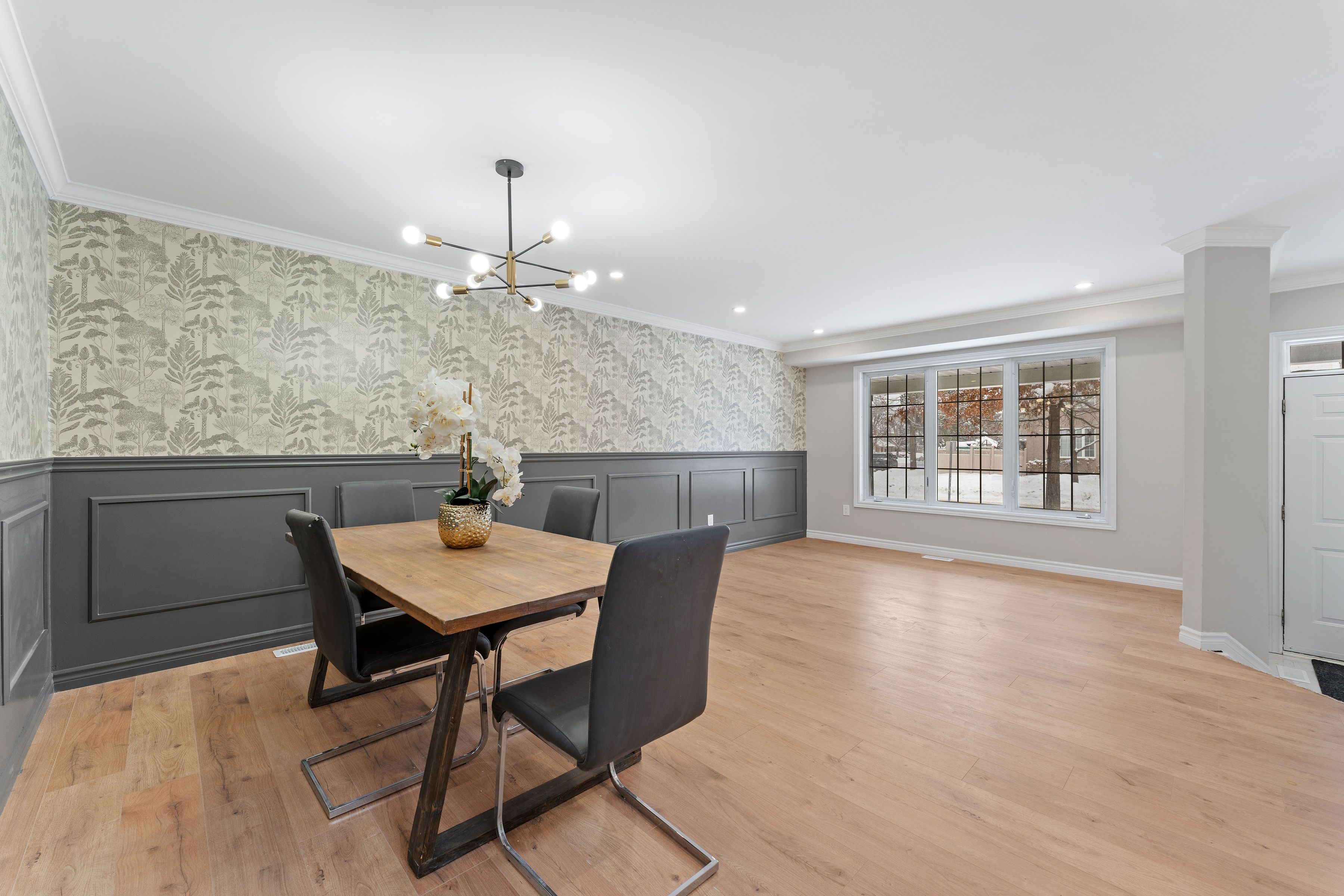 Welcome to 730 scala avenue, a completely renovated home that blends modern design with everyday comfort. The main level offers a formal living room, dining room, and family room, all featuring brand-new contemporary laminate floors, smooth ceilings, and an abundance of pot lights with upgraded light fixtures throughout. The living and dining areas showcase stunning custom design walls with elegant wainscoting and wallpaper, while the family room impresses with a stylish feature wall, gas fireplace, and custom backsplash. The brand-new open-concept kitchen is a true highlight, complete with ceiling-height cabinetry, stainless steel appliances, quartz countertops, and a beautifully upgraded powder room on the main floor. The second level features three spacious bedrooms with new laminate flooring and two fully renovated bathrooms, including a primary retreat with a private ensuite and large walk-in closet. The fully finished basement adds even more living space with a huge recreation room and another completely renovated full bathroom. Outside, enjoy a fully fenced and private backyard, plus a beautifully finished interlock front lawn that allows side-by-side parking. Ideally located close to schools, parks, shopping, transit, and all essential amenities, this turnkey home is one you don't want to miss.