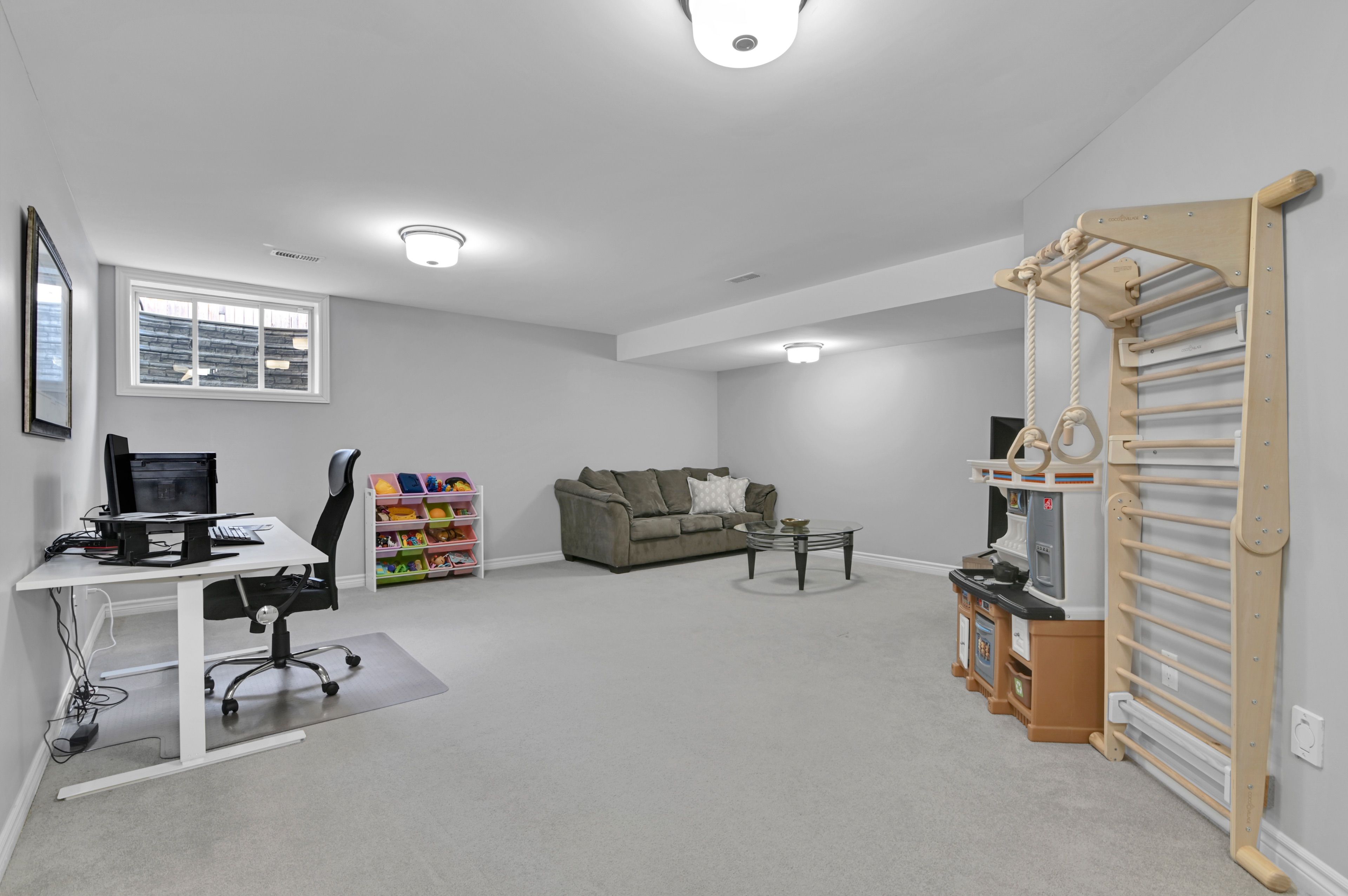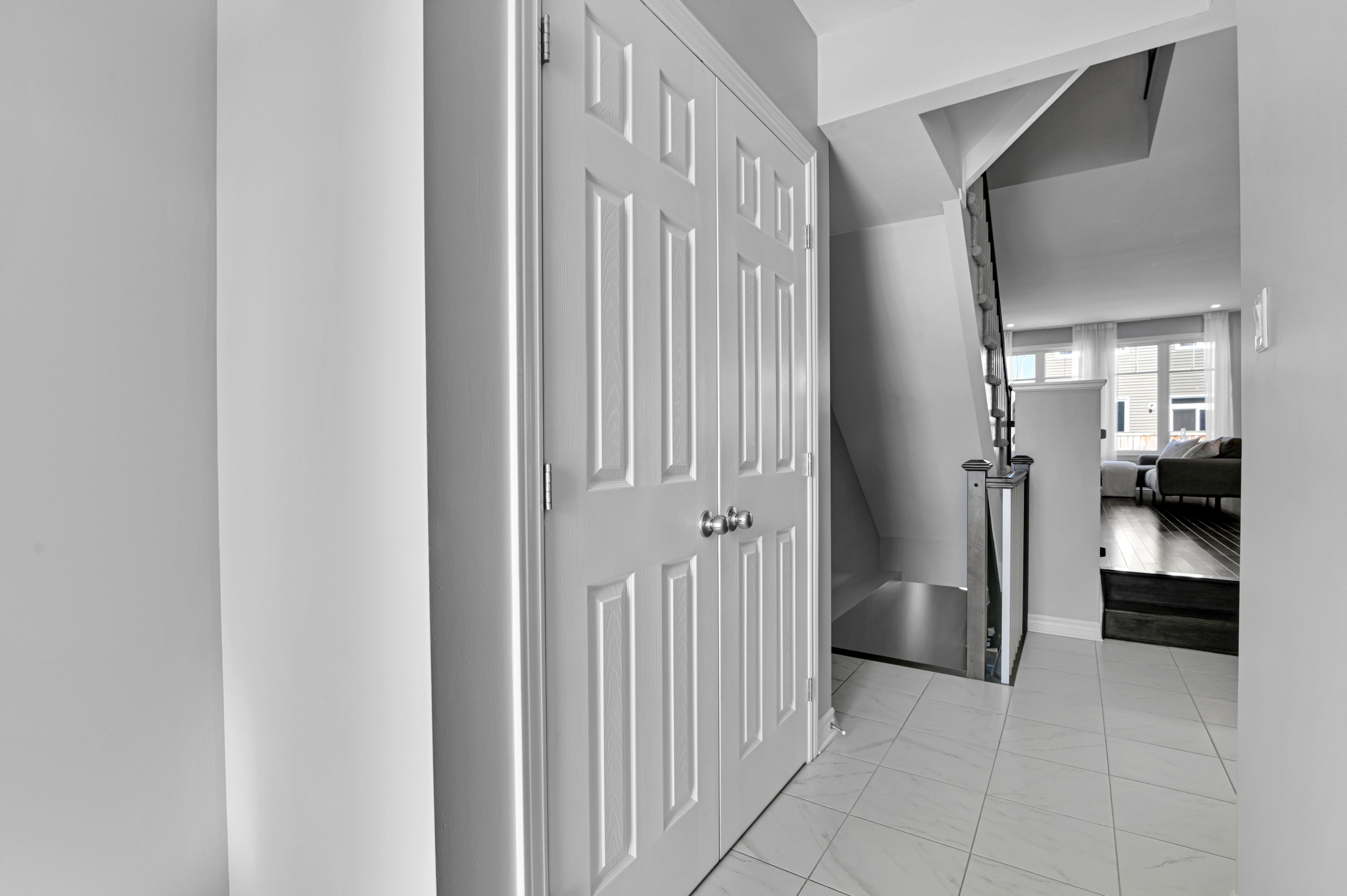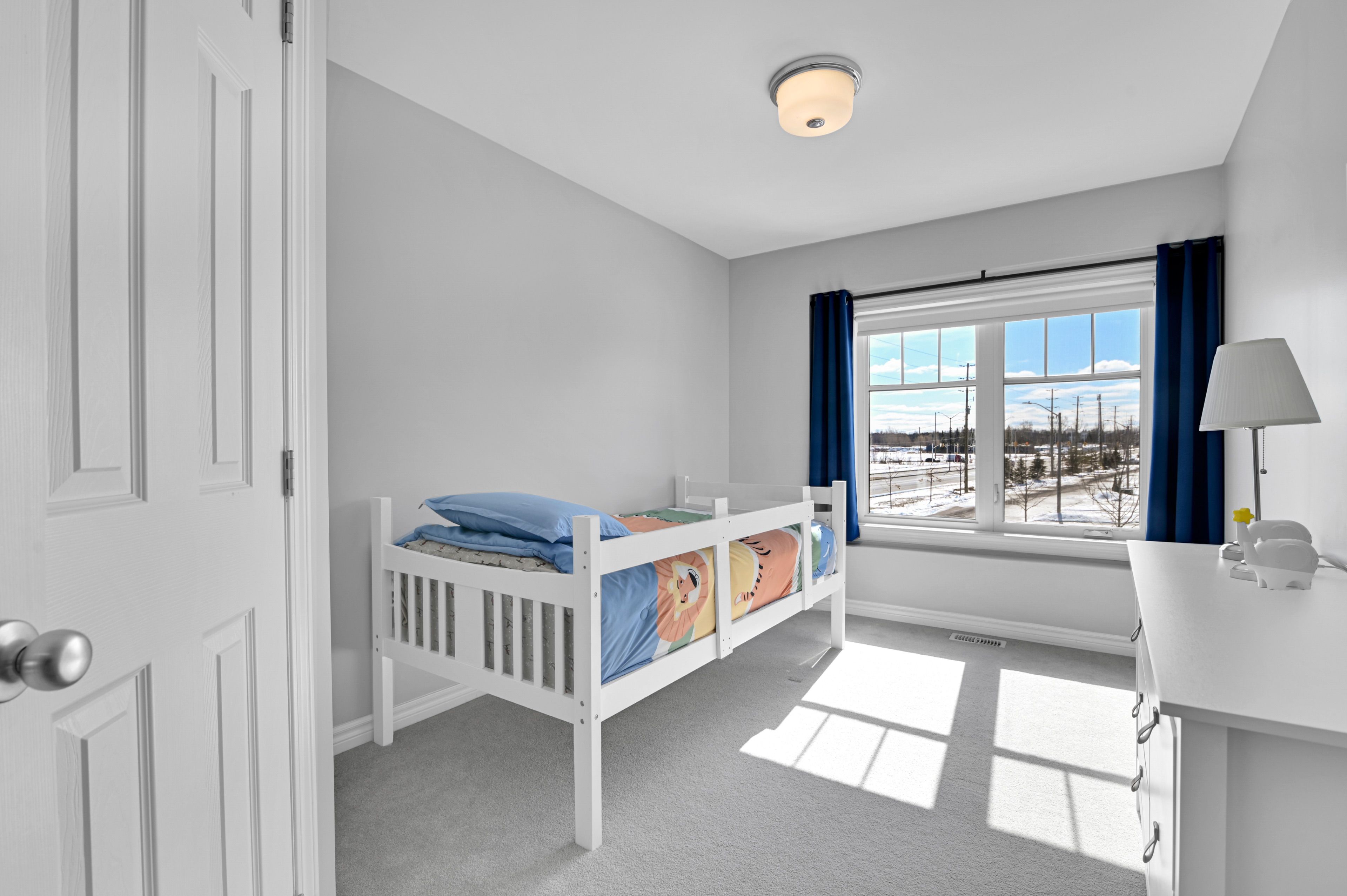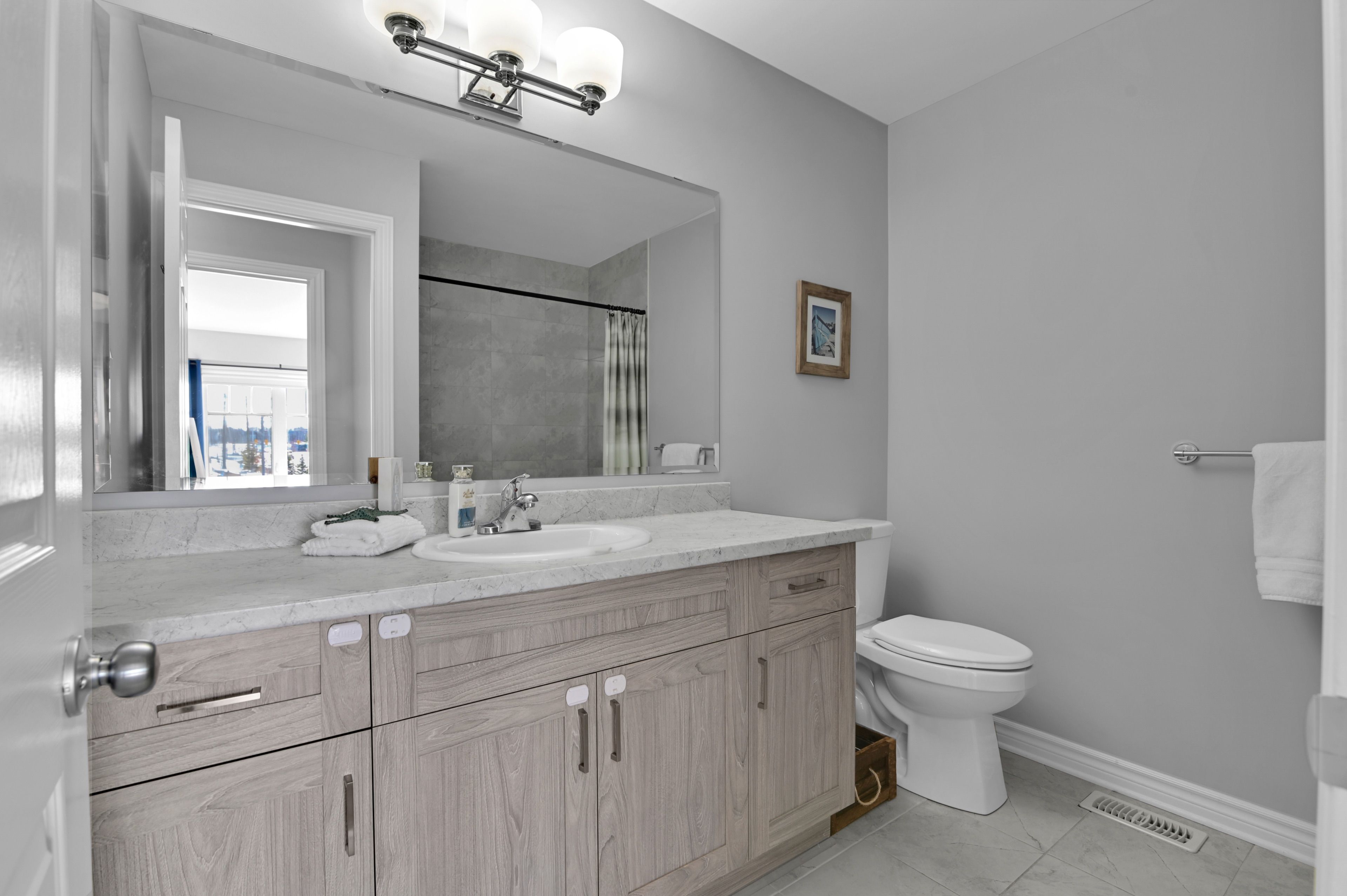 Welcome to this beautifully appointed chelsea model townhome by tamarack, offering an exceptional blend of space, style, and functionality. The main level impresses with soaring 9-foot ceilings and stunning hardwood floors that flow seamlessly throughout. The modern kitchen is designed for both everyday living and entertaining, featuring stainless steel appliances, a large island with granite counters, and large pantry for ample storage. The inviting living room is anchored by a striking gas fireplace with a stone tile surround and elegant mantle - perfect for cozy evenings at home. Upstairs, you'll find three generously sized bedrooms, including a spacious primary retreat complete with his and hers walk-in closets and a modern 4-piece ensuite with glass shower. The convenience of second-floor laundry and an additional full bathroom enhances the home's practical layout. The fully finished lower level offers a versatile rec room ideal for a home theatre, gym, or play space, while still having space for a potential home office and plenty of additional storage. Step outside to enjoy the fully fenced backyard, featuring a beautifully finished interlock patio completed last year - perfect for outdoor dining and relaxation. This thoughtfully designed home delivers outstanding square footage in one of tamarack's most sought-after layouts - ideal for families and professionals alike.