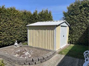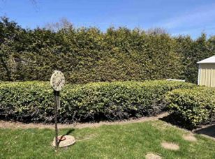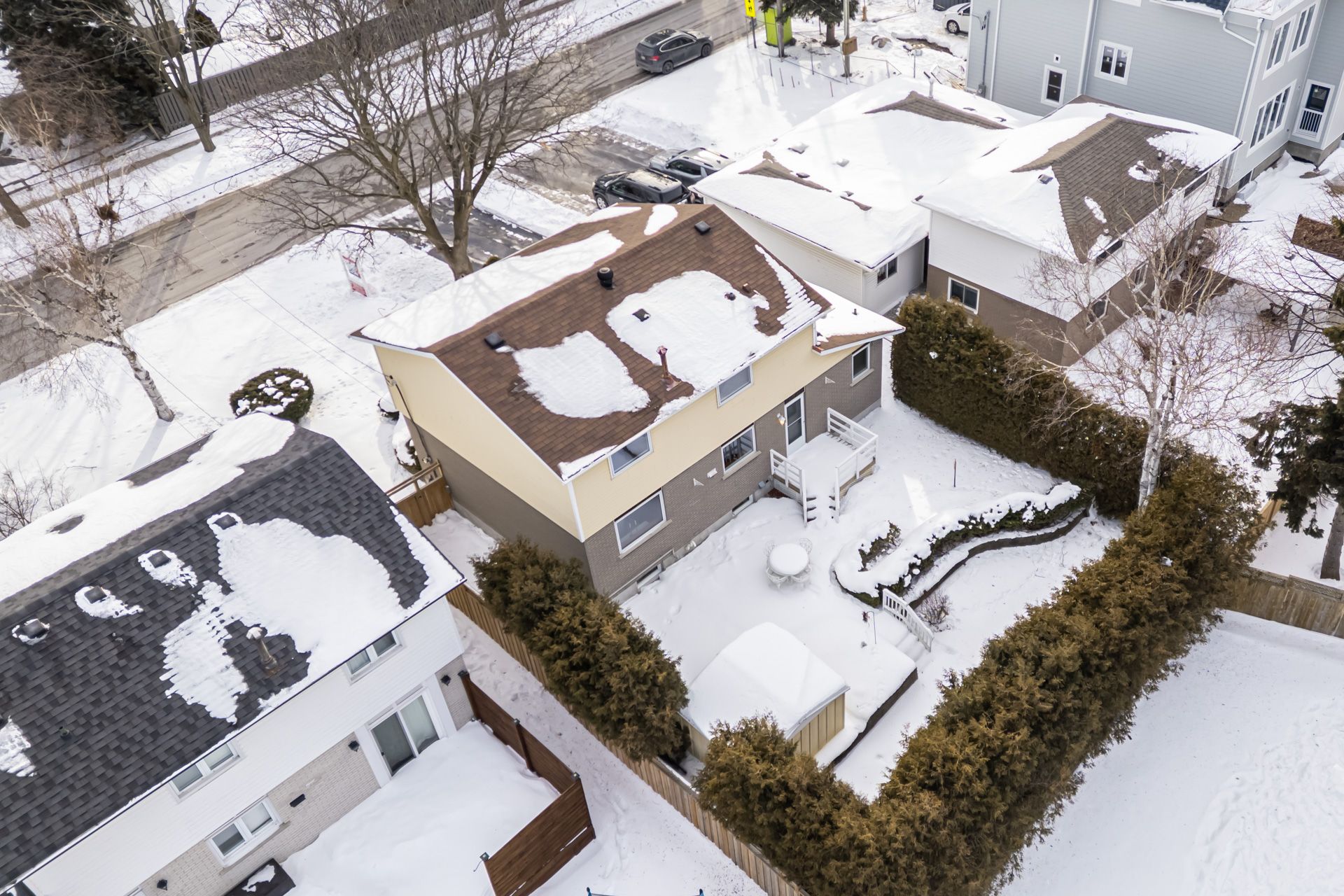 • Fenced backyard with deck, shed, and landscaped gardens.
