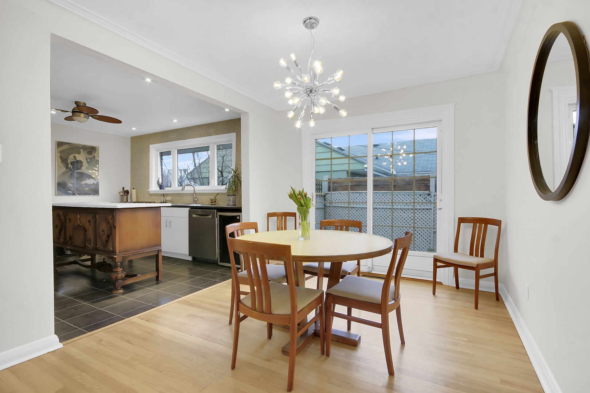 • Generous corner lot with a sunny backyard, perfect for outdoor activities.