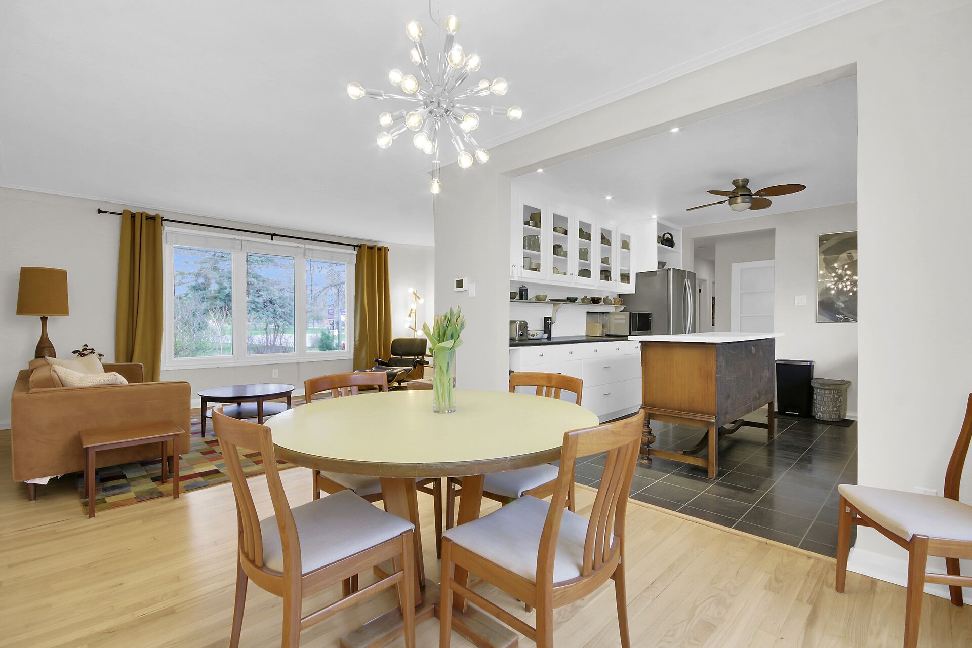 • Main level features 3 bedrooms and an open concept kitchen, dining, and living area.