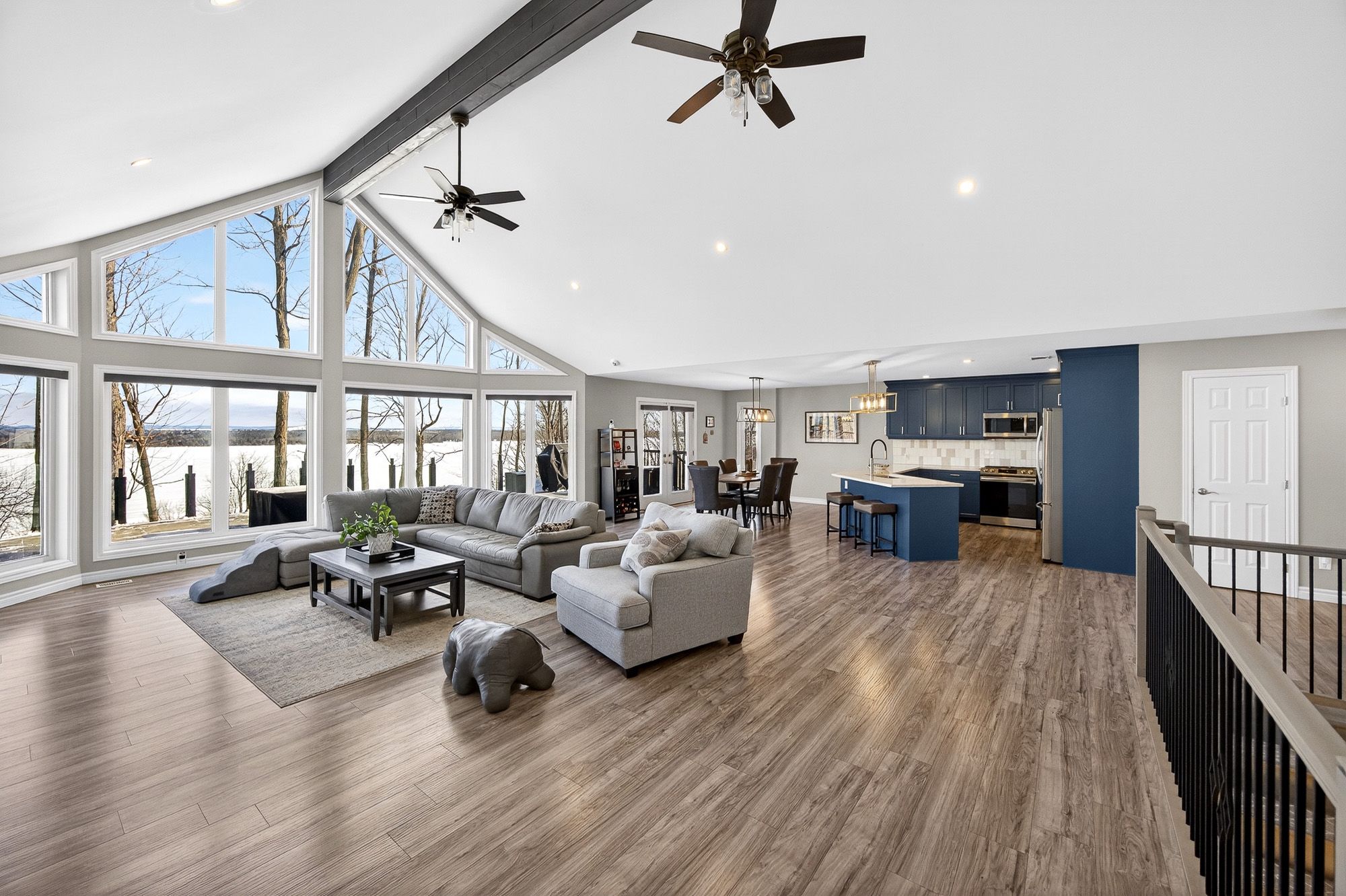 Incredible opportunity to truly "love where you live" only a 30 min commute to kanata, and minutes from arnprior which offers amenities,hospital,parks,a marina,and charming downtown full of shops and restaurants... This home showcases stunning views of the ottawa river and gatineau hills and is directly across from the public boat launch and public beach. You also have access to the 29km algonquin trail that runs from arnprior to renfrew at the end of the laneway. Entertaining this summer will be a dream! With an expansive 50x16ft composite deck looking out over the ottawa river and gas fire pit deck parties are at a whole other level. Walk across the street for a swim or spend an adventurous day on the water exploring the river. The heart of every home is the kitchen and this one is perfect for family get togethers not only aesthetically beautiful but functional as well with plenty of counter space and seating featuring quartz countertops,stainless steel appliances and a pantry. Wake up each morning in your master bedroom to beautiful views and get ready for your day in a spa-like ensuite bathroom. Cathedral ceilings and floor to ceiling windows bring the outdoors in and with 5 bedrooms, 3 bathrooms, and a finished lower level this home gives you aprox 4000sqft to enjoy life with friends and family. For peace of mind a generac system is installed. High speed internet is bell fibe. Celebration lights have been professionally installed on the exterior so every holiday and mood can have your own unique accent lighting. The 2. 5 car garage and 16x10ft shed offer tons of space to store all of the toys you will need to explore the "great outdoors". There is also a propane hook up for the bbq and firepit, and wiring for a hot tub. Property is landscaped and a paved laneway. For the dog lover your furry family member will love the enclosed dog run. Built in 2022 this custom home has just about everything you could want! 24 hour irrevocable on all offers.