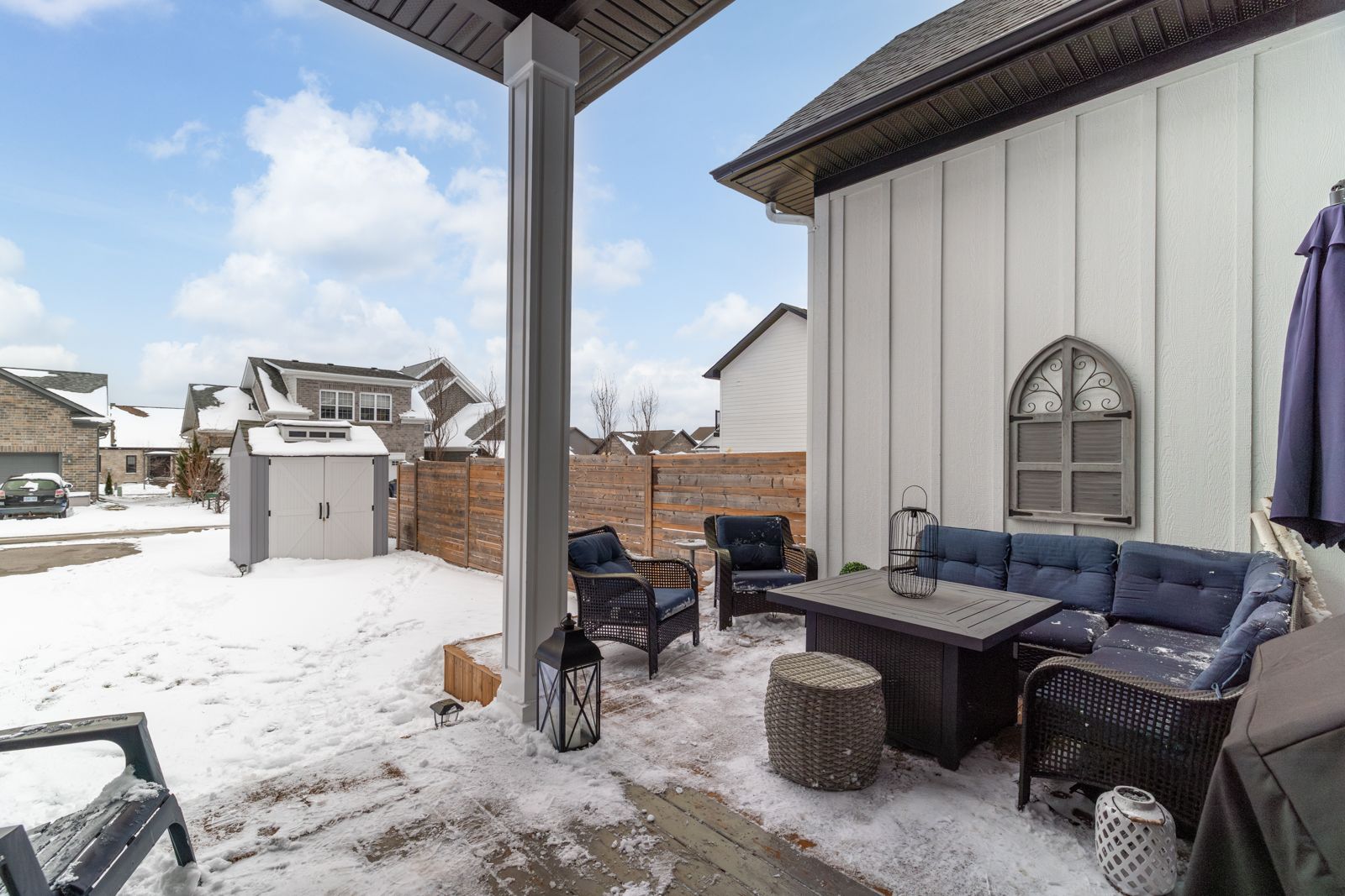 • Expansive backyard deck and garden shed for outdoor enjoyment and storage.