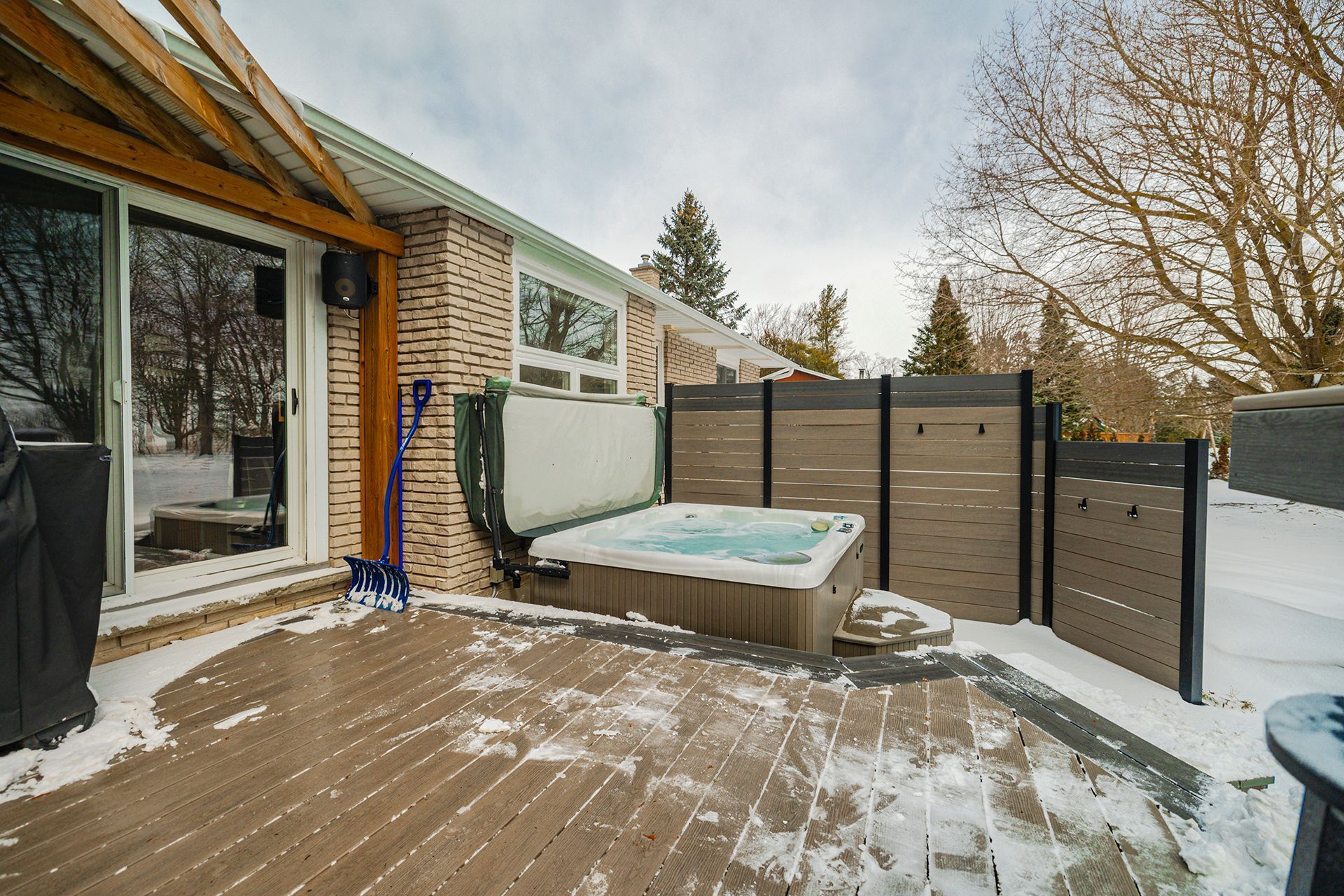 • Large composite deck with hot tub, perfect for relaxation and gatherings.