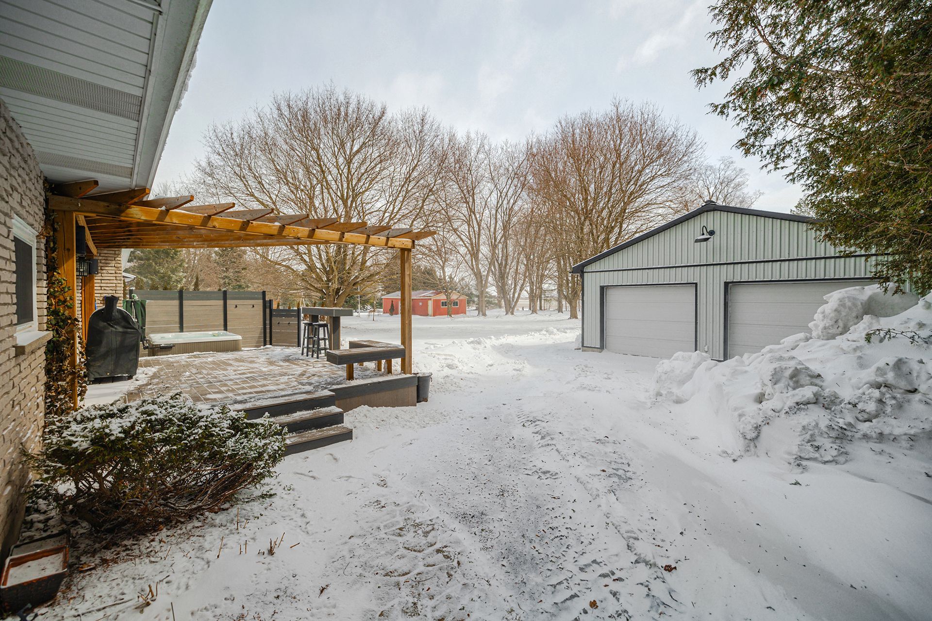 Experience the perfect fusion of rural serenity and cutting-edge sophistication on this meticulously updated 1-acre property. This beautiful bungalow offers a turnkey 3-bedroom, 2-bathroom layout featuring a custom maple kitchen, updated bathrooms and custom closets throughout. Engineered for long-term comfort and efficiency, this home boasts a fully updated main level with new roof, new insulation, electrical, drywall, gas lines, and windows. Entertainment is elevated to an art form in the professional-grade theatre room, complete with tiered seating, 6 custom recliners, a 7. 1 surround sound system, and a sleek wet bar. Also the sonos sound system extends the atmosphere from the whole interior of the house to the massive exterior composite deck, which features a privacy wall and a premium hot tub-perfect for hosting or relaxing under the stars. For the visionary, car enthusiast, or entrepreneur, the 1,600 sq. Ft. Detached heated shop is a masterpiece of utility. This impressive workspace features a thick-pour concrete floor with in-floor heating, a 10,000 lb. Hoist, and a compressor with integrated lines. Beyond the luxury finishes, the property is built for absolute peace of mind, equipped with a drilled well, an oversized septic system, waterproofed foundation, and a backup generator. This is a rare opportunity to own a modern country sanctuary that offers both a high-tech lifestyle and a professional-grade workspace.