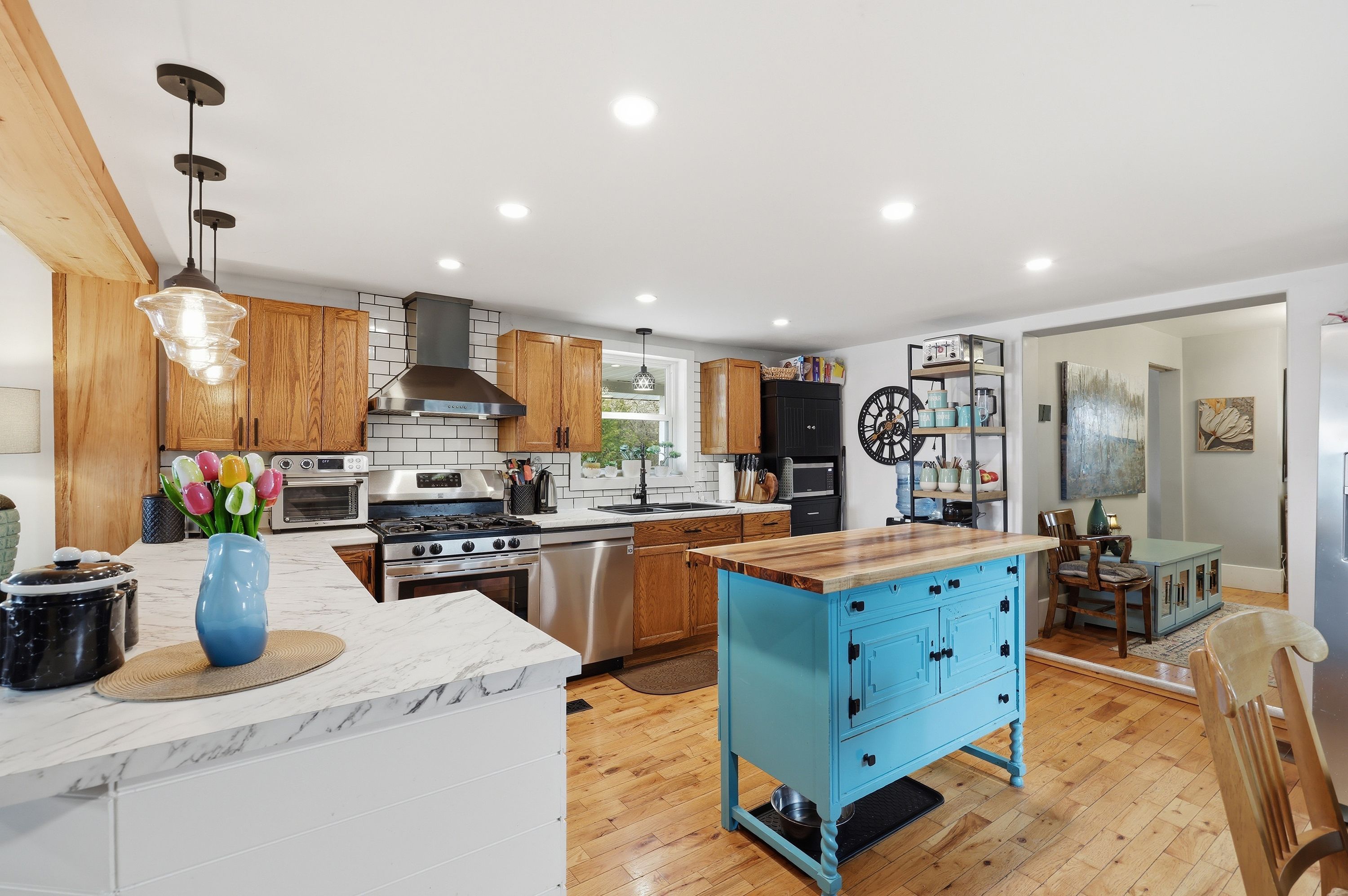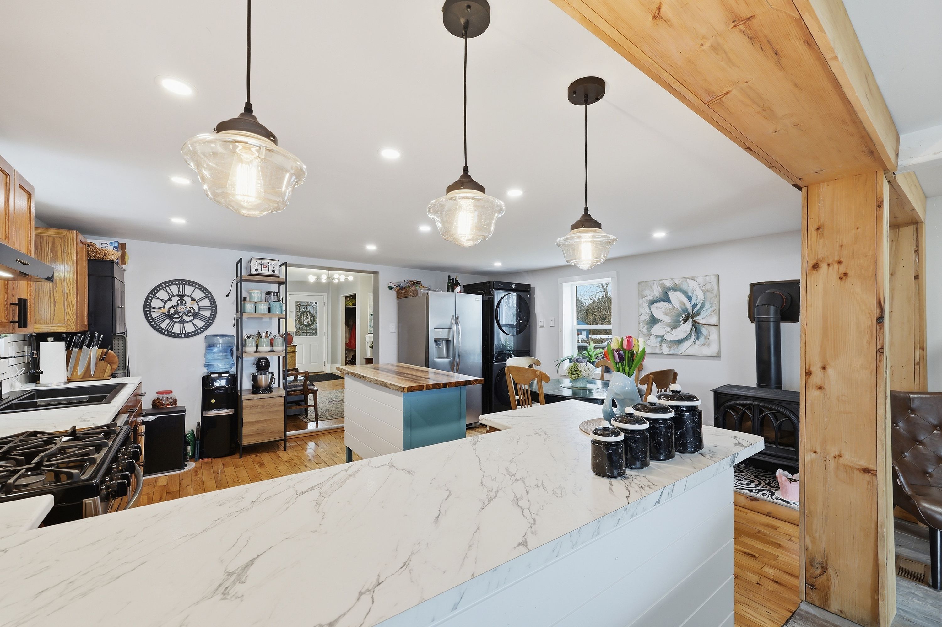 Tucked away in rankins corner on just over 100ft of shoreline on the napanee river, you'll find this charming home. Just 5 min from downtown napanee, and sitting on just over an acre, this property offers peaceful waterfront living the perfect sunset view and great fishing right off the dock! The main floor features one bedroom, a beautiful new full bathroom, open concept living/dining/kitchen. Upstairs you'll find the primary bedroom, 2 other bedrooms and another spa like bathroom. Other features include new heat pump, updated water system & septic plumbing. The bonus feature is the large detached garage with 2 carports, complete with a workshop. Loft space that provides a ton of extra storage and a chicken coop - fresh eggs everyday.