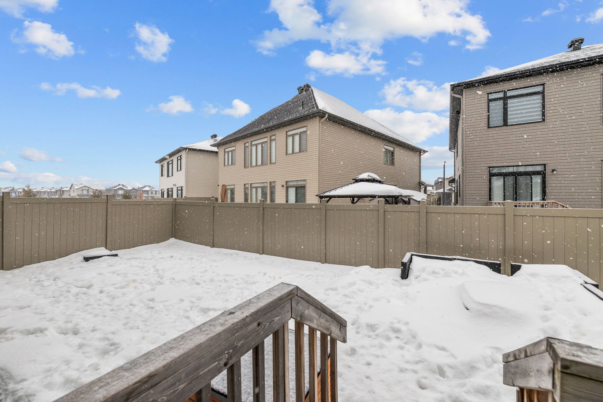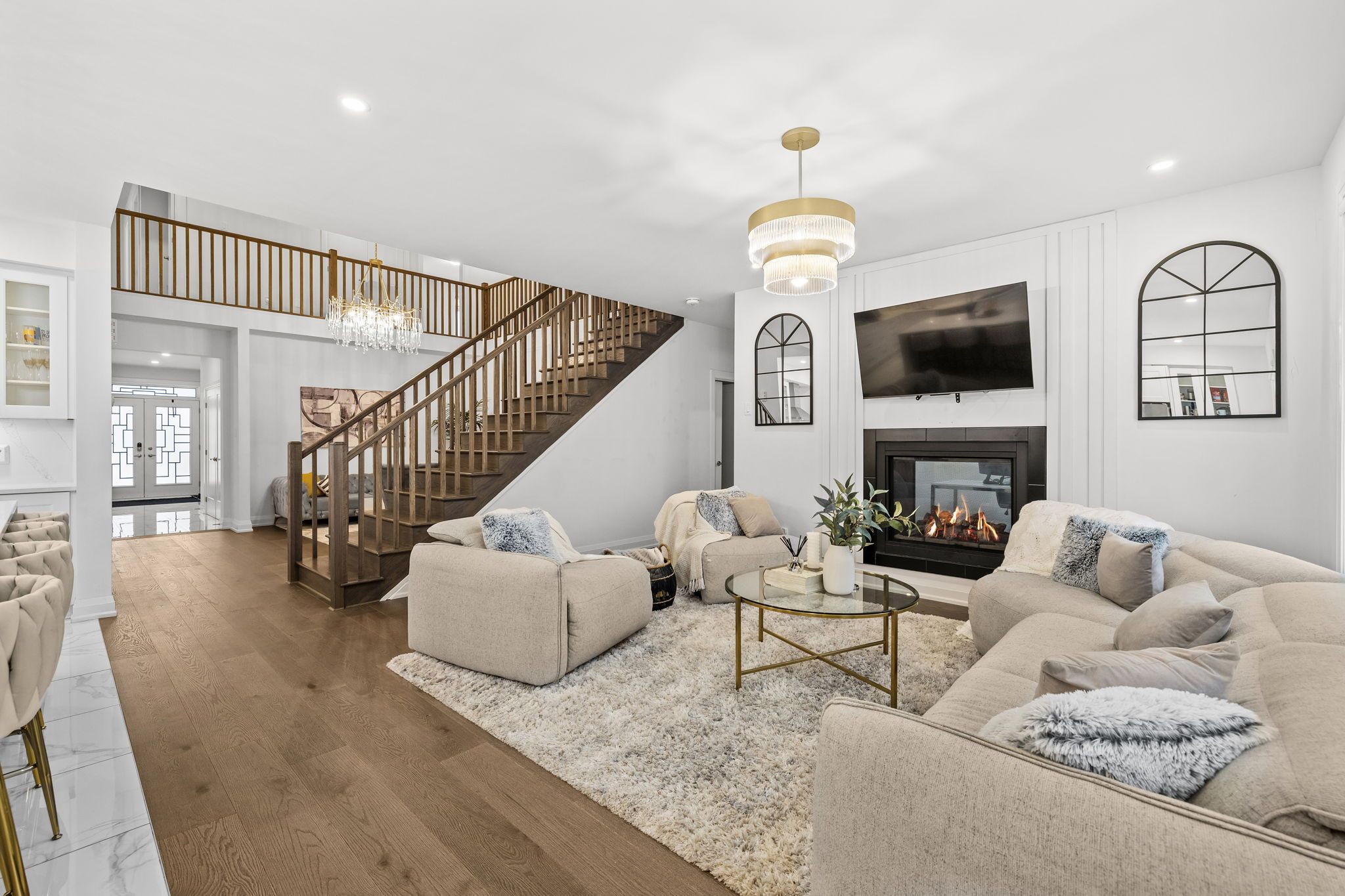Architectural flow and everyday luxury meet in this masterfully designed residence where every floor tells a story of scale and connectivity. The centerpiece is a stunning open-to-above living room anchored by a beautiful golden chandelier that highlights the home's incredible height, while maple wrap-around railings from the second level ensure every room feels connected to the heart of the home. The kitchen is a true showstopper, featuring a massive island with waterfall edges on both sides, seamlessly built-in appliances, and an endless array of custom drawers and pull-outs. Designed for the modern professional, the main floor offers two dens plus a full bathroom, providing total flexibility for dual home offices or multigenerational living. Upstairs, the layout is impressively spacious with five bedrooms and three full baths, including a luxurious 5-piece ensuite, a second ensuite, and a jack-and-jill bath, while the primary suite features a walk-in closet the size of a bedroom. The finished basement is built for entertainment with a movie section, play area, and lounge, plus a massive unfinished wing for a home gym or storage. Step outside to a large deck and fully fenced yard in prime riverside south, located minutes from the rideau river trails and boating, the lrt, and the future town centre. Your search ends here.