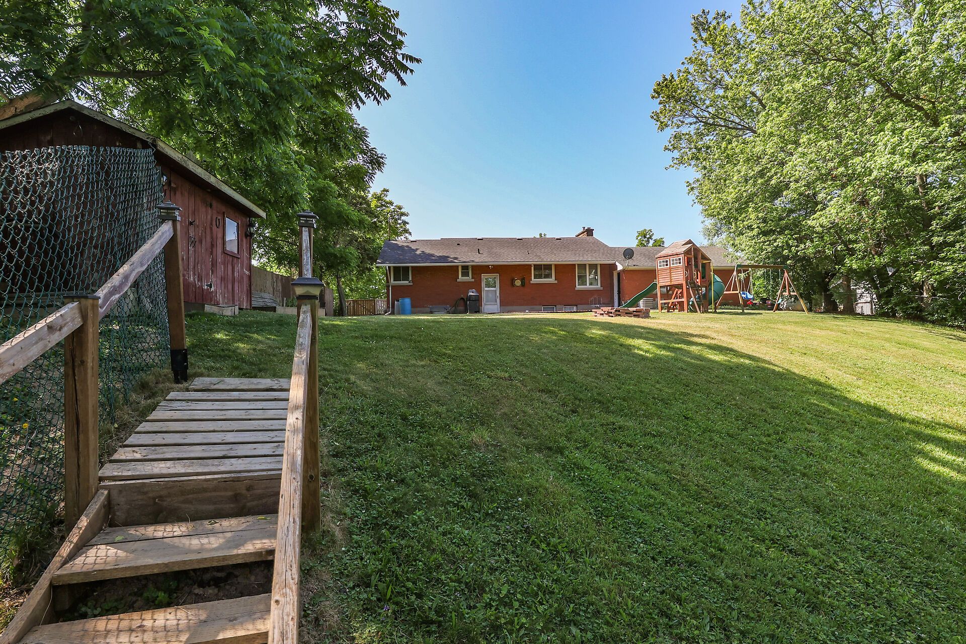 Welcome to 73222 regional road 27, where country living meets riverside relaxation. This inviting 3+1 bedroom bungalow is set on a picturesque 0. 55-acre riverfront lot, offering direct access to the welland river-perfect for fishing, kayaking, boating, or simply soaking in the peaceful waterside views. Inside, you'll find a bright, open-concept living and dining area centered around a cozy fireplace, creating a warm and welcoming atmosphere. The updated kitchen features ample cabinetry, soft-close drawers, and plenty of prep space-ideal for cooking while taking in the scenic river backdrop. Three spacious bedrooms and an updated 4-piece bathroom complete the main level. The finished lower level extends your living space with a large rec room, an additional bedroom or home office, and abundant storage options. Step outdoors to multiple decks where you can unwind, entertain, or watch the kids play in the fully fenced yard. The property also offers room for chickens, a double garage, and a wide gravel driveway with generous parking for guests or recreational vehicles. Whether you're a first-time buyer, downsizer, or a nature enthusiast looking for a peaceful retreat, this well-maintained, move-in-ready home delivers the perfect balance of privacy, outdoor adventure, and convenience-just minutes from local amenities. Experience the charm of riverside living at its finest!