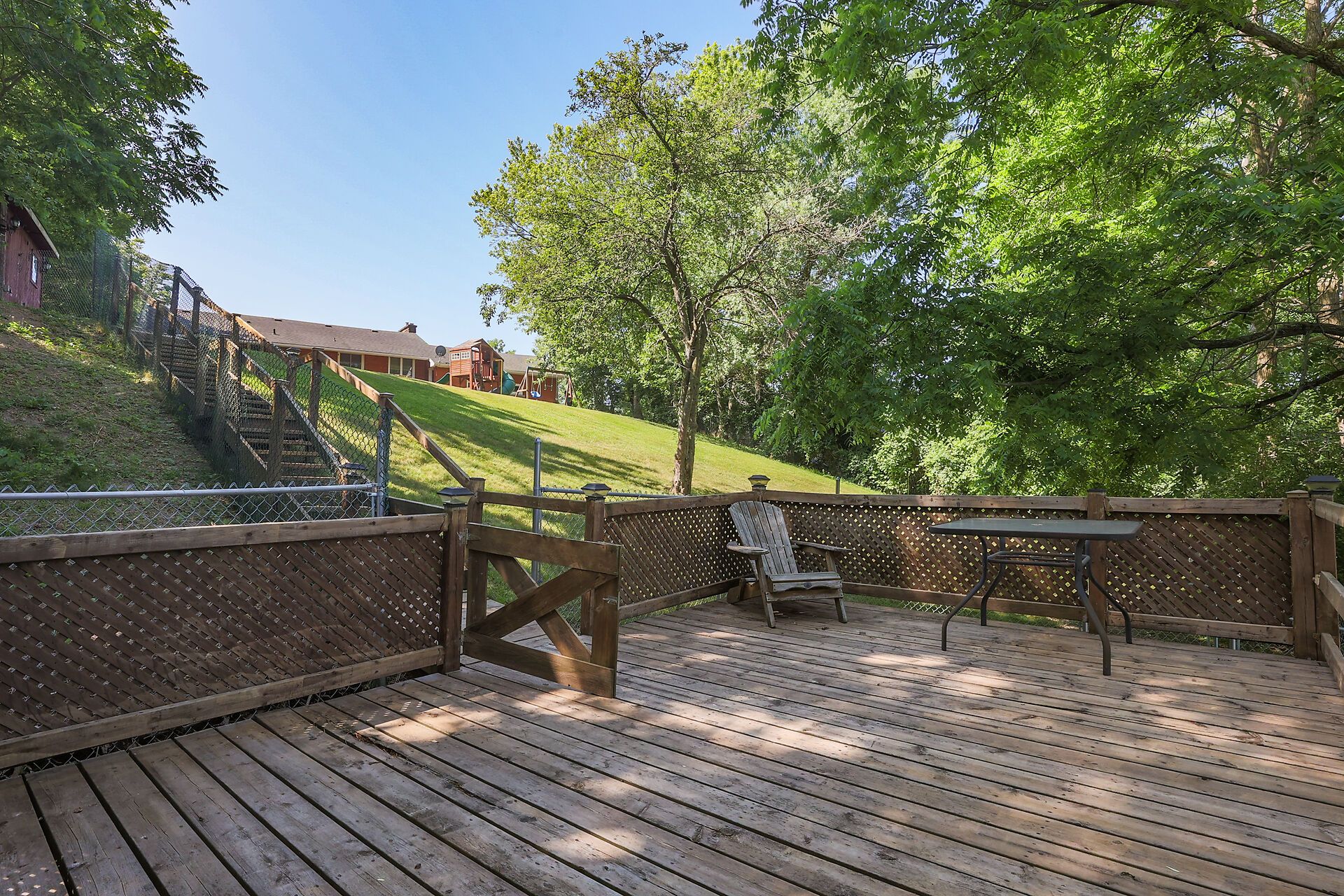 • Multiple decks and fenced river access for family safety and enjoyment.