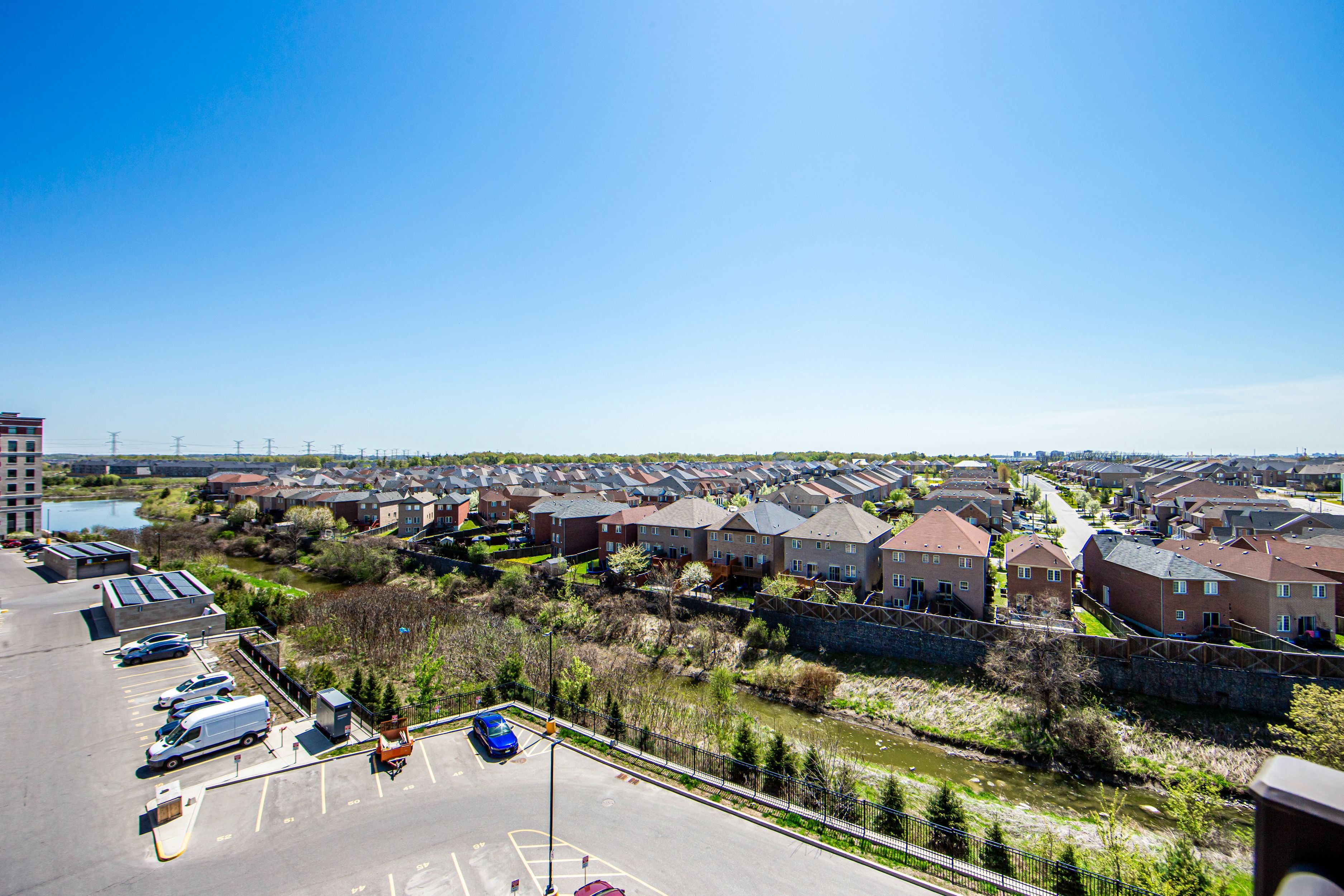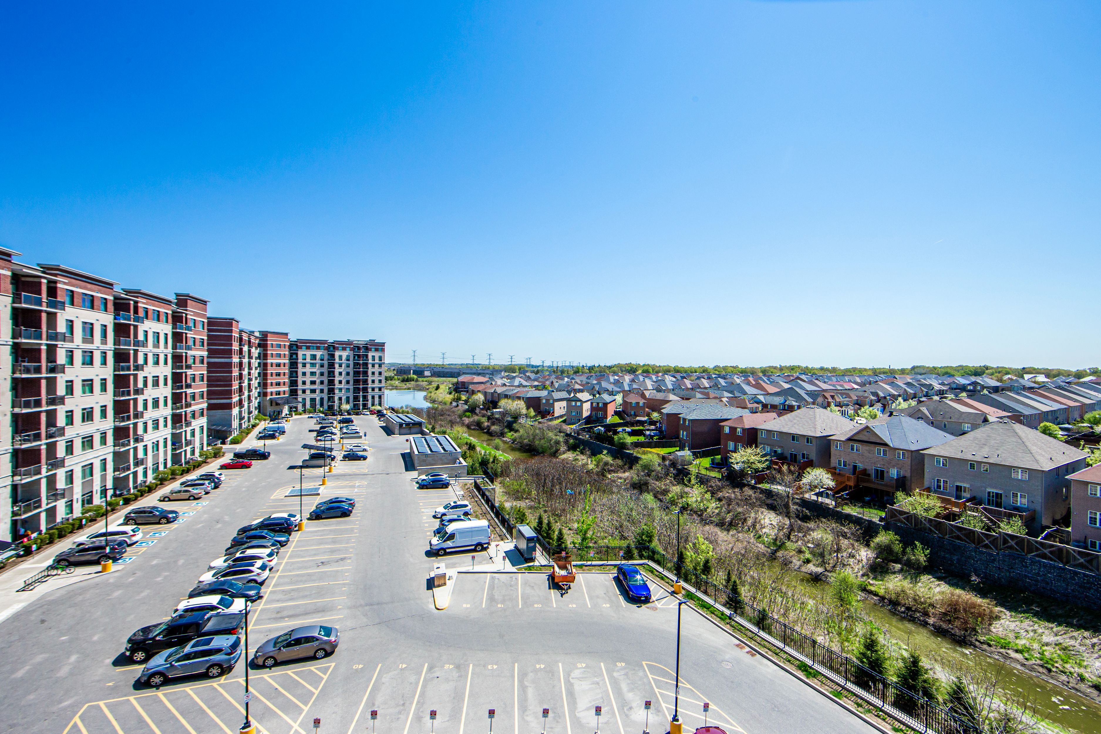 Green life condo eco-friendly living at its best! Low maintenance fees under $300/month! Welcome to this bright and functional 2-bedroom + den suite, featuring 2 full 4-piece bathrooms in a sought-after eco green building. Freshly painted and thoughtfully designed for modern living. Enjoy your private open balcony with serene views of the pond, lush greenery, and water features a perfect place to unwind. Prime location nestled in a highly desirable neighborhood, you're steps away from: costco, no frills, walmart, sunny food mart home depot, rona, canadian tire popular restaurants, major banks, library & community center reputable schools, mosque, and church just minutes to hwy 407 and a short drive to hwy 401this is the ideal home for families, professionals, or investors seeking convenience, comfort, and sustainability.