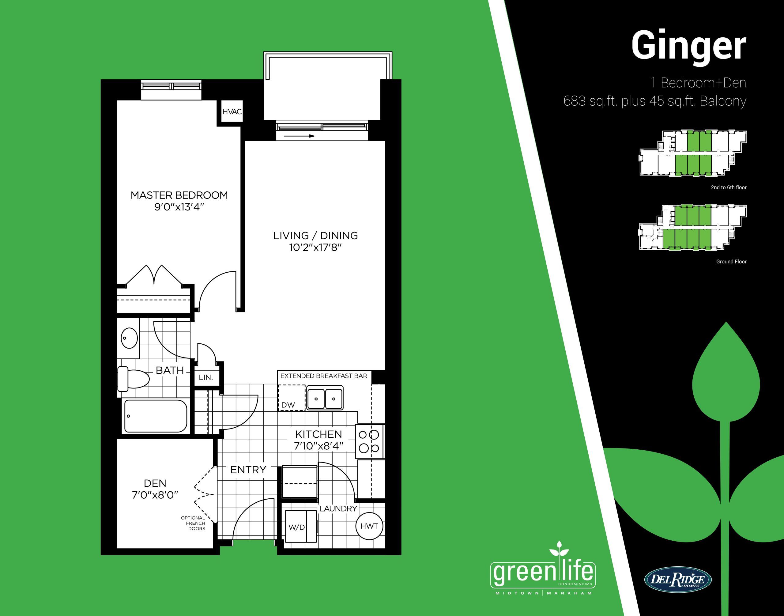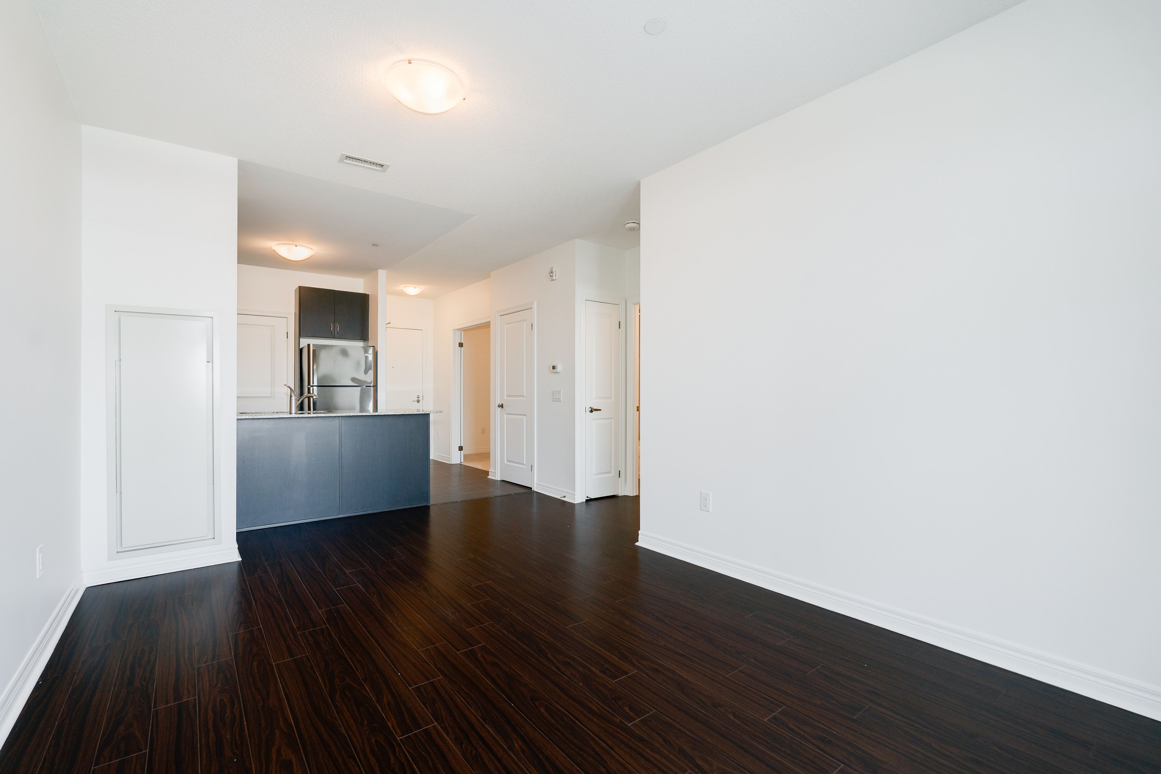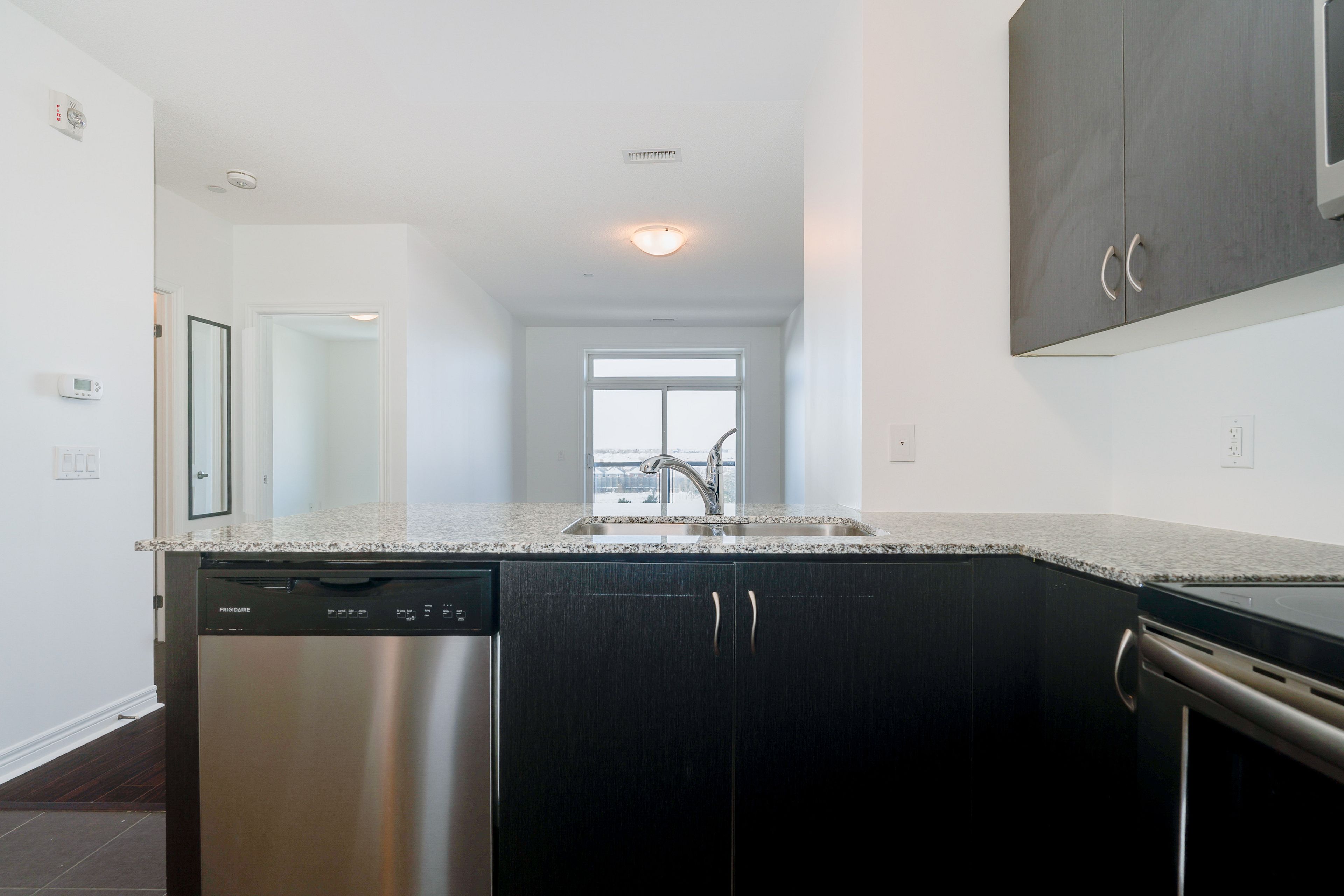 Welcome to your sunset sanctuary in the ginger model at greenlife midtown markham! This bright 1 bedroom + den condo (683 sq. Ft. + 45 sq. Ft. West-facing balcony) delivers effortless modern living with soaring 9 ft ceilings and an unbeatable open flow. Step in and feel the wow: a sleek u-shaped kitchen with extended breakfast bar overlooks the generous living/dining space-ideal for cozy nights in or hosting friends while golden-hour light pours through massive west-facing windows. Freshly painted throughout and professionally cleaned, it's truly move-in ready. Right off the entry, the spacious den is your flexible dream spot: a productive home office by day, nursery or creative retreat by night. The living area flows straight to your private balcony-prime for morning coffee or evening sunsets that paint the sky. Retreat to the roomy primary bedroom with a large closet and that same glorious western light to wake up refreshed. A clean 4-piece bath and oversized laundry/storage closet off the kitchen keep everything practical and tidy. Location? Pure gold-a true walker's paradise with costco, groceries, restaurants, and vibes just steps away, plus peaceful trails around celebration park and fairtree pond for those refreshing escapes. Plus: parking and locker included.