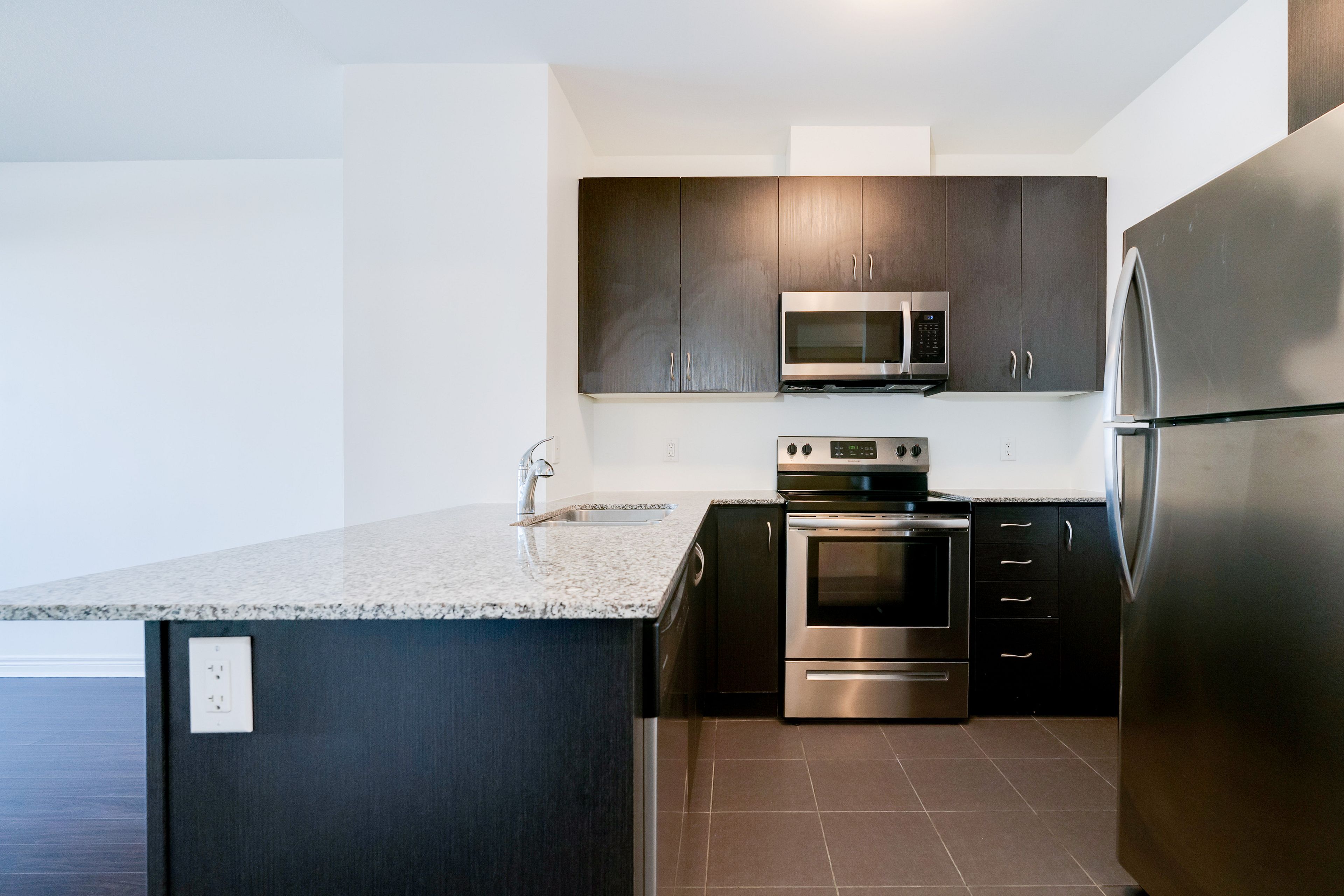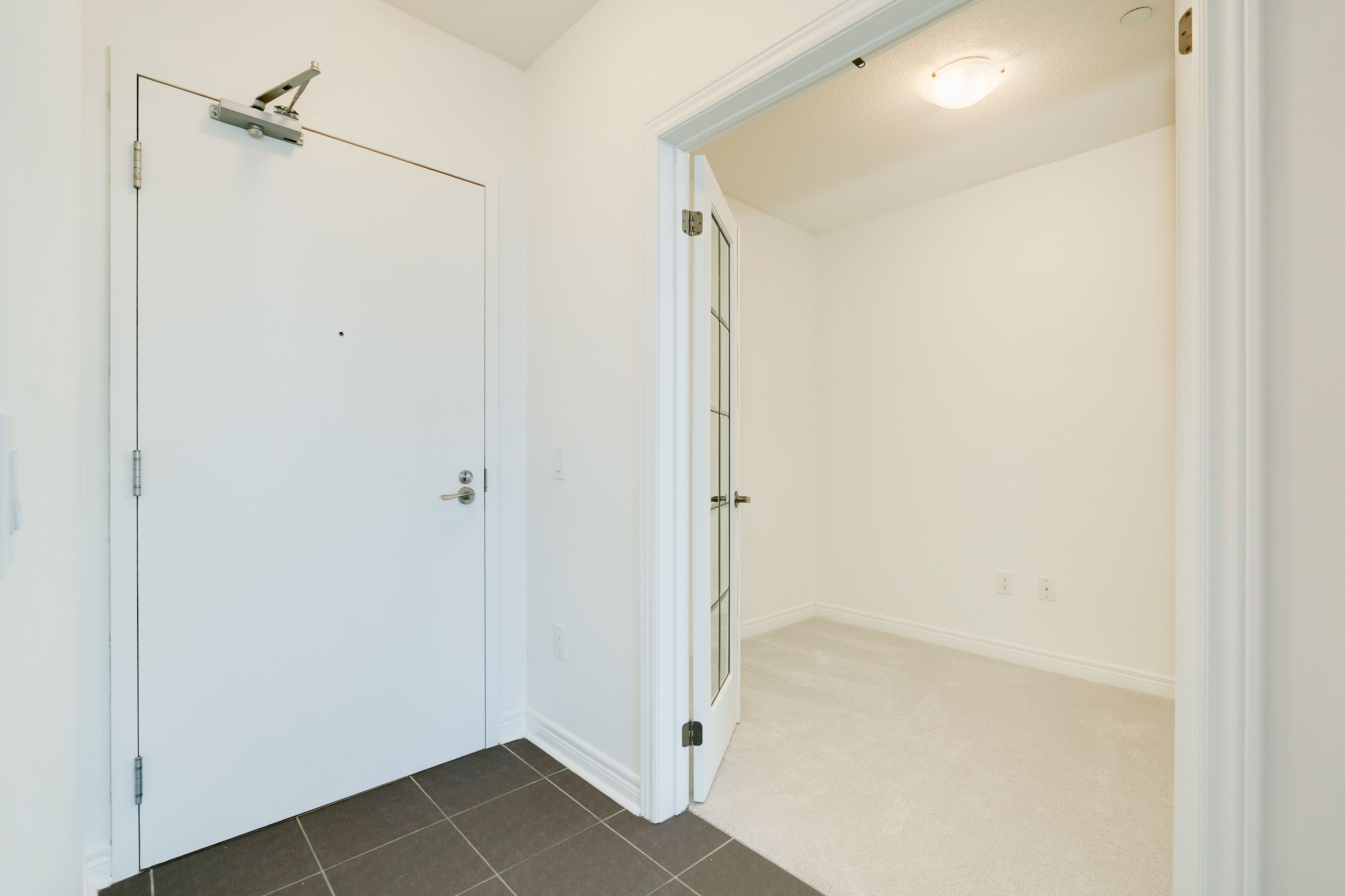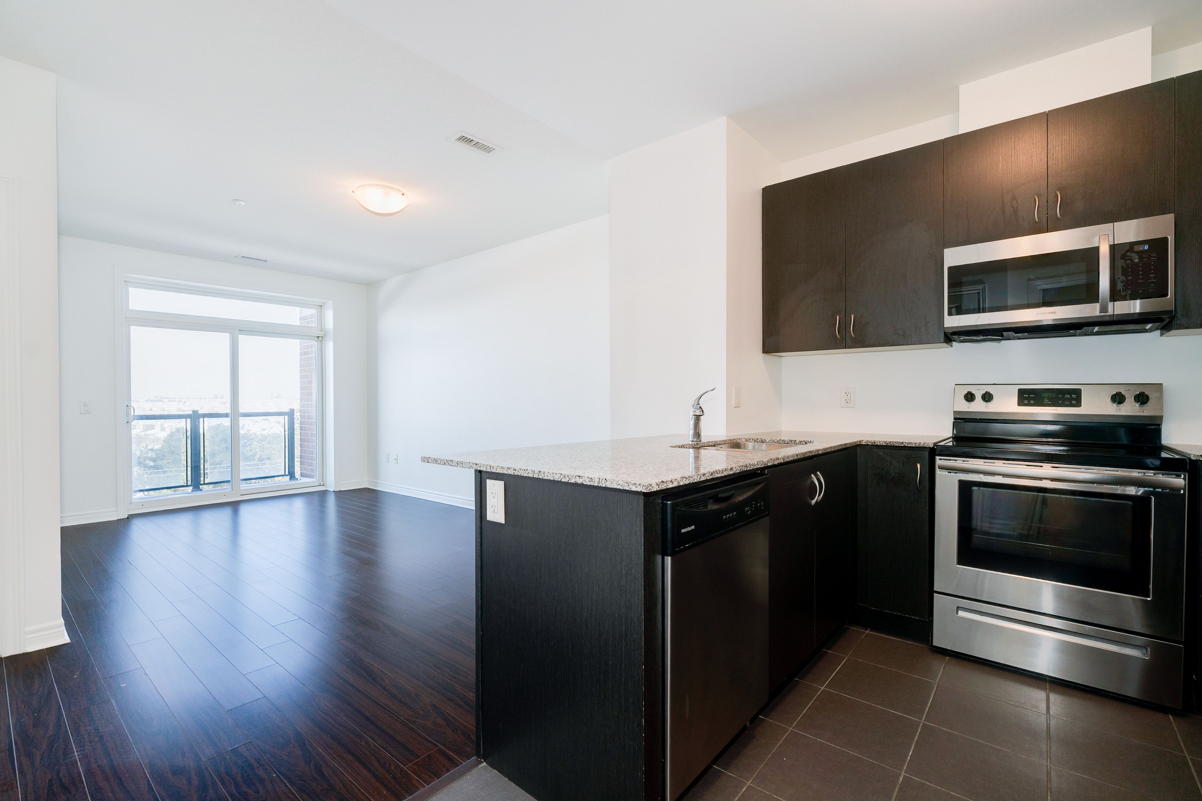 Welcome to your sunset sanctuary in the ginger model at greenlife midtown markham! This bright 1 bedroom + den condo (683 sq. Ft. + 45 sq. Ft. West-facing balcony) delivers effortless modern living with soaring 9 ft ceilings and an unbeatable open flow. Step in and feel the wow: a sleek u-shaped kitchen with extended breakfast bar overlooks the generous living/dining space-ideal for cozy nights in or hosting friends while golden-hour light pours through massive west-facing windows. Freshly painted throughout and professionally cleaned, it's truly move-in ready. Right off the entry, the spacious den is your flexible dream spot: a productive home office by day, nursery or creative retreat by night. The living area flows straight to your private balcony-prime for morning coffee or evening sunsets that paint the sky. Retreat to the roomy primary bedroom with a large closet and that same glorious western light to wake up refreshed. A clean 4-piece bath and oversized laundry/storage closet off the kitchen keep everything practical and tidy. Location? Pure gold-a true walker's paradise with costco, groceries, restaurants, and vibes just steps away, plus peaceful trails around celebration park and fairtree pond for those refreshing escapes. Plus: parking and locker included.