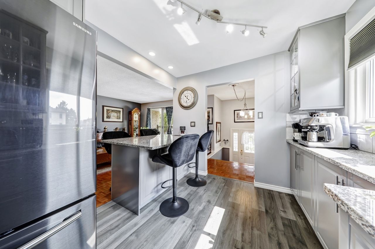 Welcome to this beautifully maintained semi-detached 4l backsplit corner lot in sought-after meadowvale! This spacious home offers a bright and functional layout perfect for families and professionals alike. Featuring a modern eat-in kitchen with granite countertops, pantry and stainless steel appliances. This home combines everyday comfort with timeless finishes. Enjoy indoor-outdoor living with multiple walkouts, a sun-filled living room walkout to balcony, and a cozy family room walkout to a private deck and beautifully landscaped backyard oasis and a basement walkout to driveway. With laminate flooring throughout, the home is both low-maintenance and contemporary. Detailed room dimensions based on third party floor plan.