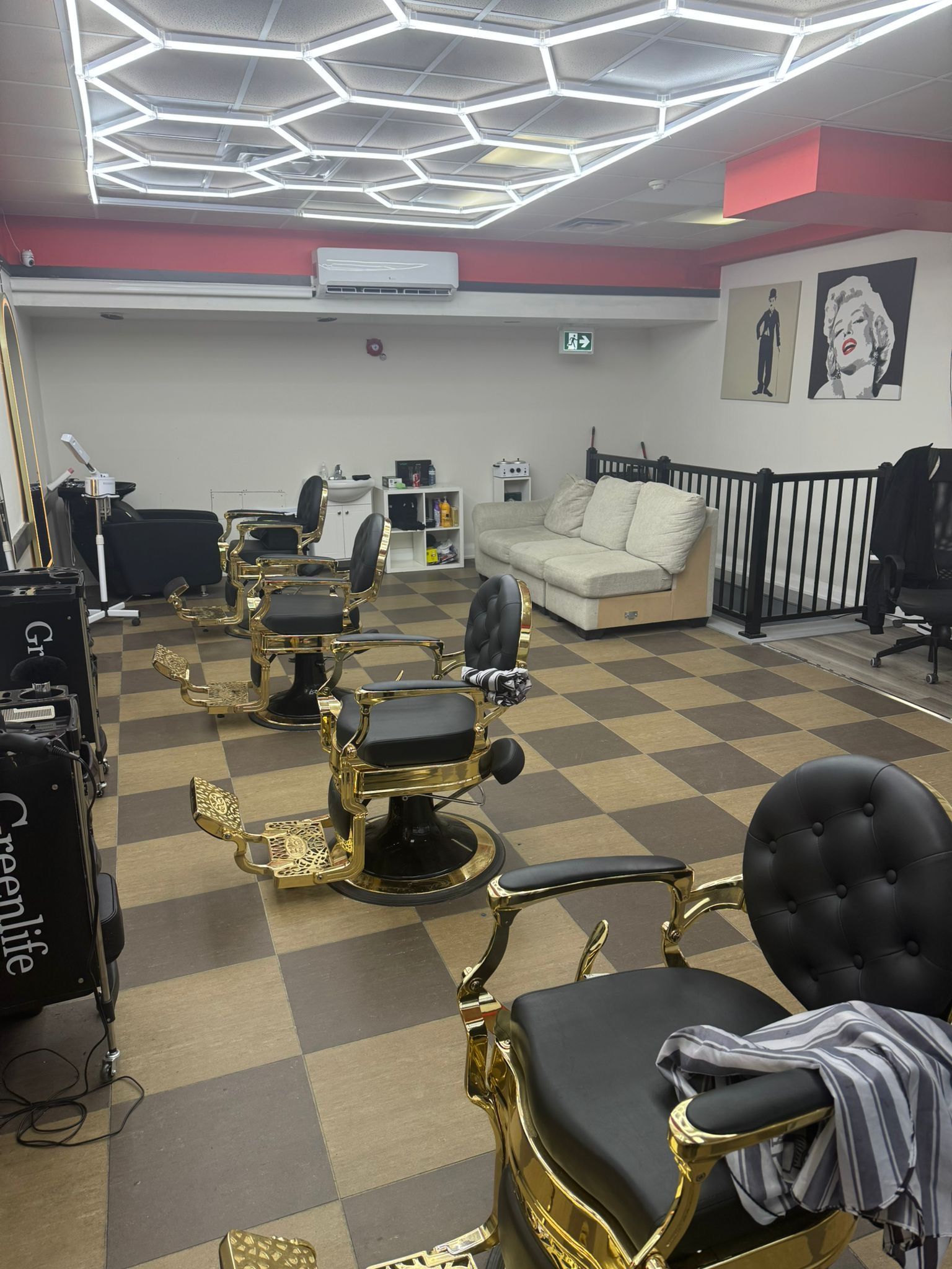 • Turnkey retail space with multiple styling stations and modern layout.