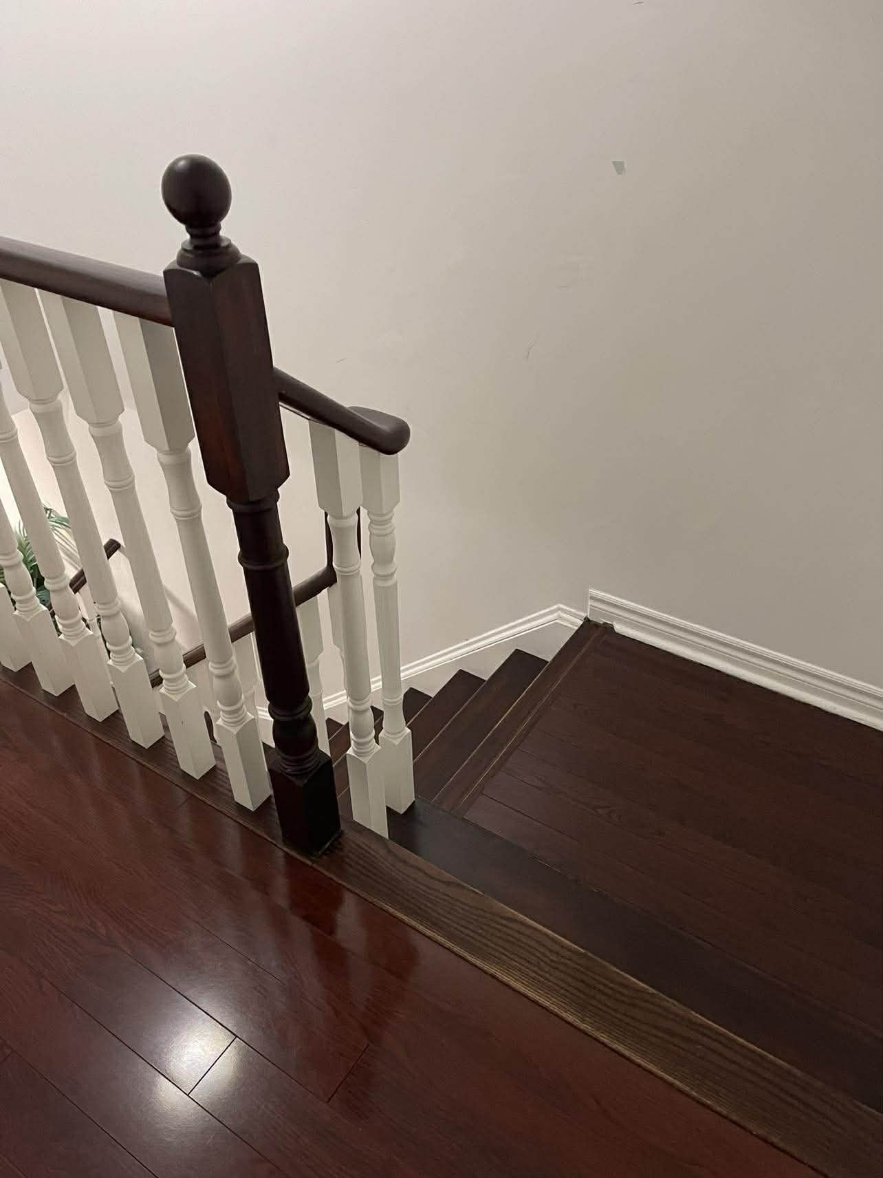• Spacious living area with oak stairs and a large kitchen with granite counters.