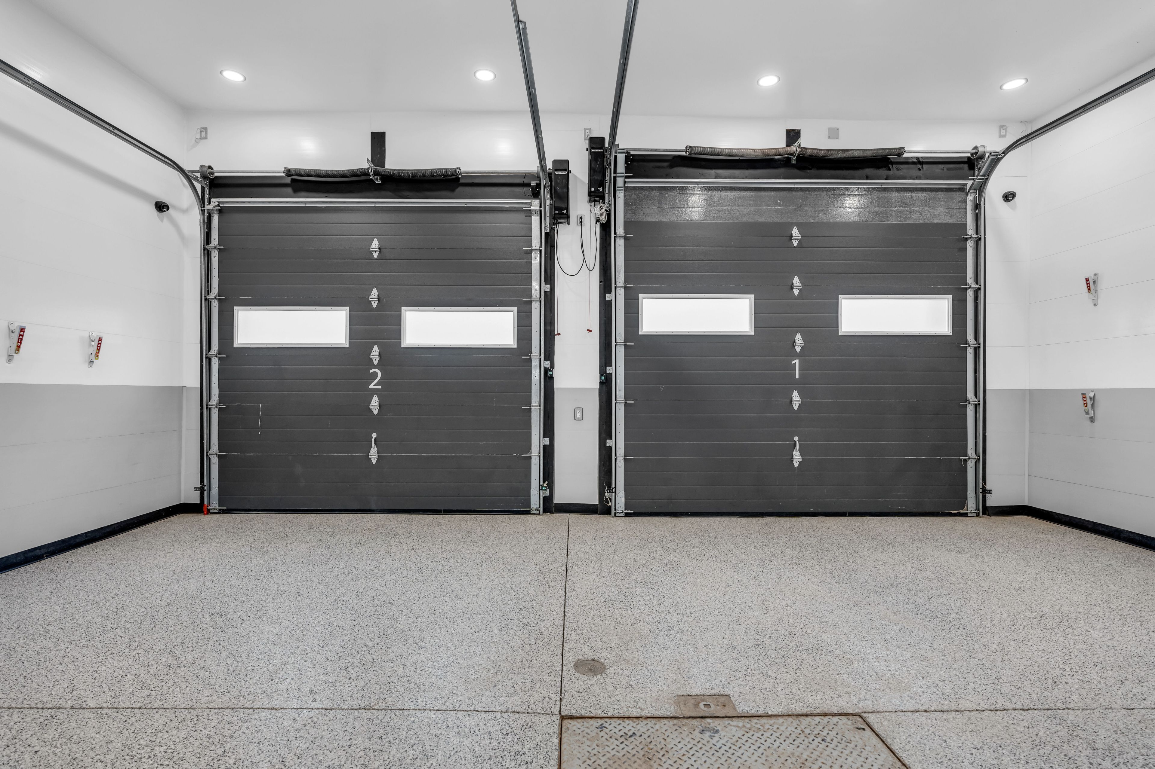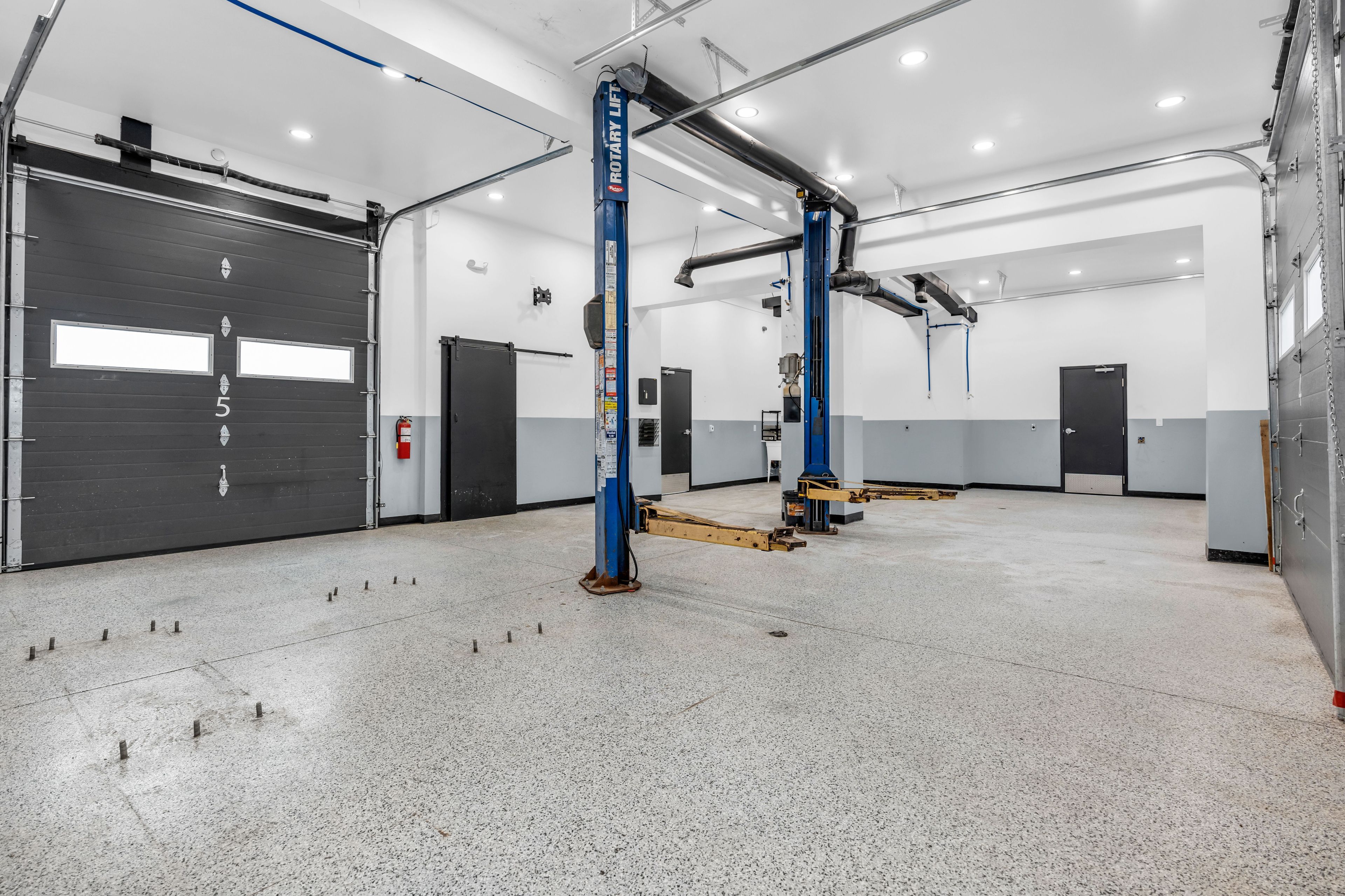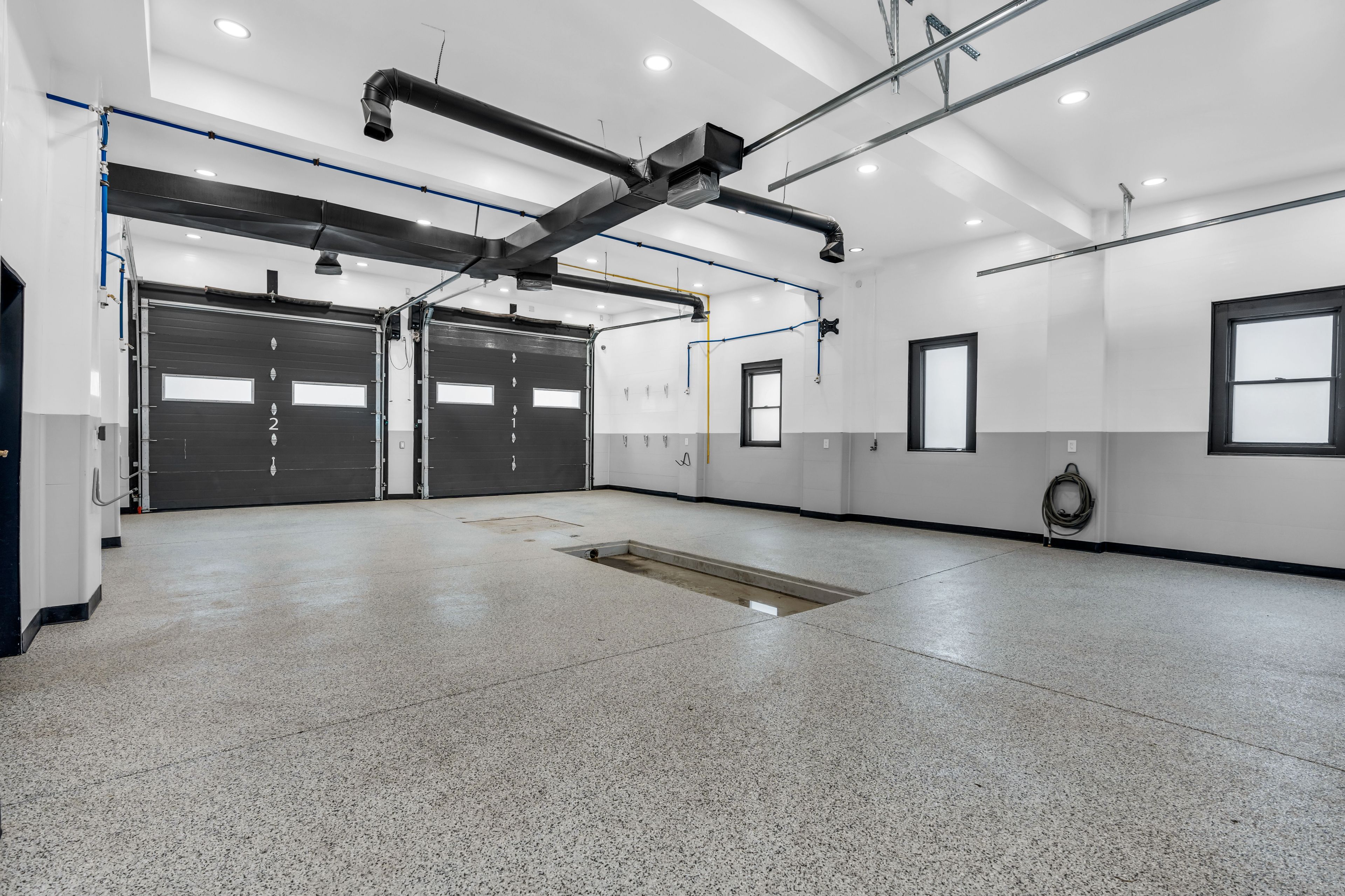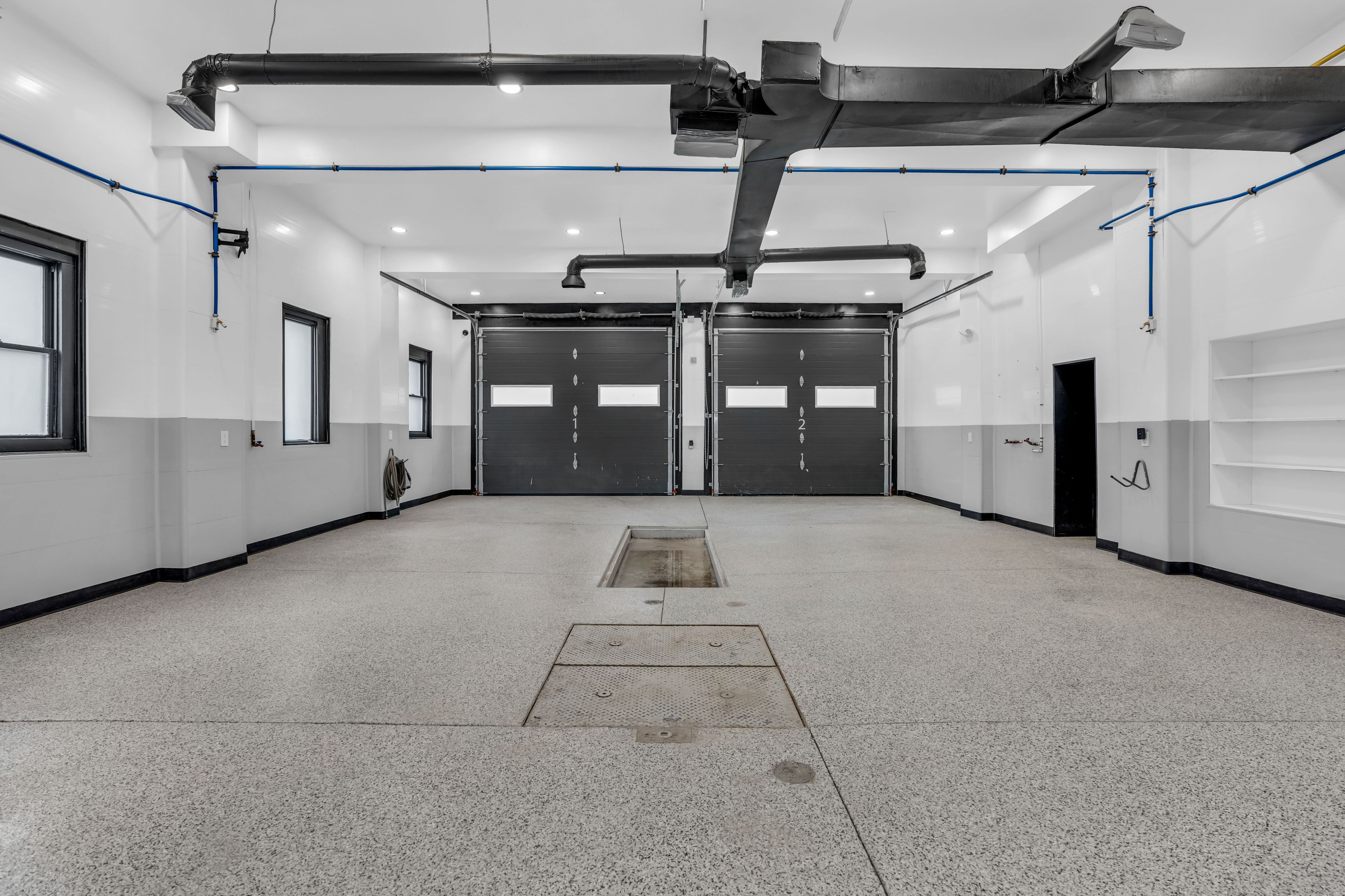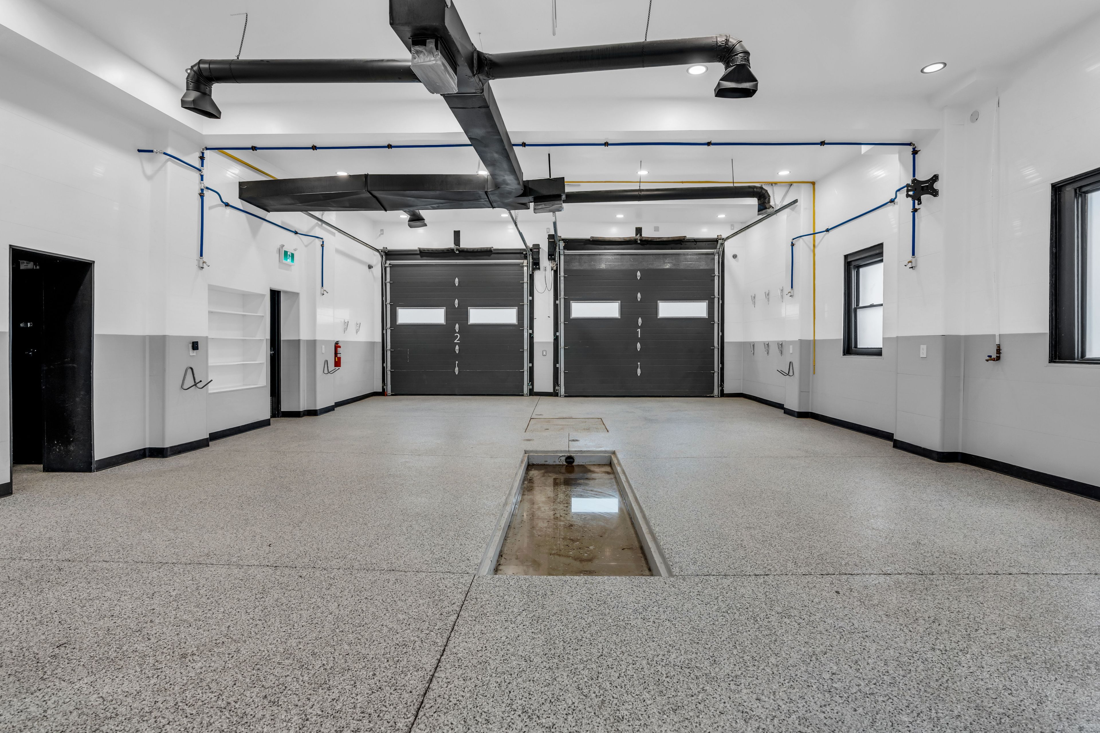 • Eight oversized garage doors, including a convenient drive-through bay.