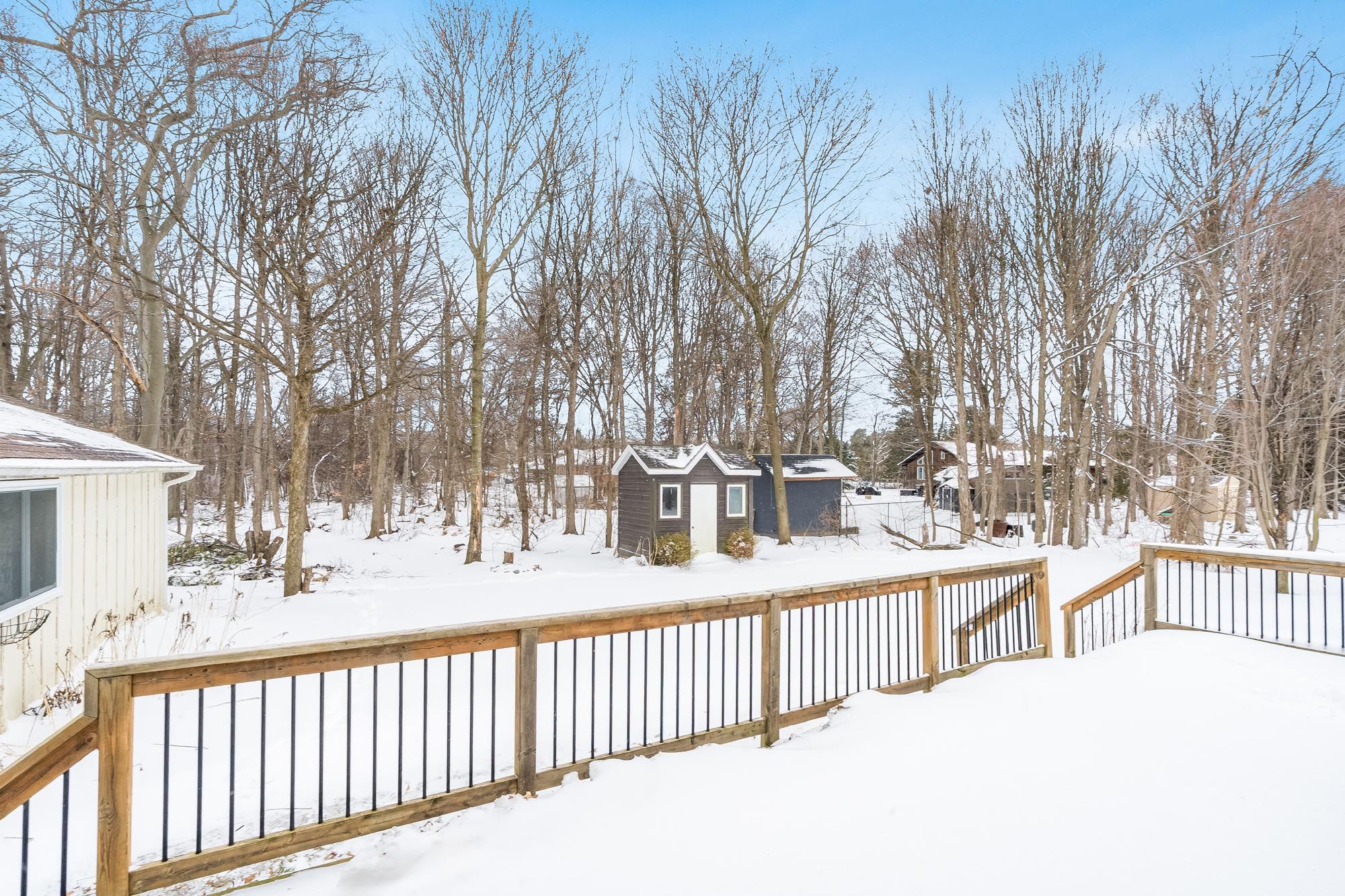 • Backyard features a wooded area for privacy and a peaceful retreat.
