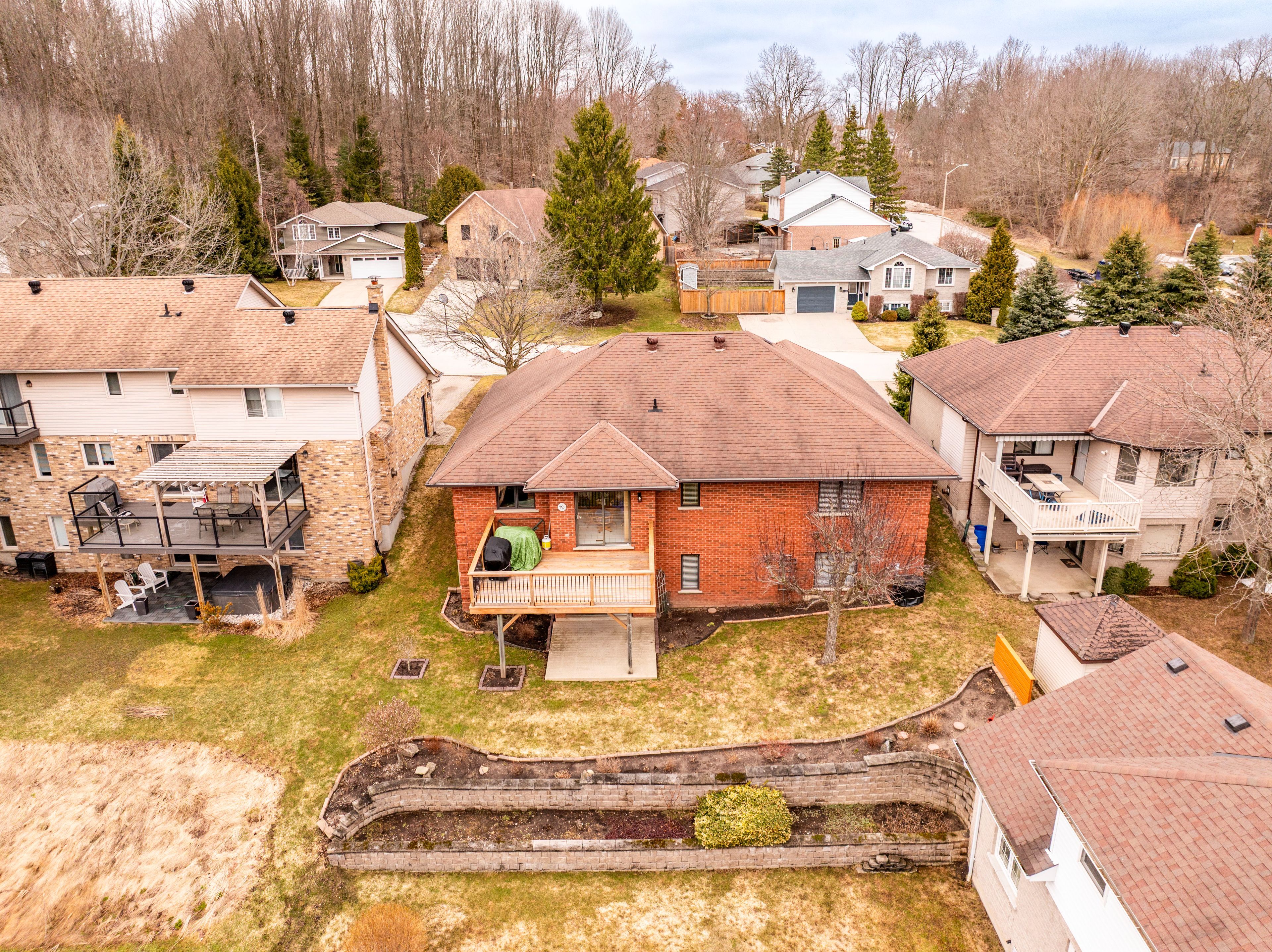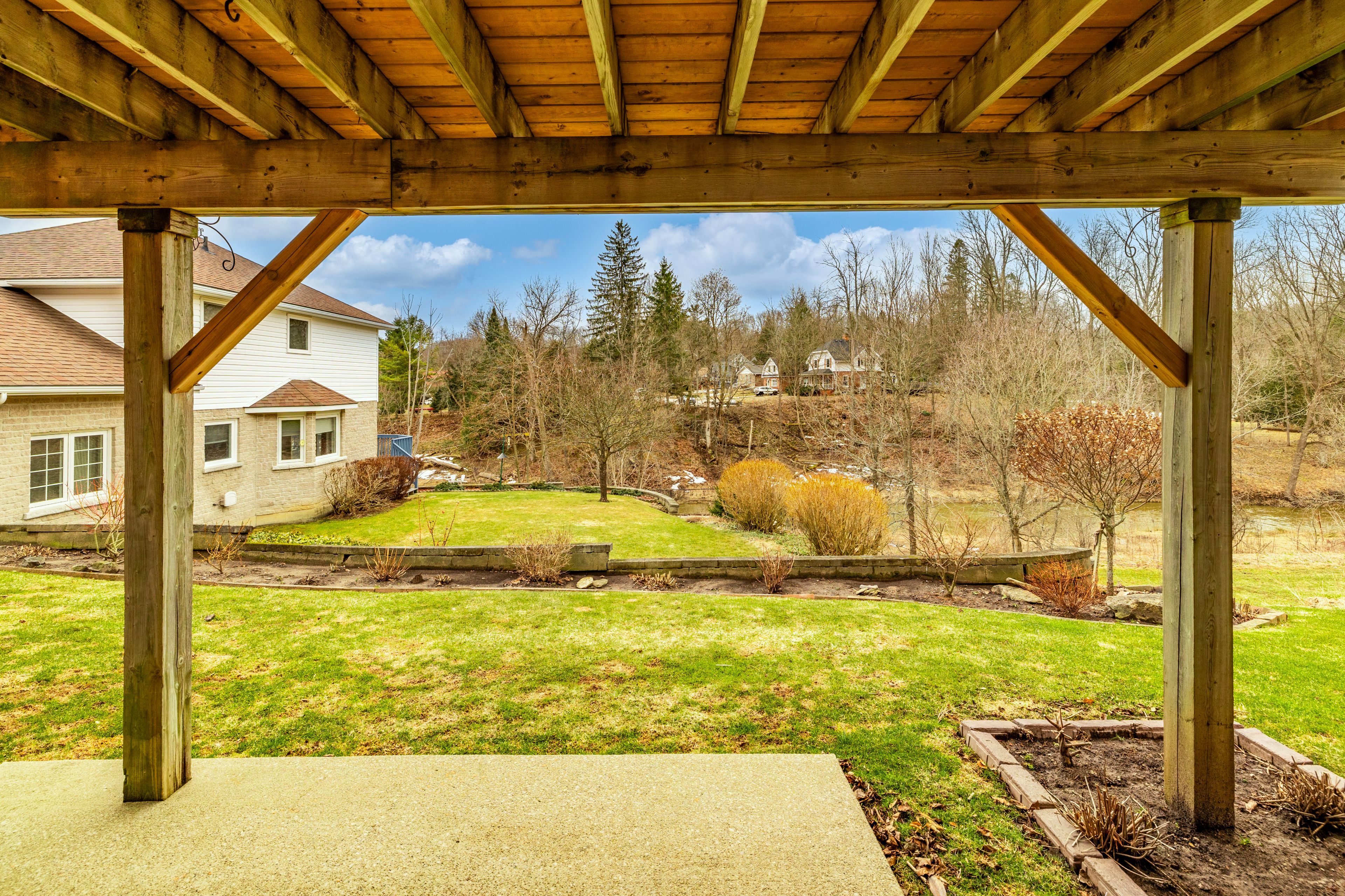Welcome to this exceptional o. C. Long bungalow, tucked away on a private cul-de-sac in the prestigious hunters run neighbourhood, where serene living meets breathtaking views of the potawatomi river. This beautifully maintained home offers a perfect balance of comfort and elegance, with a bright, airy layout designed to impress. Step outside to the 17' x 12' walkout deck-an ideal spot to relax and unwind while taking in the peaceful river backdrop. Inside, the main floor features three spacious bedrooms, including a primary retreat with his-and-hers closets and ensuite privileges, along with the convenience of main floor laundry and two full bathrooms. The home offers both a separate living and dining room, enhanced by charming custom stained-glass accents, while the sun-filled eat-in kitchen is a true standout with quartz countertops and newer stainless steel appliances-perfect for everyday living and entertaining alike. The fully finished lower level provides exceptional additional living space, highlighted by an oversized family room with a cozy gas fireplace featuring elegant wiarton marble. Walk out to a poured concrete patio surrounded by beautifully landscaped perennial gardens, all framed by those stunning river views. A versatile office space-currently used as a non-conforming fourth bedroom-adds flexibility for growing families or guests. With a timeless all-brick exterior, hardwood flooring throughout, and an interlocking brick double driveway leading to a two-car garage, this home offers both style and practicality. Ample storage ensures everything has its place. A rare opportunity to own a peaceful retreat in one of the area's most sought-after communities-this is a home you won't want to miss.