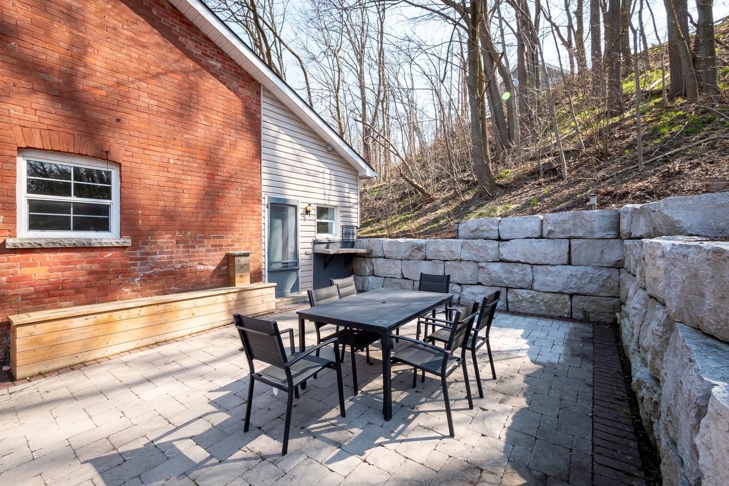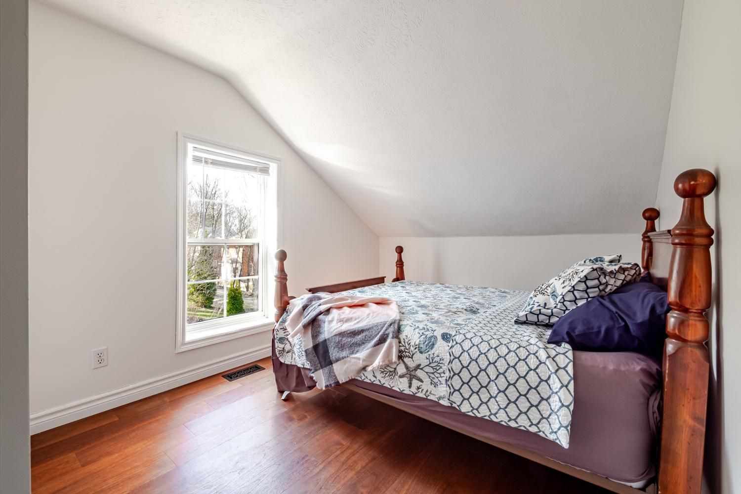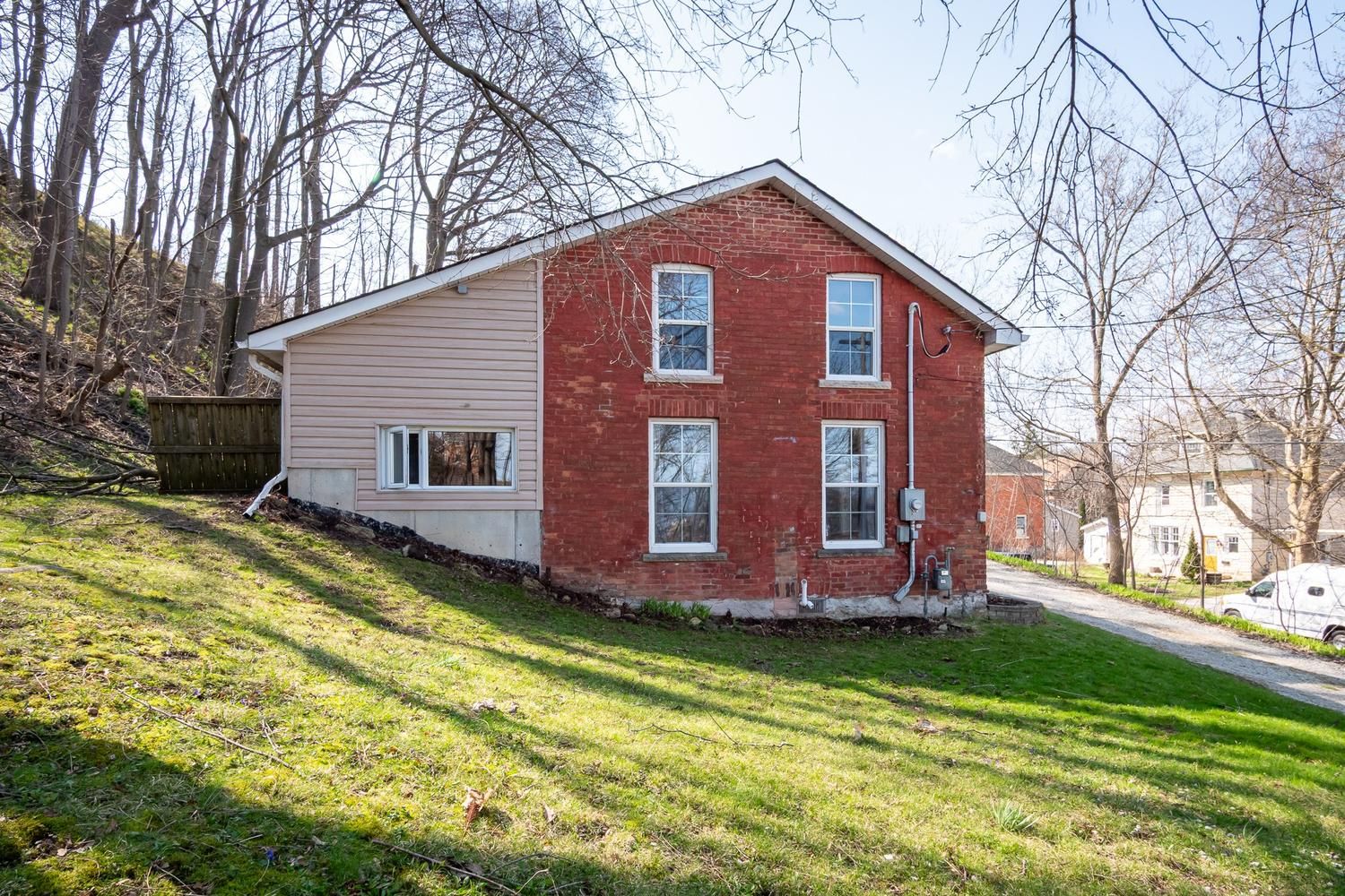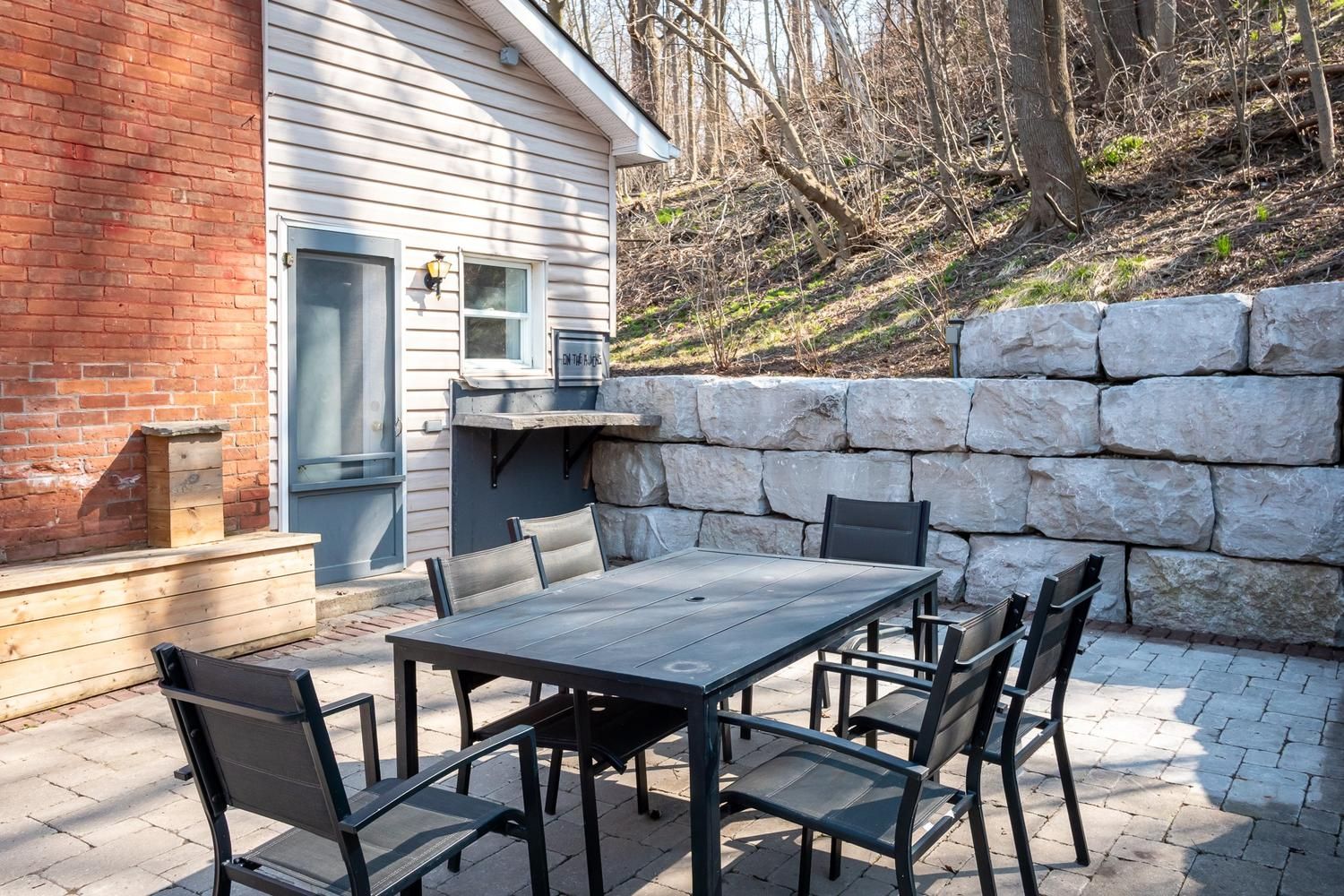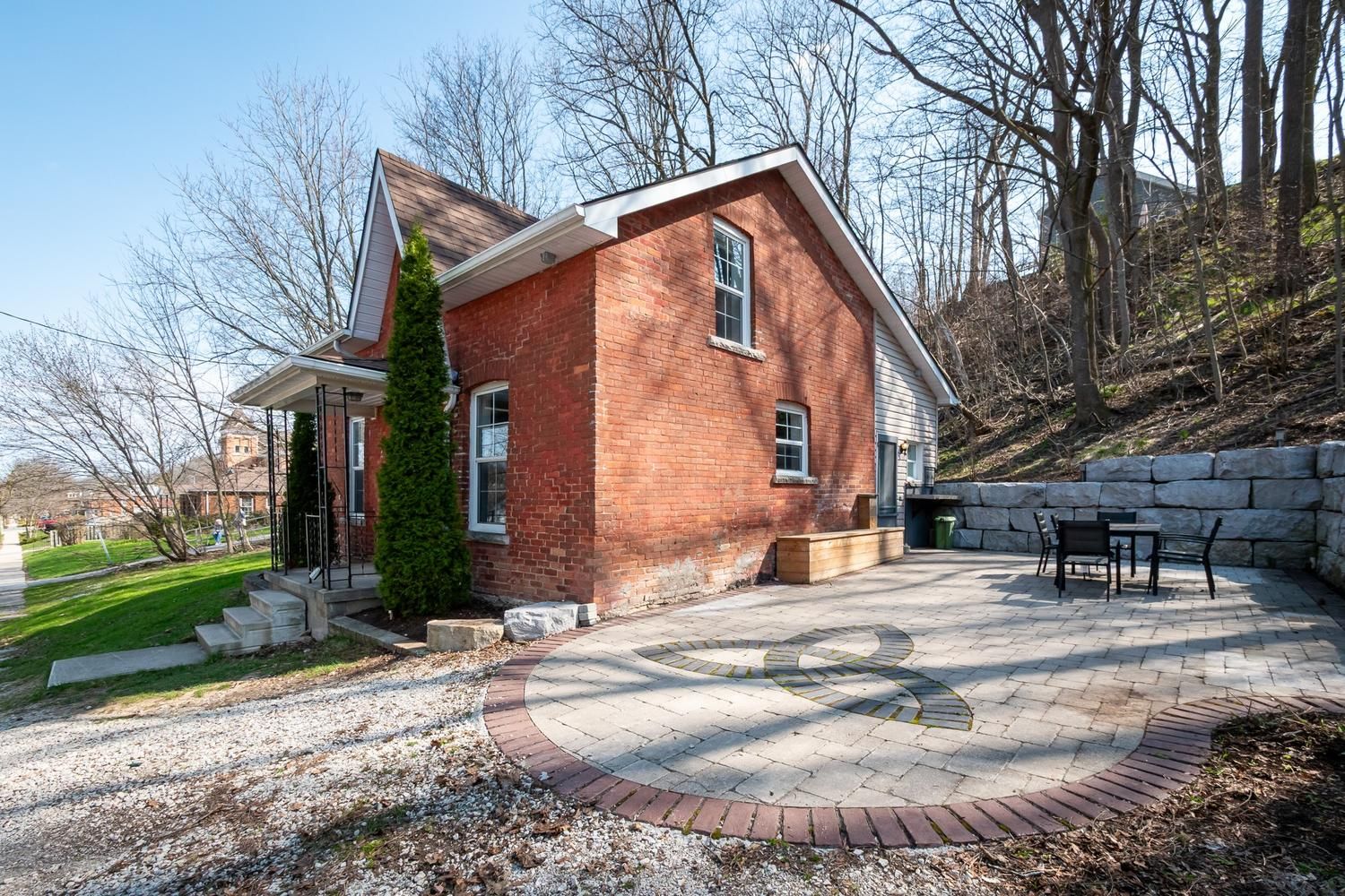 This 1. 5-storey brick residence is a woodland escape on an elevated lot in a quiet downtown residential neighborhood. The interior features a recent renovation with hardwood flooring installed throughout all living areas. The main floor offers a functional layout that connects the living spaces to the updated finishes. Large windows provide significant natural light across both levels of the home. The exterior includes a secluded stone patio bordered by a retaining wall. This outdoor space provides a private area for seating and dining. The property is located on a street characterized by slow traffic and turn of the century family homes. Local amenities, downtown services, harrison park and the mill damn are within walking distance of the front door. Recent improvements include: new hardwood and marble flooring including stairs, new interior lighting, smart thermostat, cat internet cables in most rooms to optimize working from home, hardwired security system, exterior brick repointing, spray foam in basement.