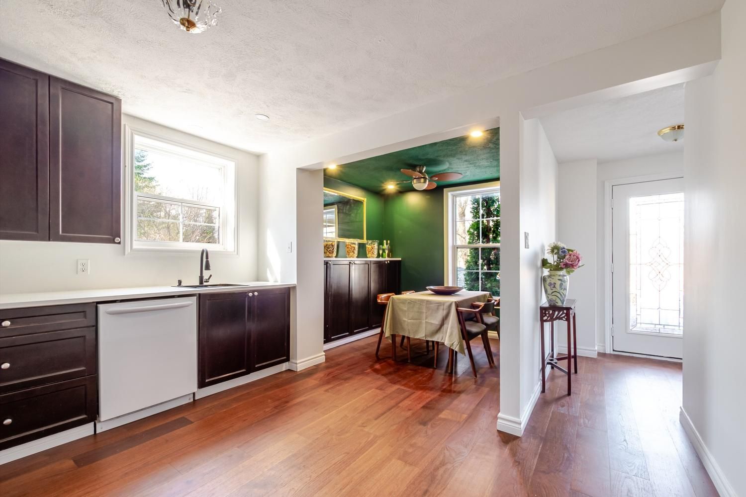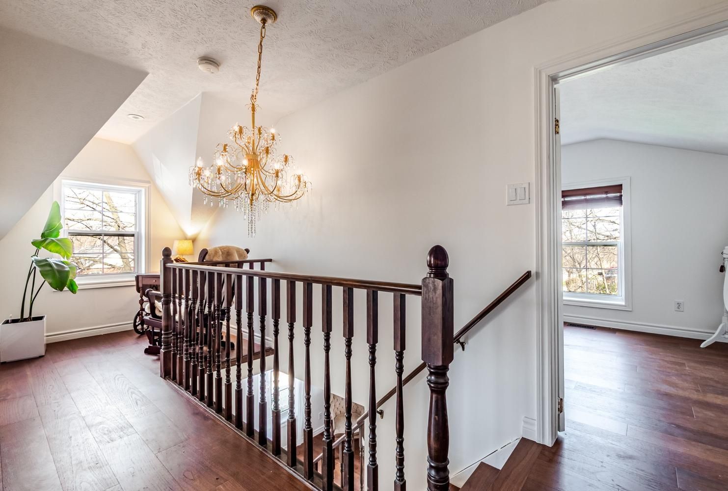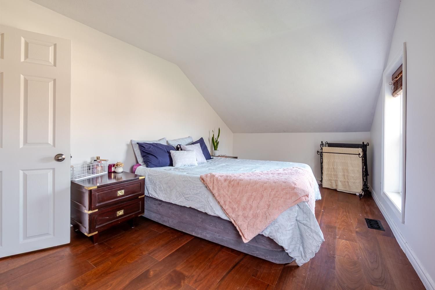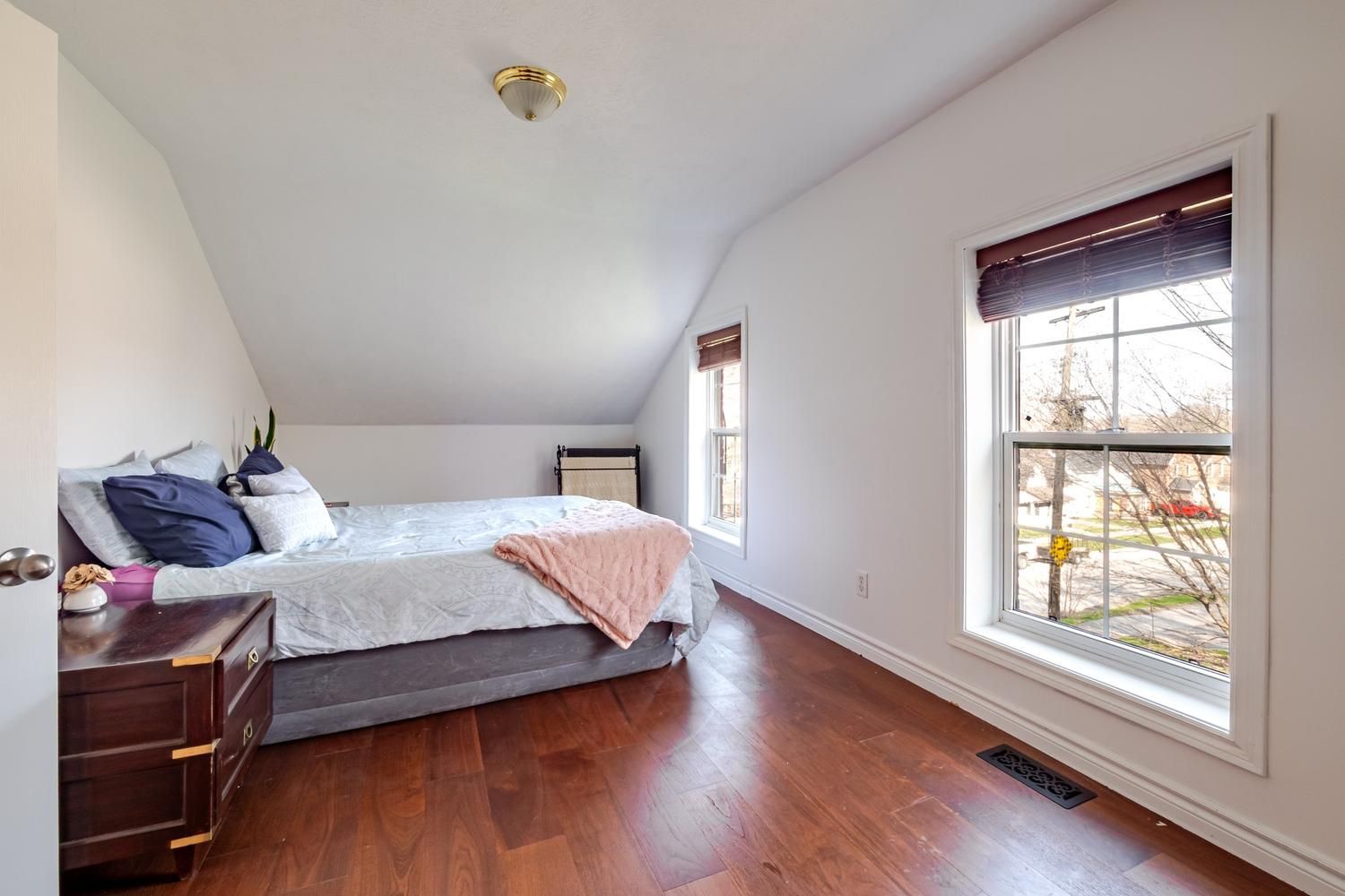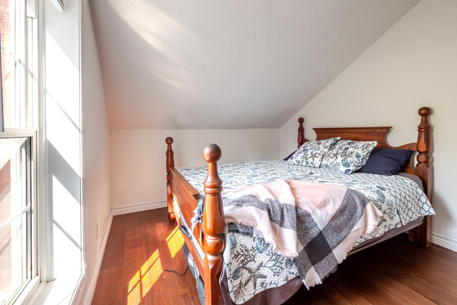This 1. 5-storey brick residence is a woodland escape on an elevated lot in a quiet downtown residential neighborhood. The interior features a recent renovation with hardwood flooring installed throughout all living areas. The main floor offers a functional layout that connects the living spaces to the updated finishes. Large windows provide significant natural light across both levels of the home. The exterior includes a secluded stone patio bordered by a retaining wall. This outdoor space provides a private area for seating and dining. The property is located on a street characterized by slow traffic and turn of the century family homes. Local amenities, downtown services, harrison park and the mill damn are within walking distance of the front door. Recent improvements include: new hardwood and marble flooring including stairs, new interior lighting, smart thermostat, cat internet cables in most rooms to optimize working from home, hardwired security system, exterior brick repointing, spray foam in basement.