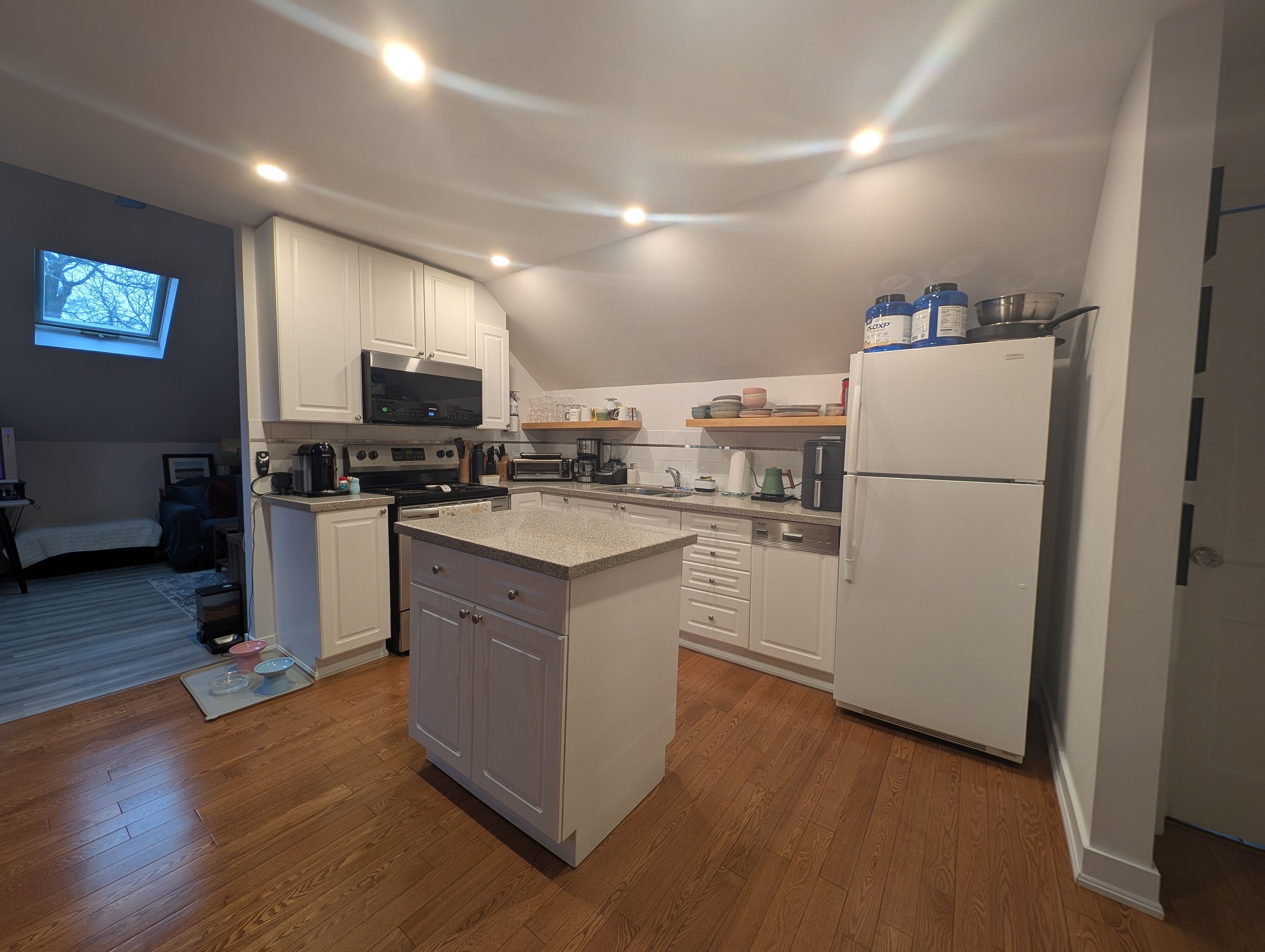 Gorgeous 3rd floor "loft" style apartment in brick stoned forest hill duplex. New a/c wall unit in primary suite, 1 parking spot. Situated in the lush tree-lined neighbourhood just steps from parks, top rated schools, ttc, and everyday essentials. Over 900 square feet of totally renovated space. Space is adorned with expansive ceiling height, two skylights, hardwood floors, and pot lights throughout. Kitchen with centre island and quartz counters. Massive primary bedroom with walk-out to private deck perfect for a morning coffee. Stunning bathroom with oversize seamless glass shower and stacked washer & dryer.