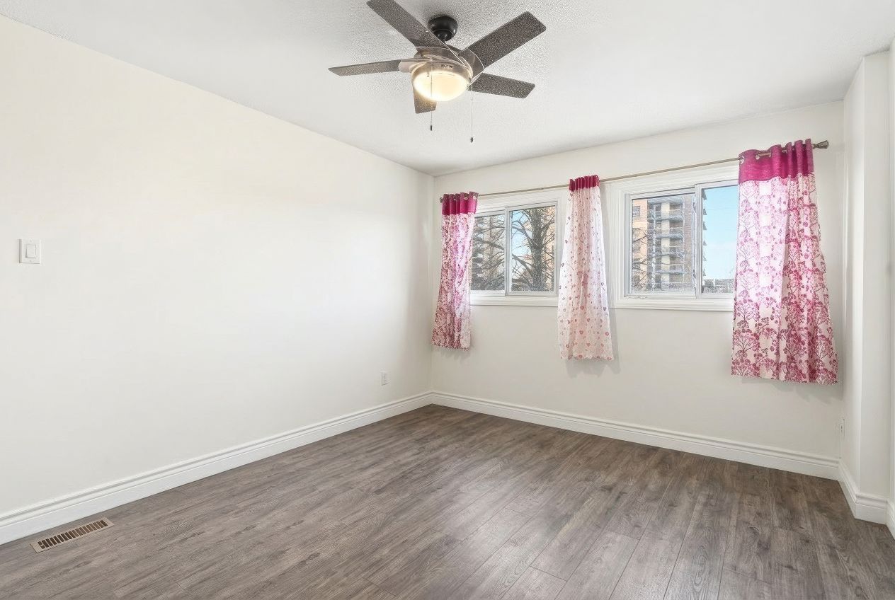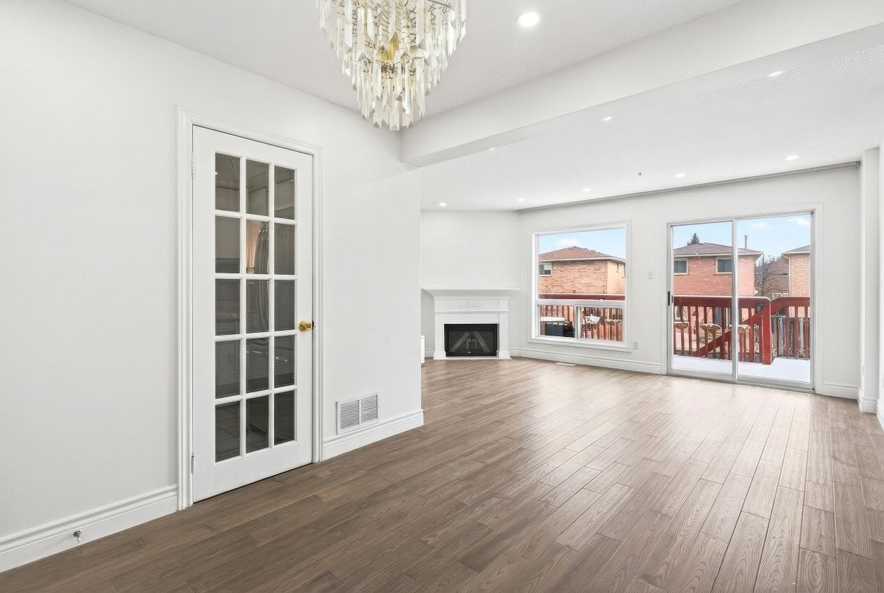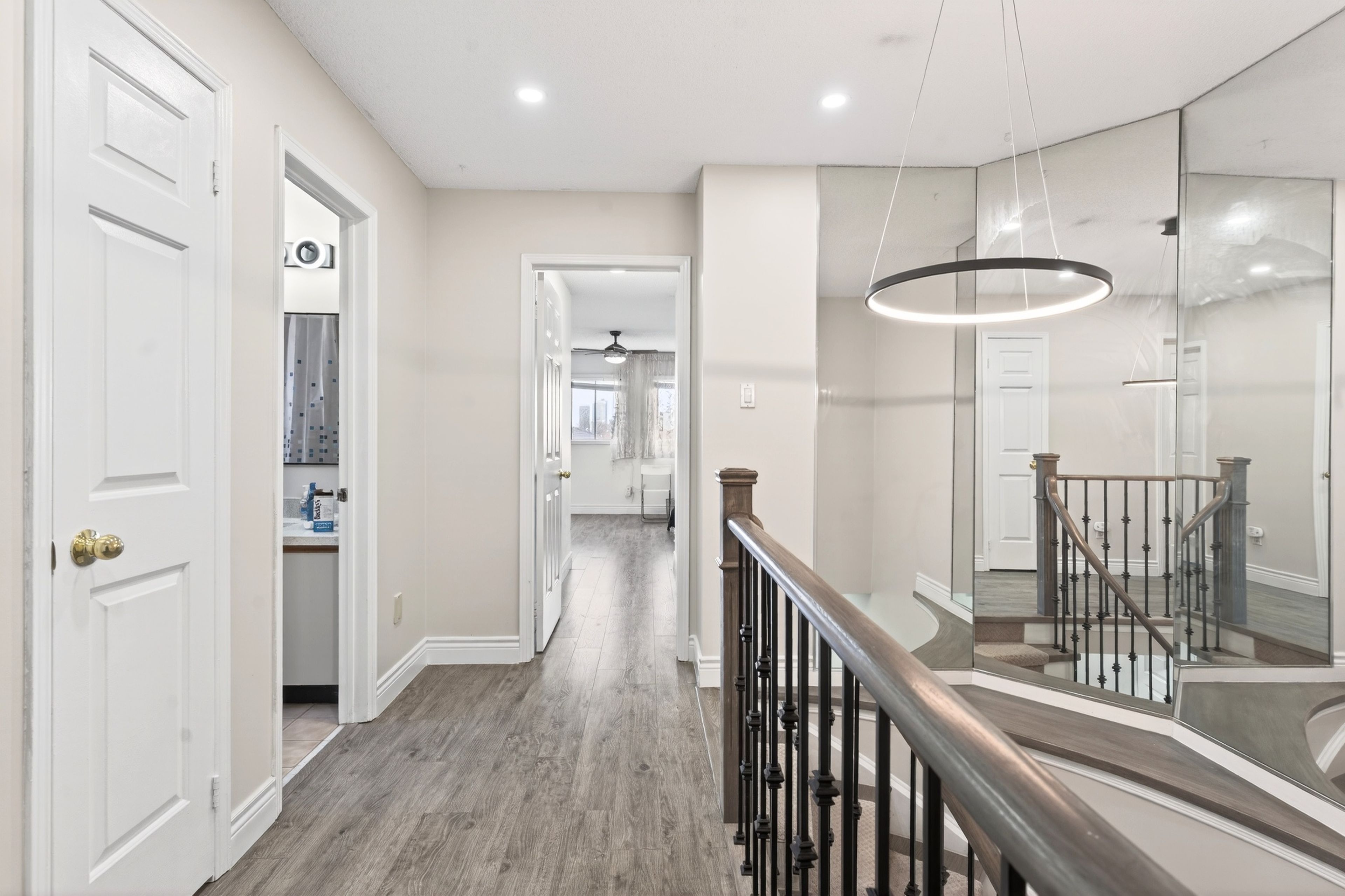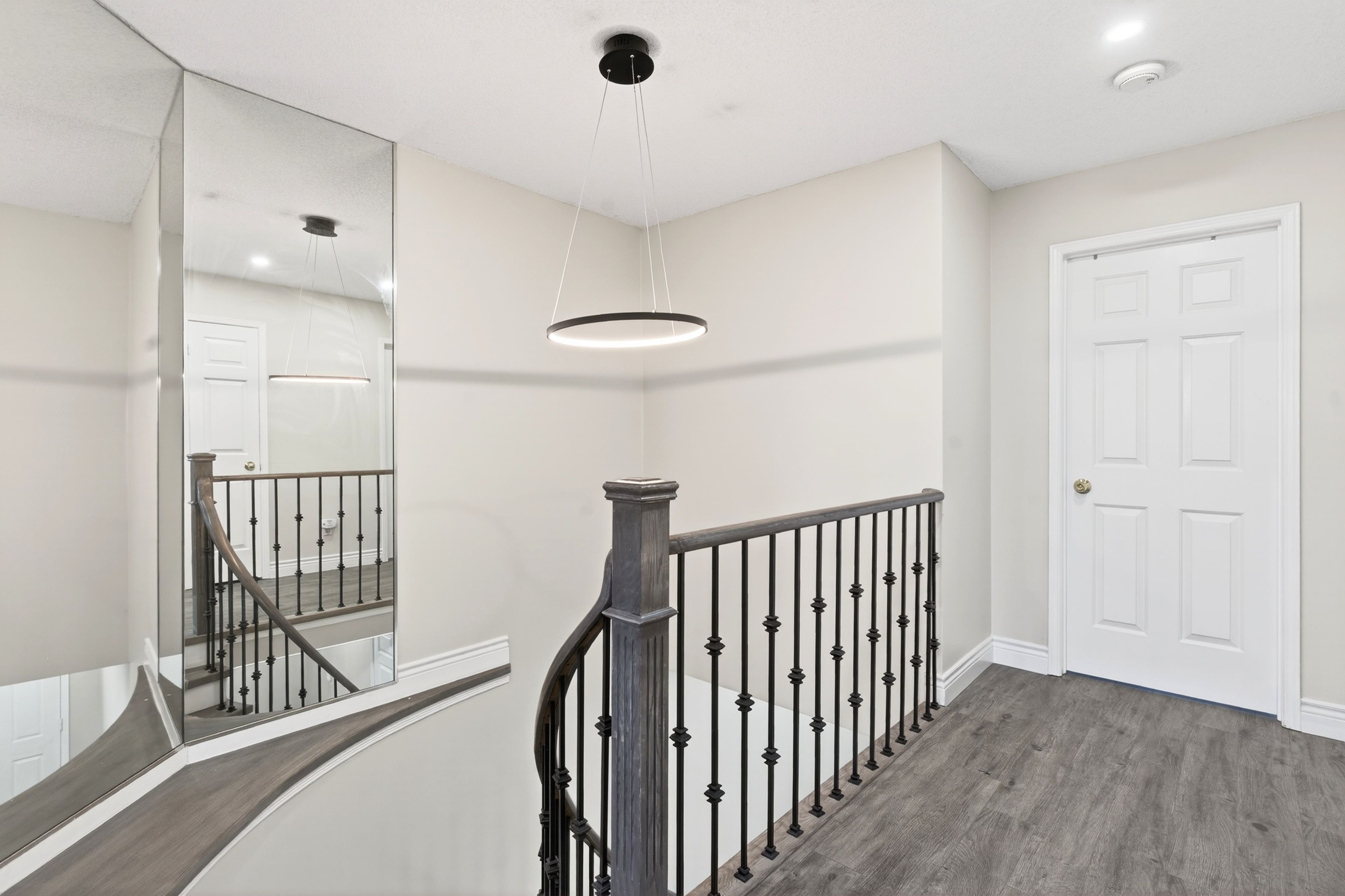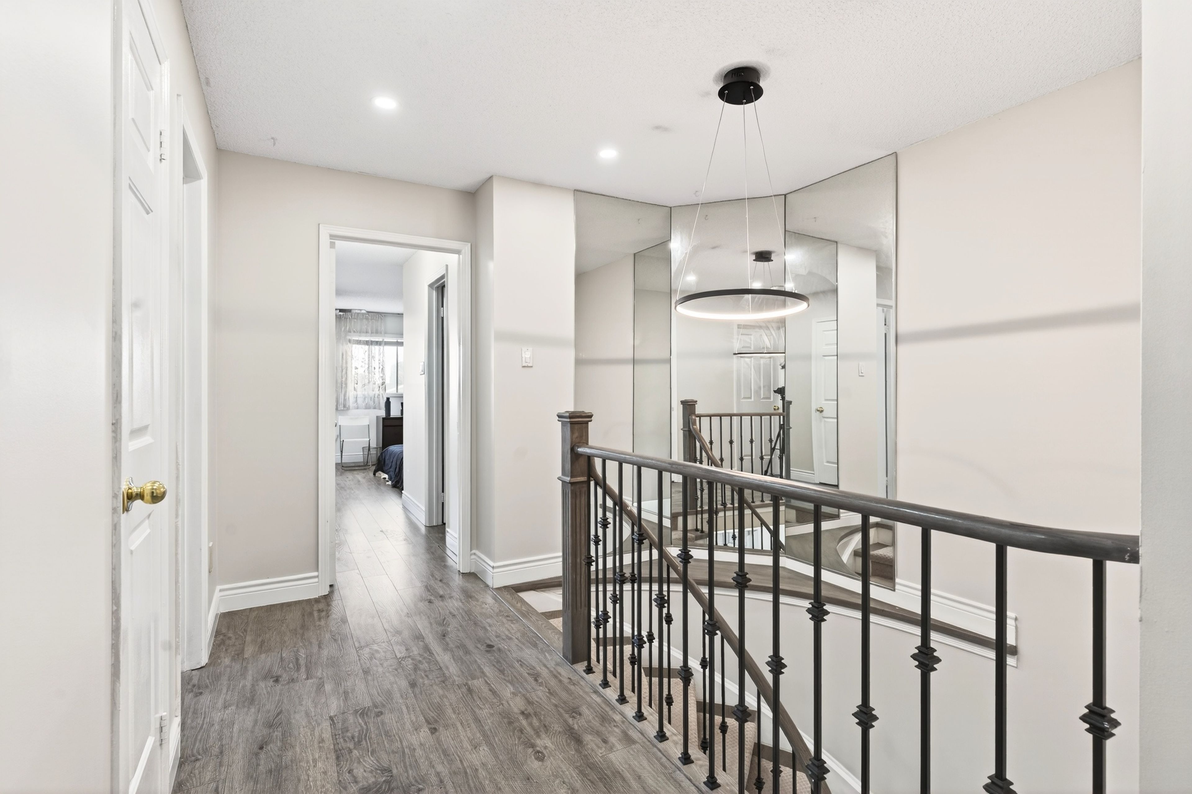Magnificent executive townhouse featuring 3+1 bedrooms and 4 washrooms, loaded with upgrades and designed for modern living. Bright open-concept layout with hardwood floors, pot lights, elegant iron pickets, and a cozy fireplace. Stunning family-sized kitchen with quartz counters and french doors leading to a huge custom deck-perfect for entering. Large driveway with no sidewalk fits two cars, plus a charming porch enclosure. Finished walkout basement with separate entrance offers excellent potential for extended family or added living space. Thousands spent on upgrades including freshly painted interiors, three fully renovated bathrooms, new stoves, and a/c (approx. 1. 5 years). Prime location with easy access to highway 401 & 403 and all shopping and amenities. Move-in ready!