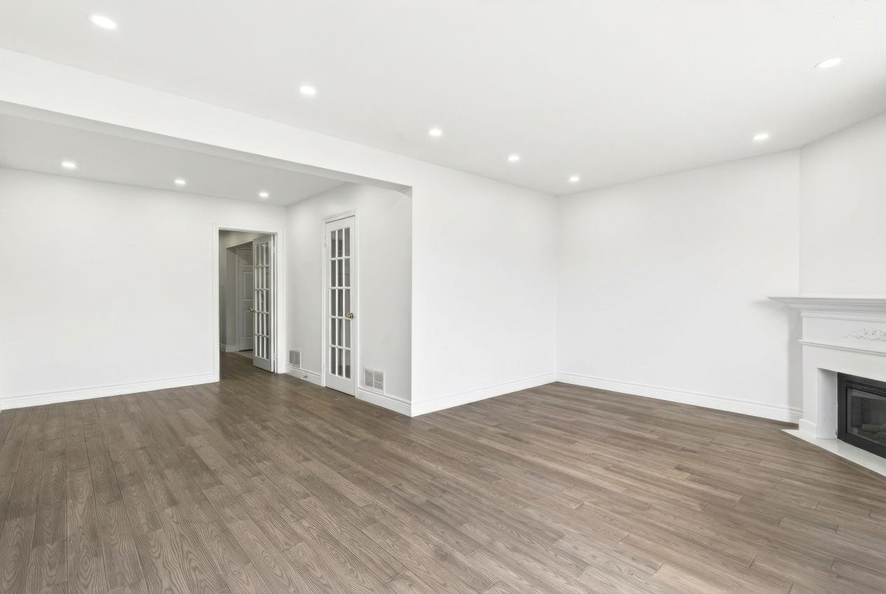 • Bright open-concept layout with hardwood floors and a cozy fireplace.
