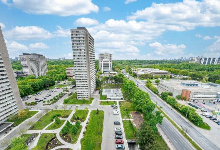 Bright & spacious corner unit in prime location! Rarely available 2-bedroom corner unit offered with parking, water & hydro included in rent & offering just under 1000sq ft of living space. This sun-filled suite features wall-to-wall windows with stunning views, creating a bright and inviting atmosphere throughout. Located in a recently upgraded building, this unit is perfect for families or professionals seeking comfort and convenience at an excellent value. Enjo a highly desirable location just a 2-minute walk to schools, and only minutes from shopping, parks, and medical facilities. Ttc access is available 24 hours right at your doorstep. Residents have access to a wide range of amenities including an indoor swimming pool, fully equipped gym, recreation room, party room, sauna, media room, and park. Includes parking. A fantastic opportunity to lease a large, well-located unit at an affordable price!