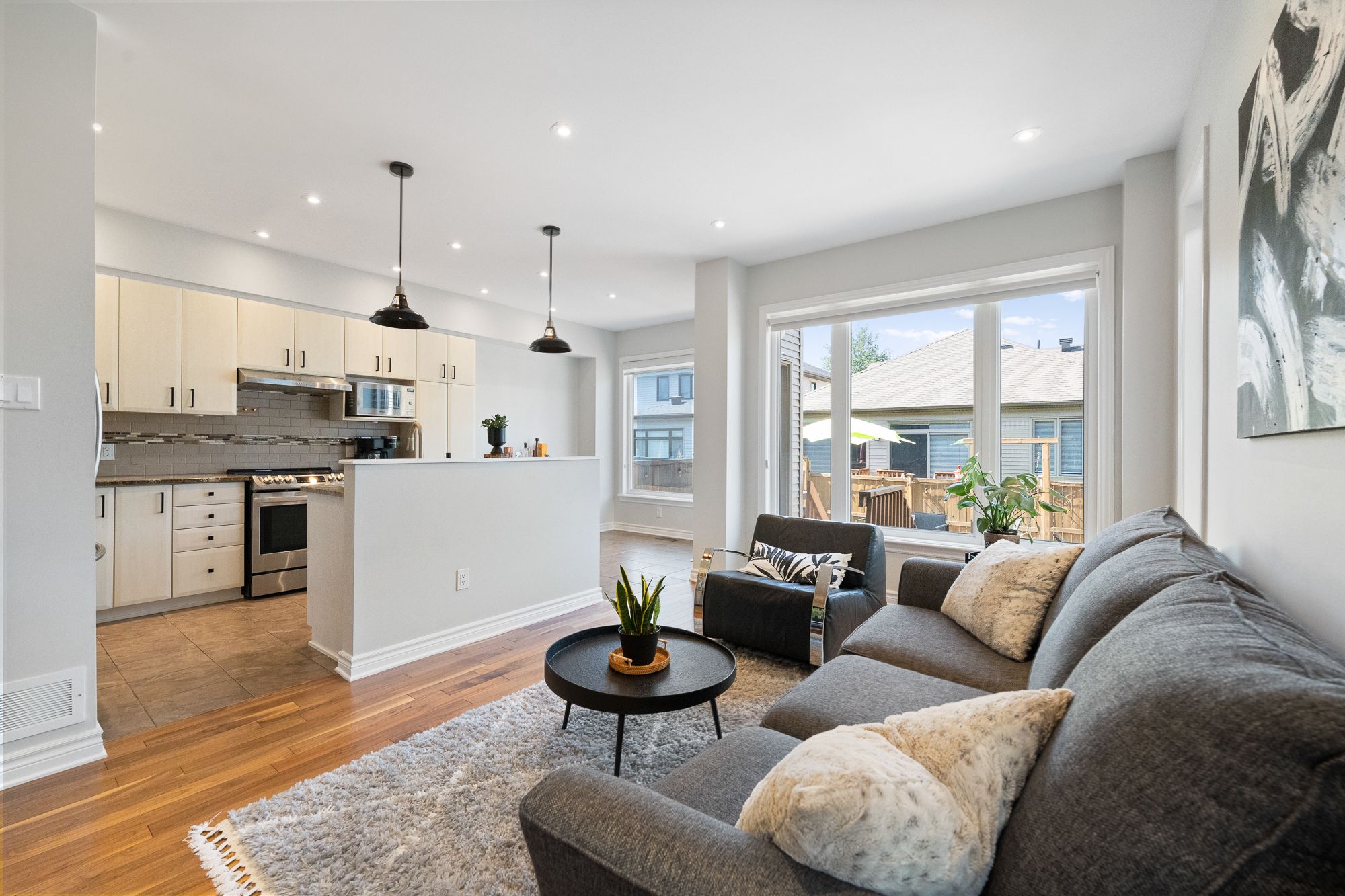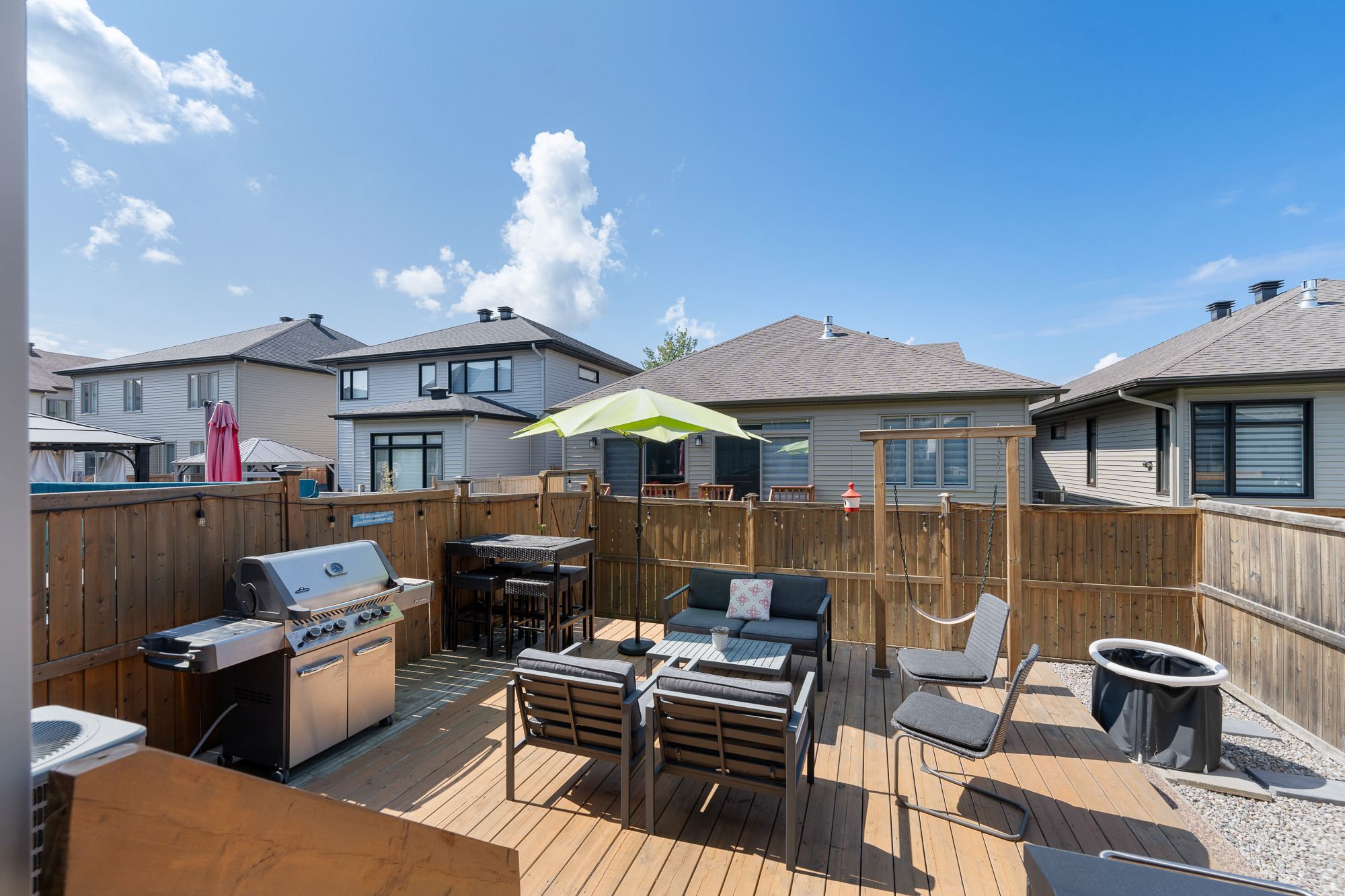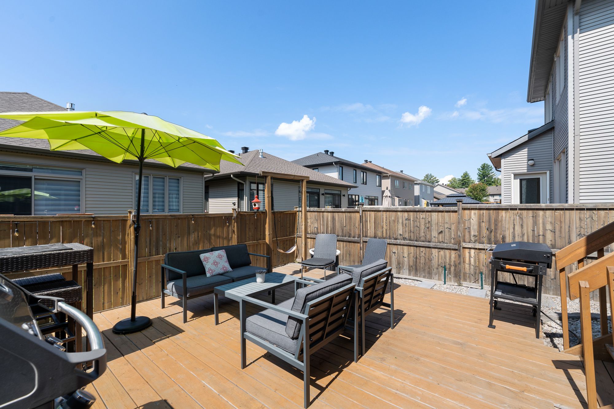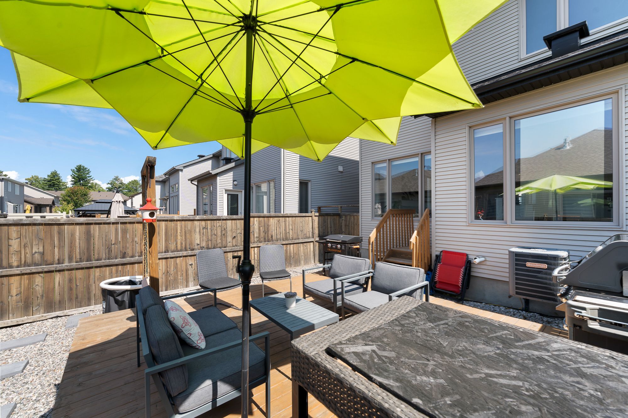 • Private, fenced backyard with a large deck for easy outdoor living.
