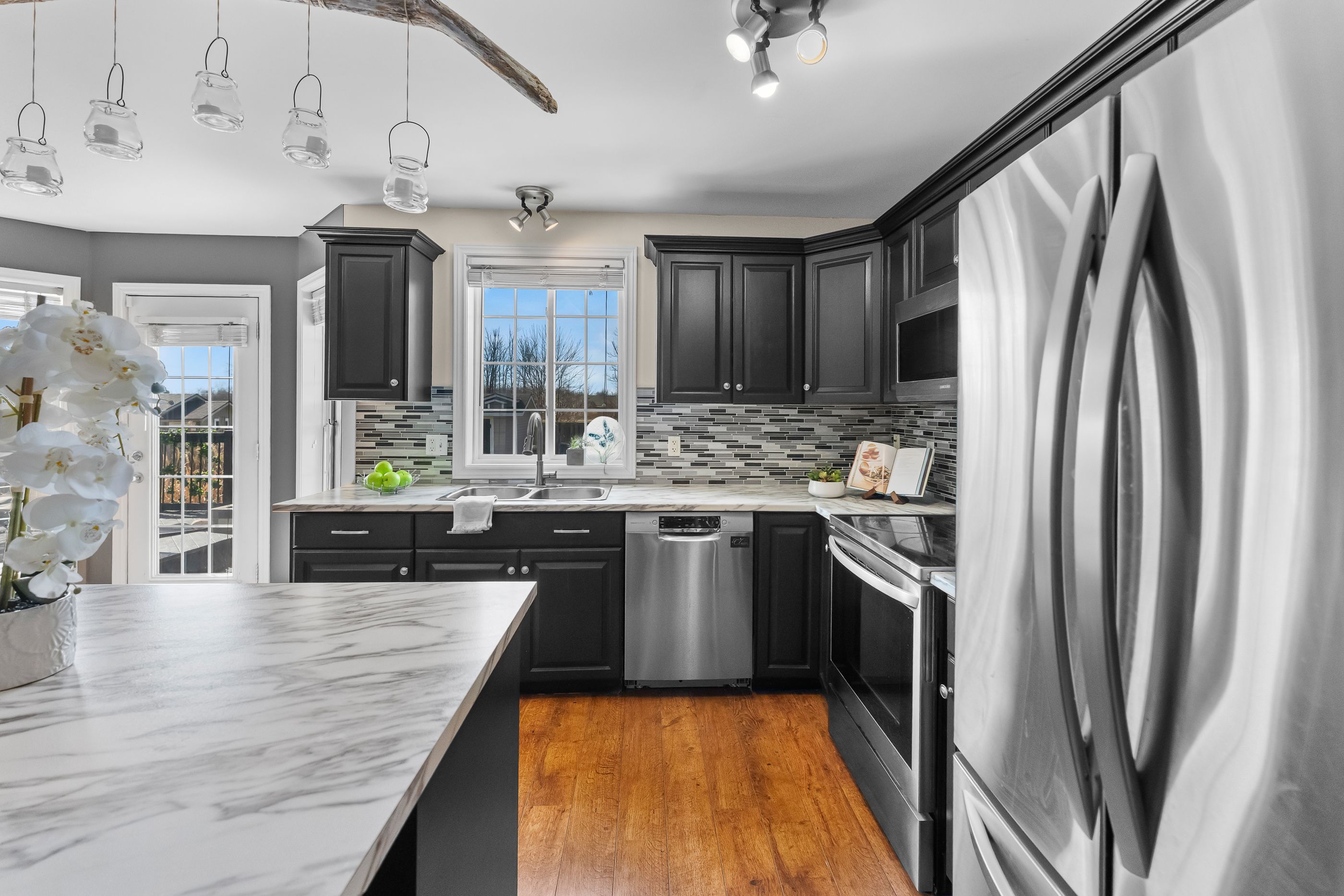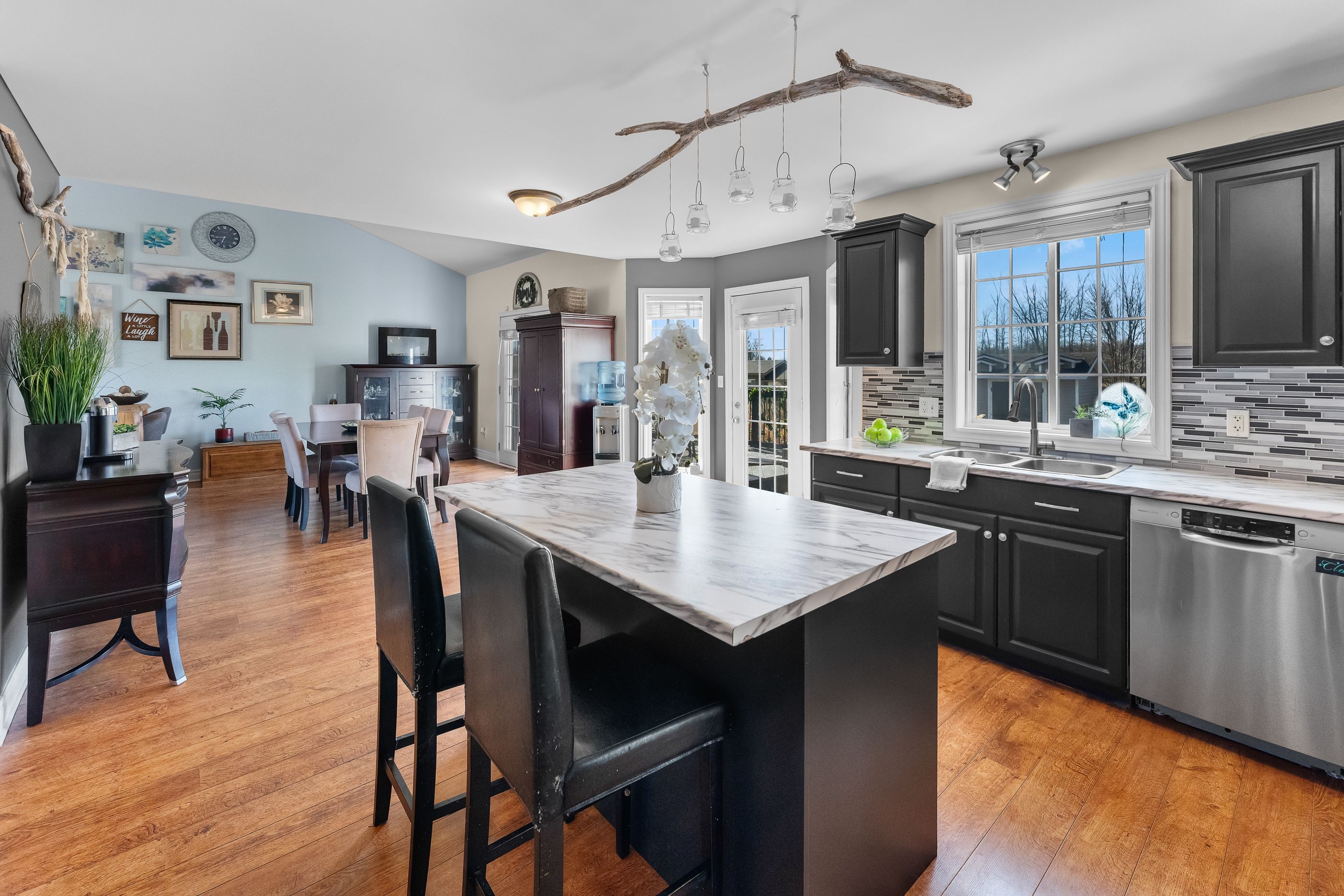Welcome to this well-maintained two-storey home located on a quiet cul-de-sac with no rear neighbours in the lakeshore neighbourhood of fort erie. The main floor features gorgeous vaulted ceilings coupled with a bright, functional layout with open-concept living and dining areas complimented by a spacious kitchen with plenty of cabinetry and workspace. Main floor laundry and a walk-in pantry add everyday convenience to this perfect family home. The primary bedroom is conveniently located on the main level and includes a walk-in closet, 4-piece ensuite and walk-out access to the backyard. Upstairs, you'll find two additional bedrooms, a full bathroom and an open loft with potential to convert into an additional bedroom. The finished basement offers excellent opportunity for multigenerational living with a large rec room featuring a gas fireplace, a kitchenette, a 2-piece bathroom and a bonus room ideal for guests, office space, or flexible living. The backyard faces southwest making it perfect to watch sunsets over the pond. There are 3 walkouts to the deck, making this serene, mature backyard the perfect summer oasis. A private gate offers direct access to a scenic walking trail, creating the perfect setting for peaceful evening walks and beautiful views right from your own backyard. Close to parks, everyday amenities and just minutes from the peace bridge, this home offers a great combination of privacy, space and convenience in fort erie.