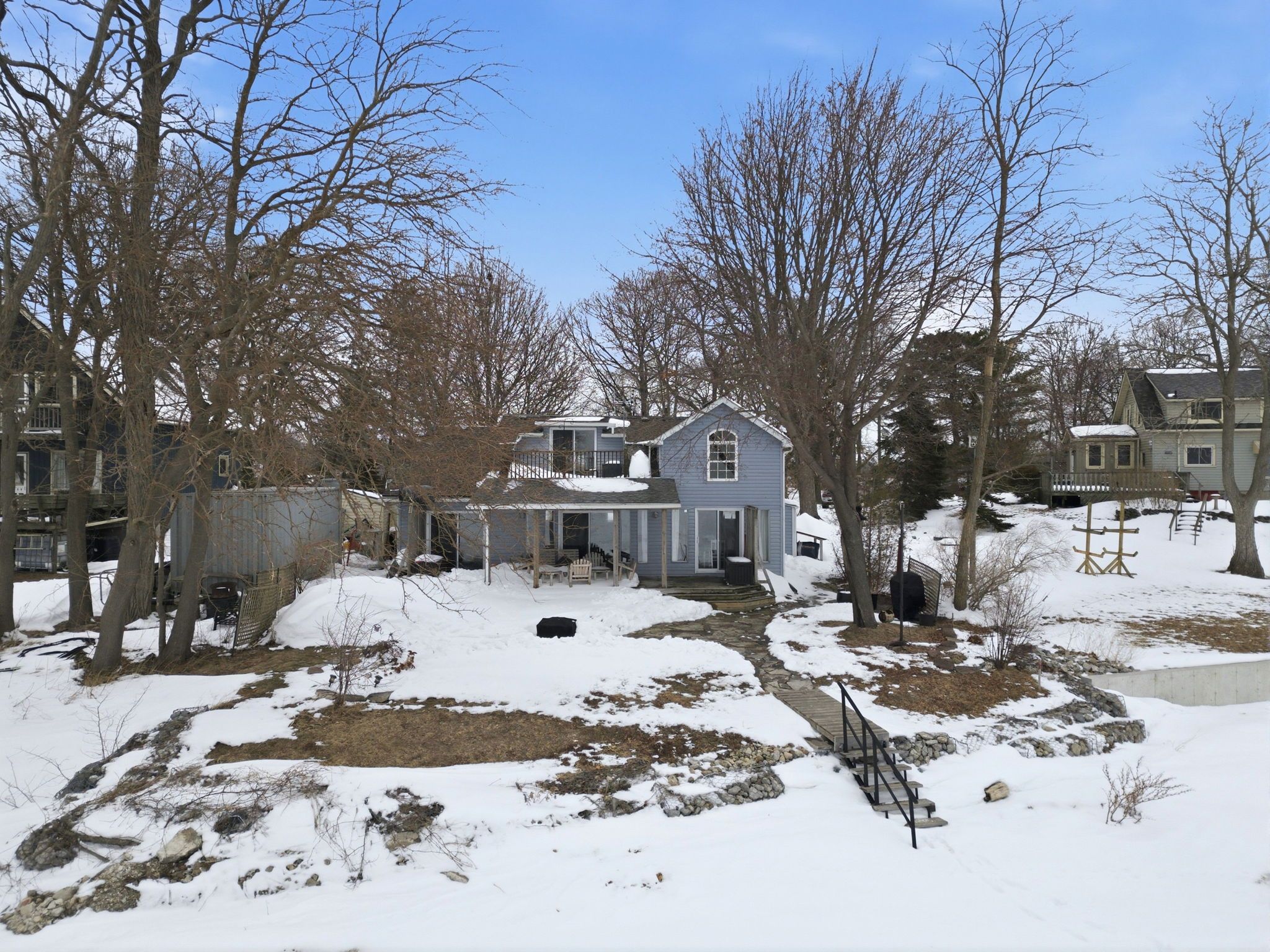 Exceptional waterfront living! Renovated and ready to move in as this lovely property comes fully furnished! Ample parking for family and guests, garage for boat storage, bunkie for outdoor toys, tiered decking and patios to maximize exposure to expansive waterfront views, a home that provides space for dining, games on rainy days, cozy fireplace gatherings and generous kitchen for meal prep, this property provides all the check and balances for a weekend getaways or year round living. 3 sliding doors waterside to patio and 2 skylights generate all the natural light possible. Income generation makes this a practical option for self-sustaining option or one that can be partially income supported. Located just a km away from freedom oaks golf club, 10 mins from dunnville and 45 mins to hamilton this gem will give you all the feels right from the start!