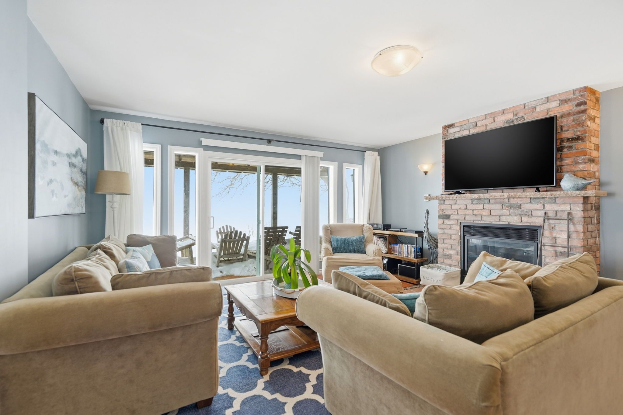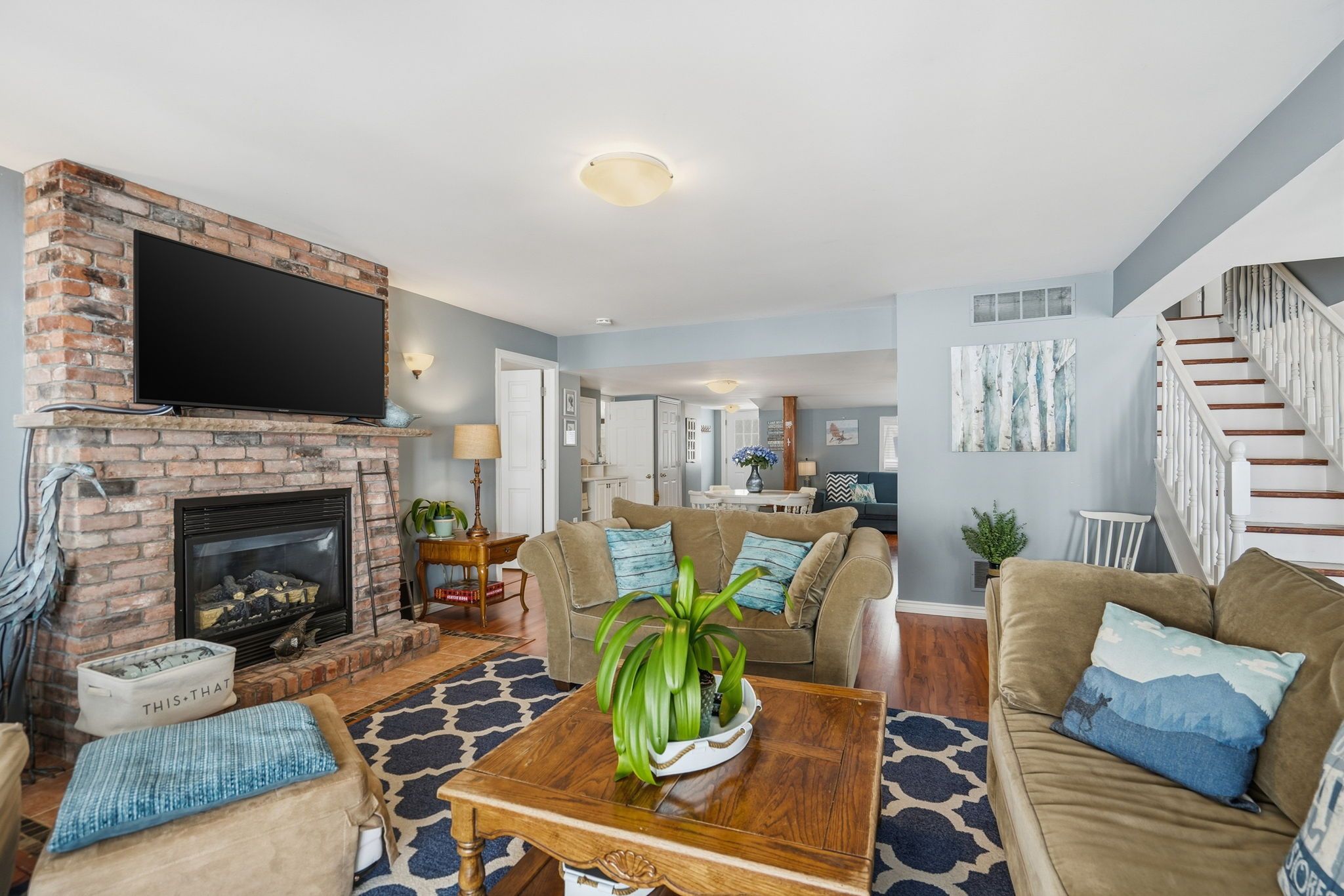 • Spacious kitchen and cozy fireplace for gatherings and meals.