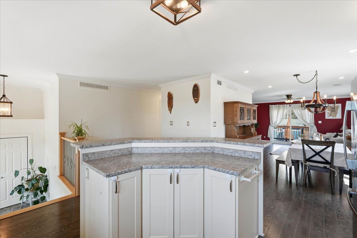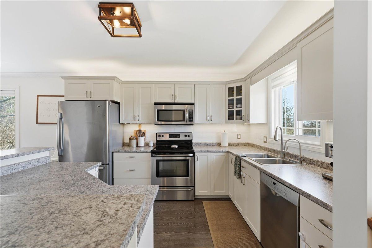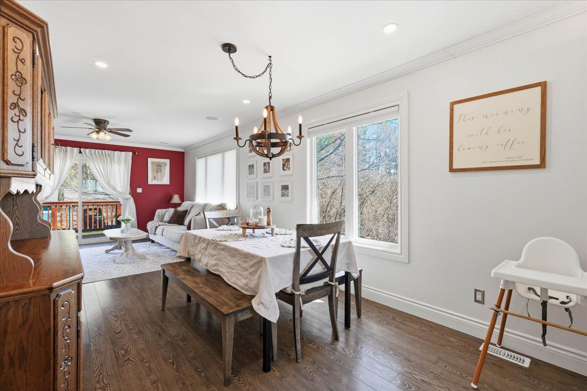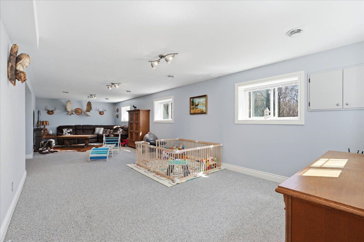 Immaculate raised bungalow set in a peaceful rural setting, offering privacy and a truly impressive shop for over 1,000 square feet. This inviting home features an open concept main floor with a bright kitchen, dining, and living area, filled with natural light from large windows. The kitchen offers ample cabinetry and a spacious island, perfect for everyday living and entertaining. Patio doors from the living room lead to a large deck with rough-in electrical for a hot tub that overlooks the backyard with a fire pit area - an ideal place to relax and unwind under the stairs on warm summer evenings. The main floor includes two bedrooms and a 4 piece bathroom, along with a spacious foyer and tasteful decor throughout. The lower level is finished with a cozy rec room, an additional bedroom, laundry area, and plenty of storage space. The heated detached shop with 13 ft high ceilings is a standout feature-ideal for storing recreational vehicles, working on hobbies, or creating your own workshop space. It offers welding plugs, rough-in electrical for a hoist, and a large electric heater. With easy access to the 401, belleville and napanee, this turnkey and well-maintained property with excellent curb appeal and landscaping is ready and waiting for you.