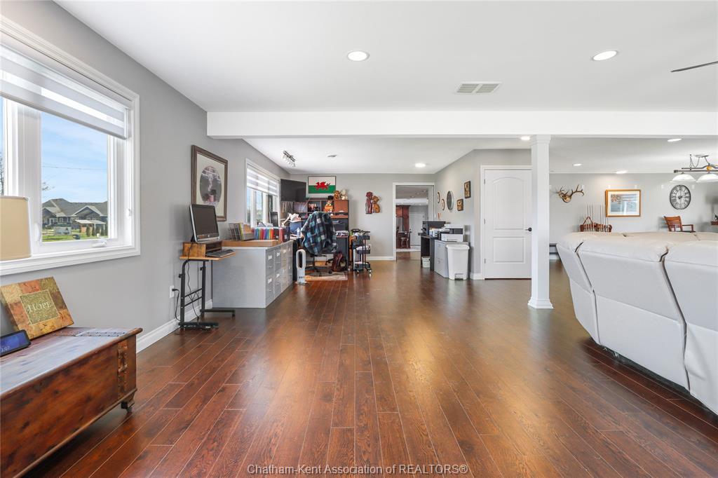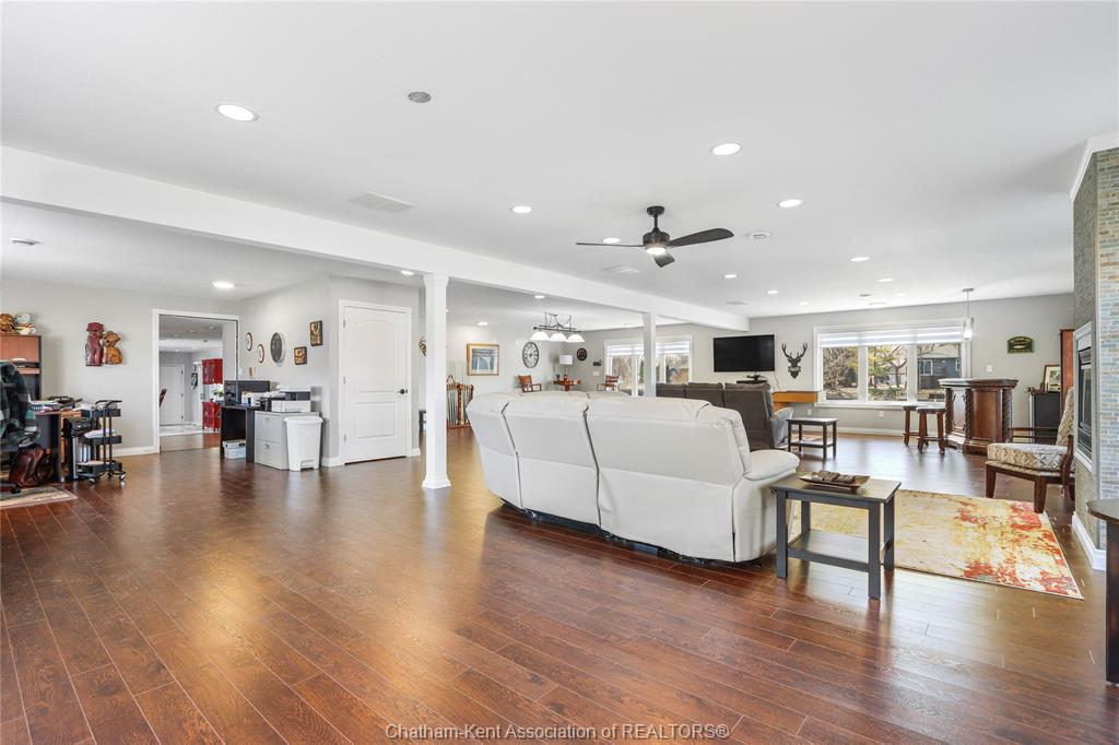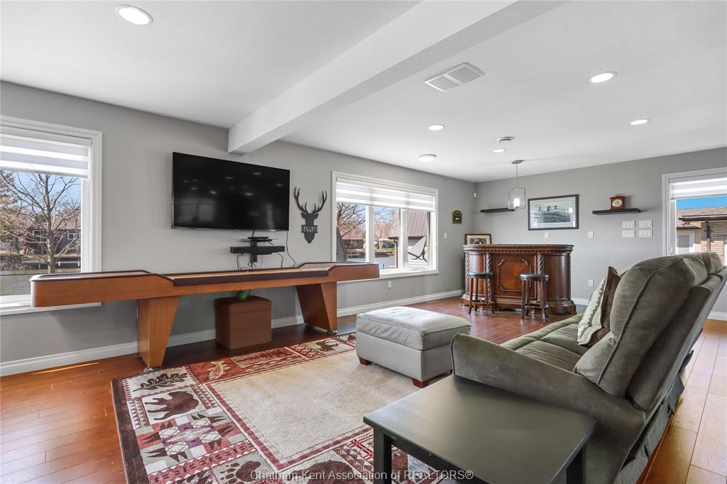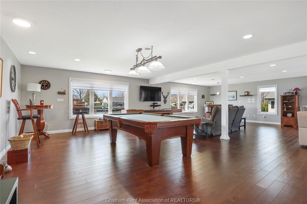 • Versatile games room ideal for billiards, movies, or relaxing by the fireplace.